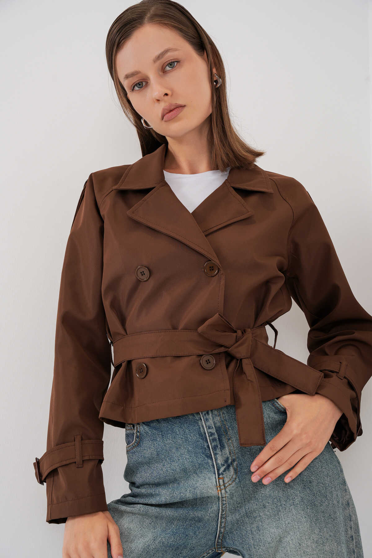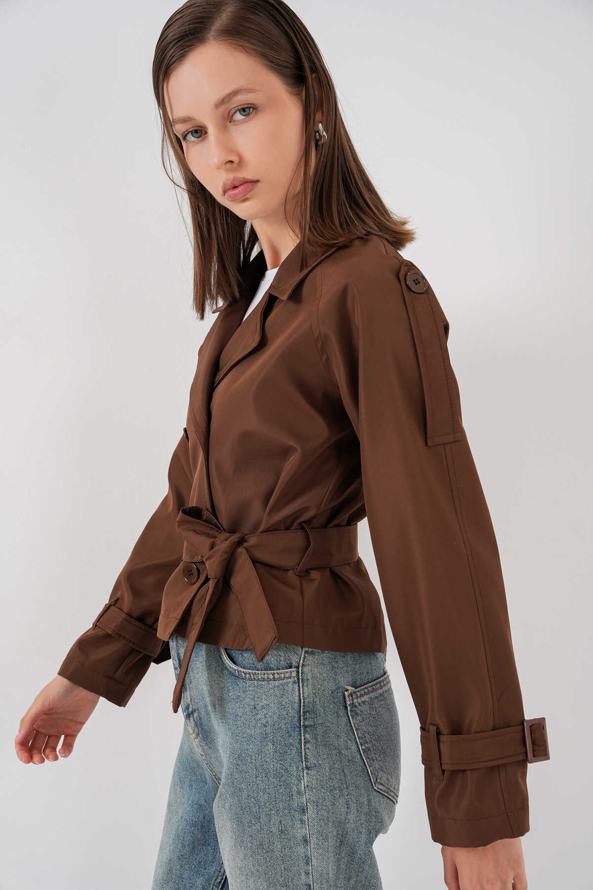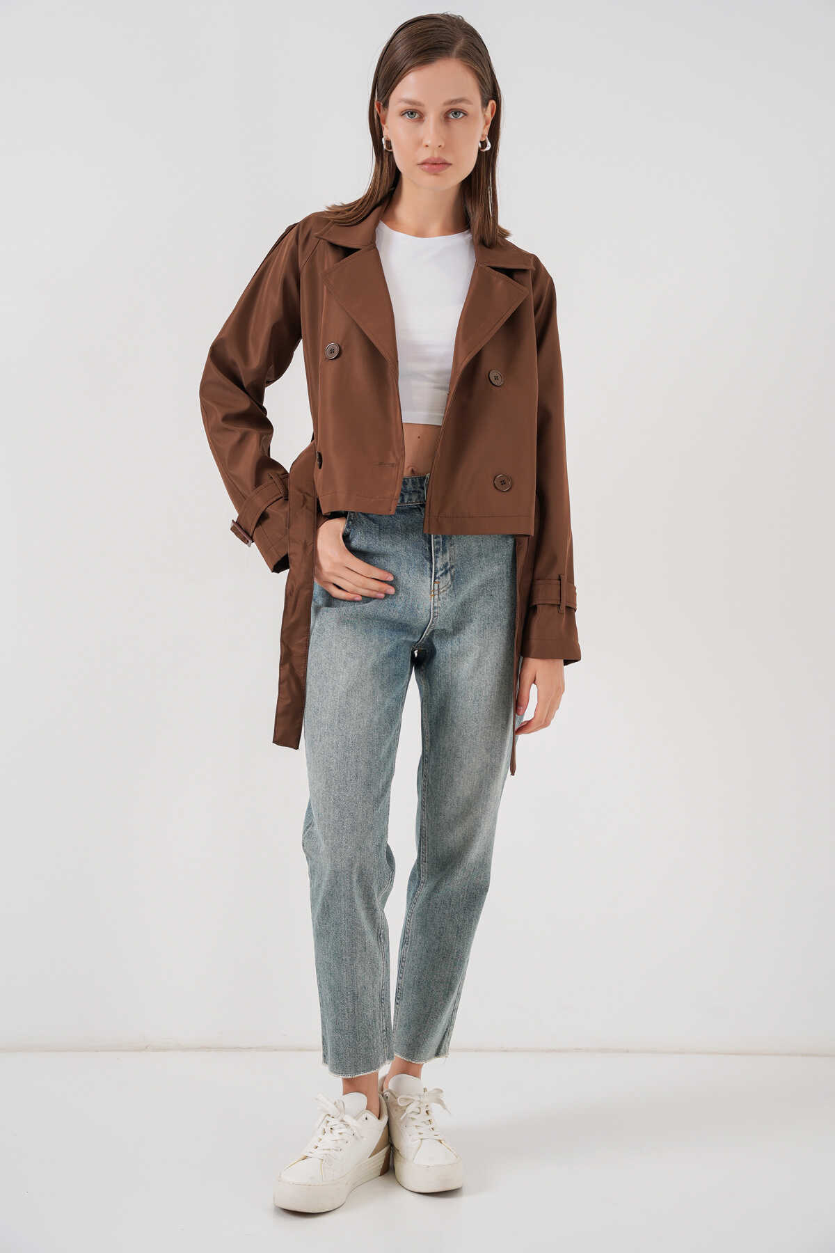 Kadin Kemerli Kisa Trençkot