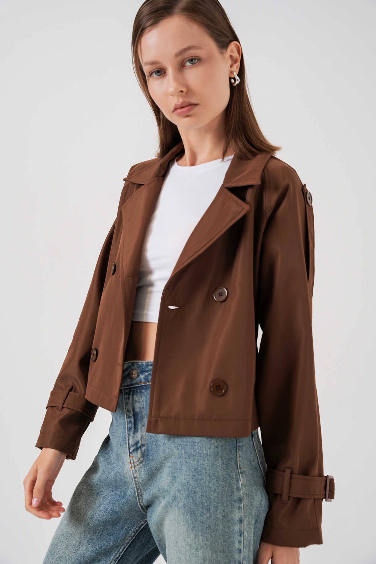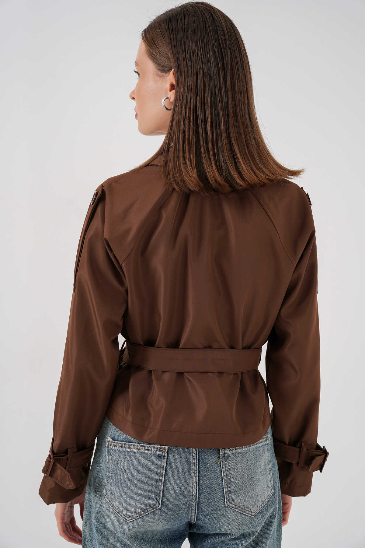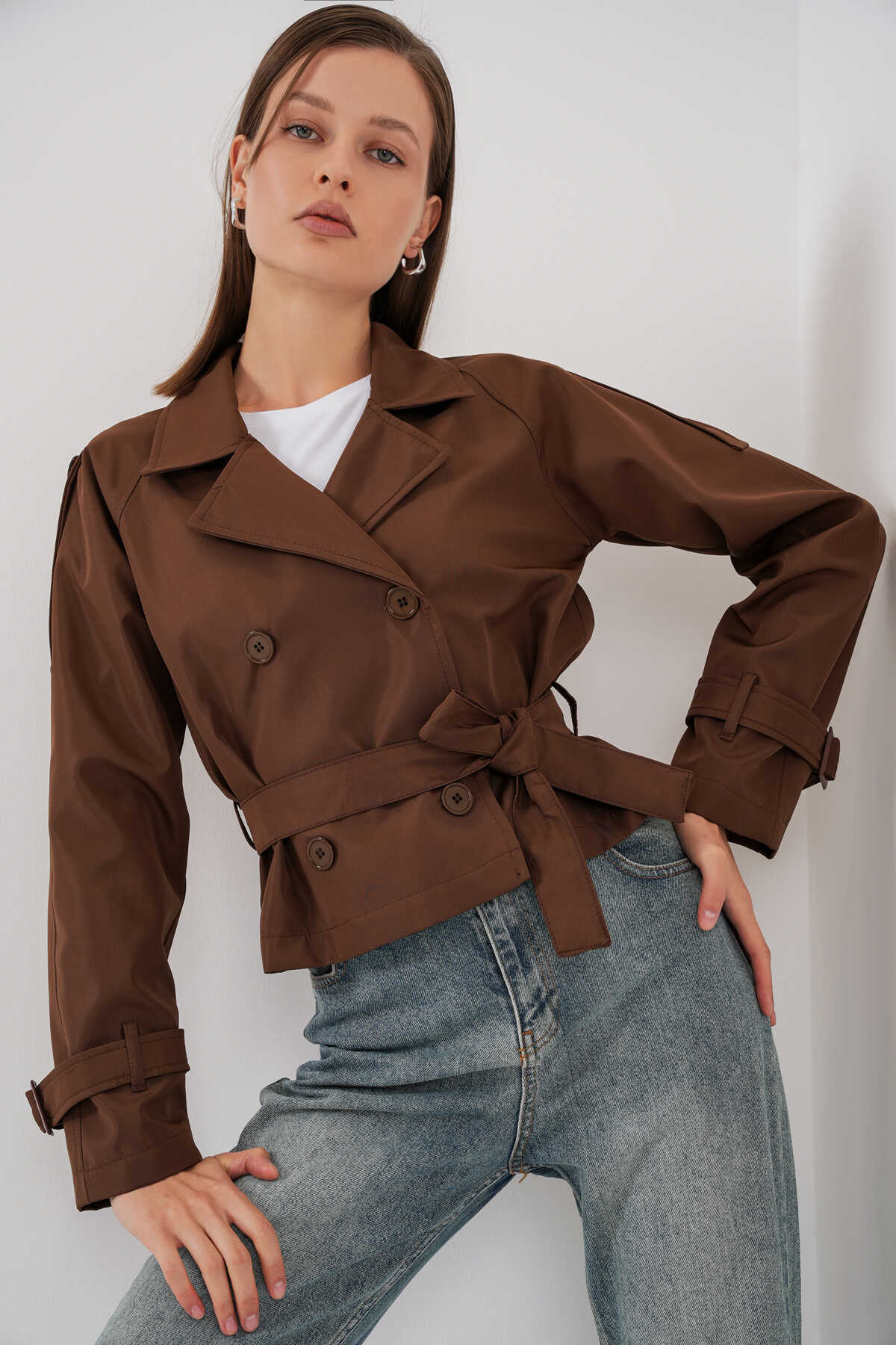 Kadin Kemerli Kisa Trençkot