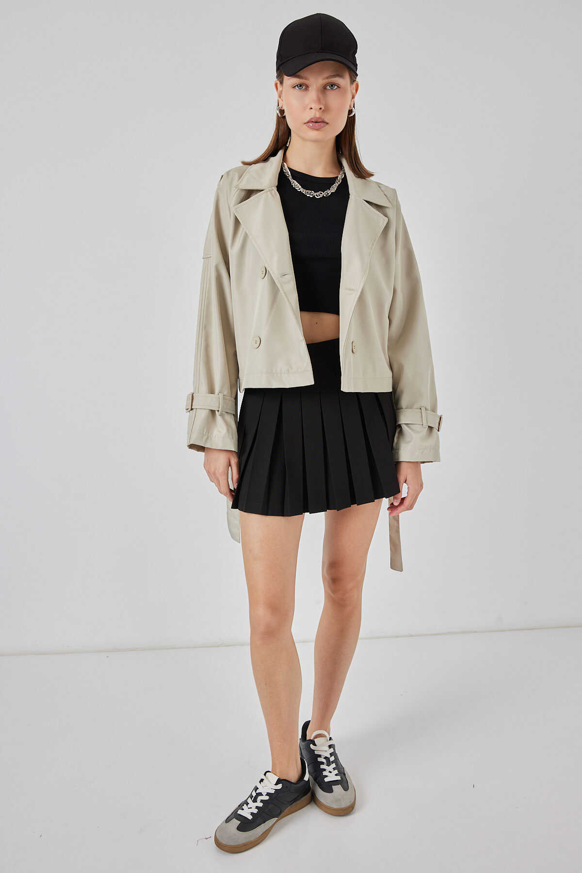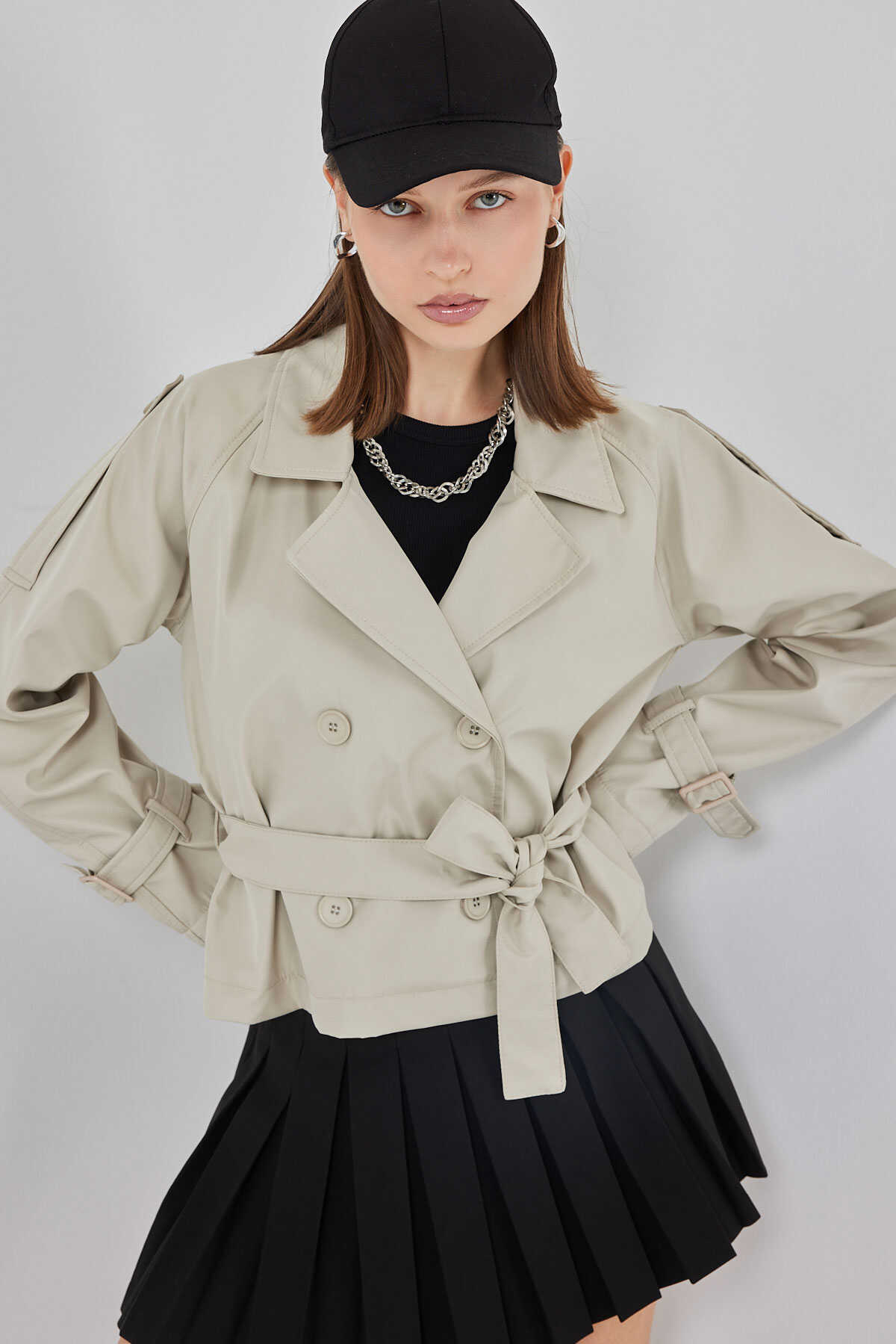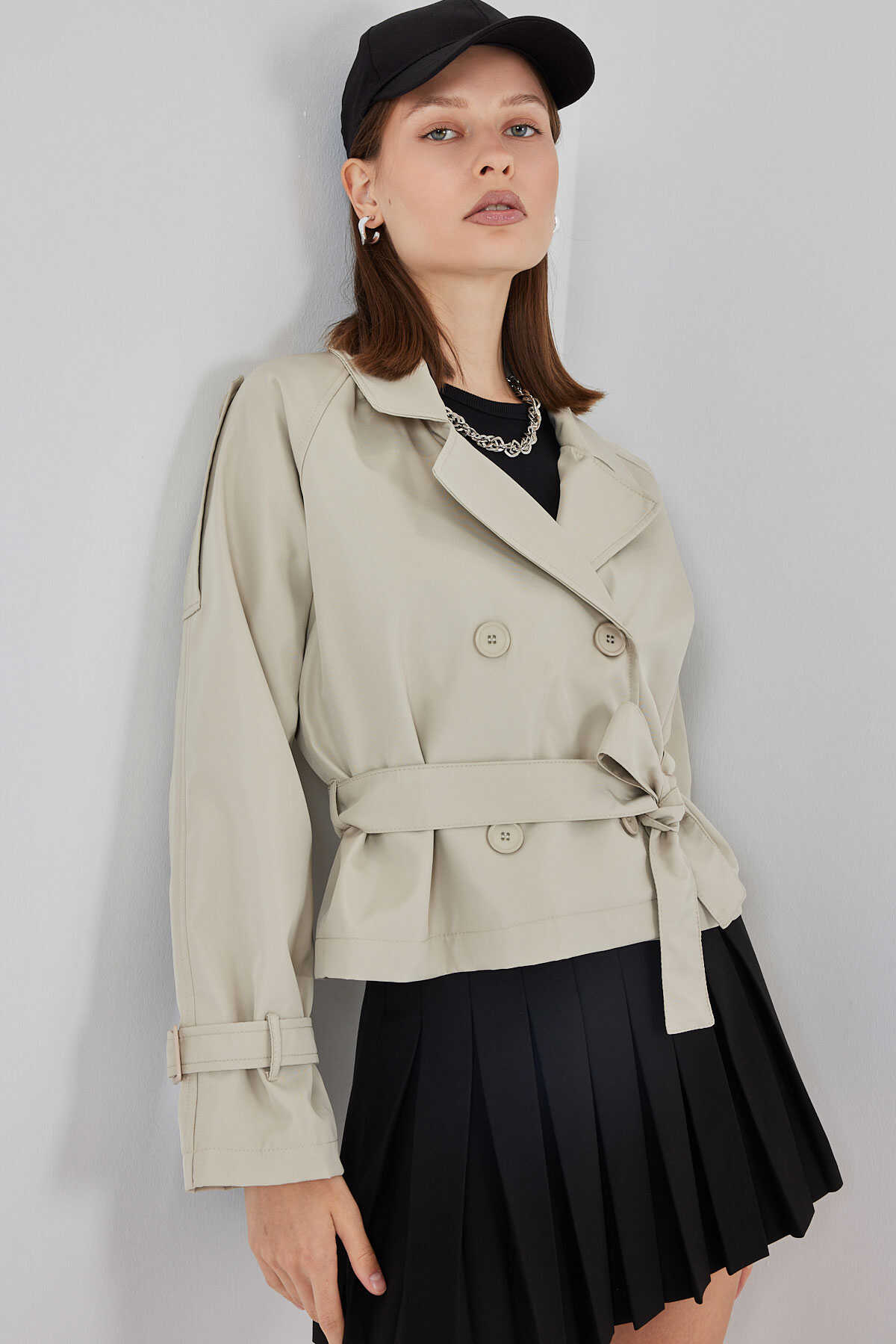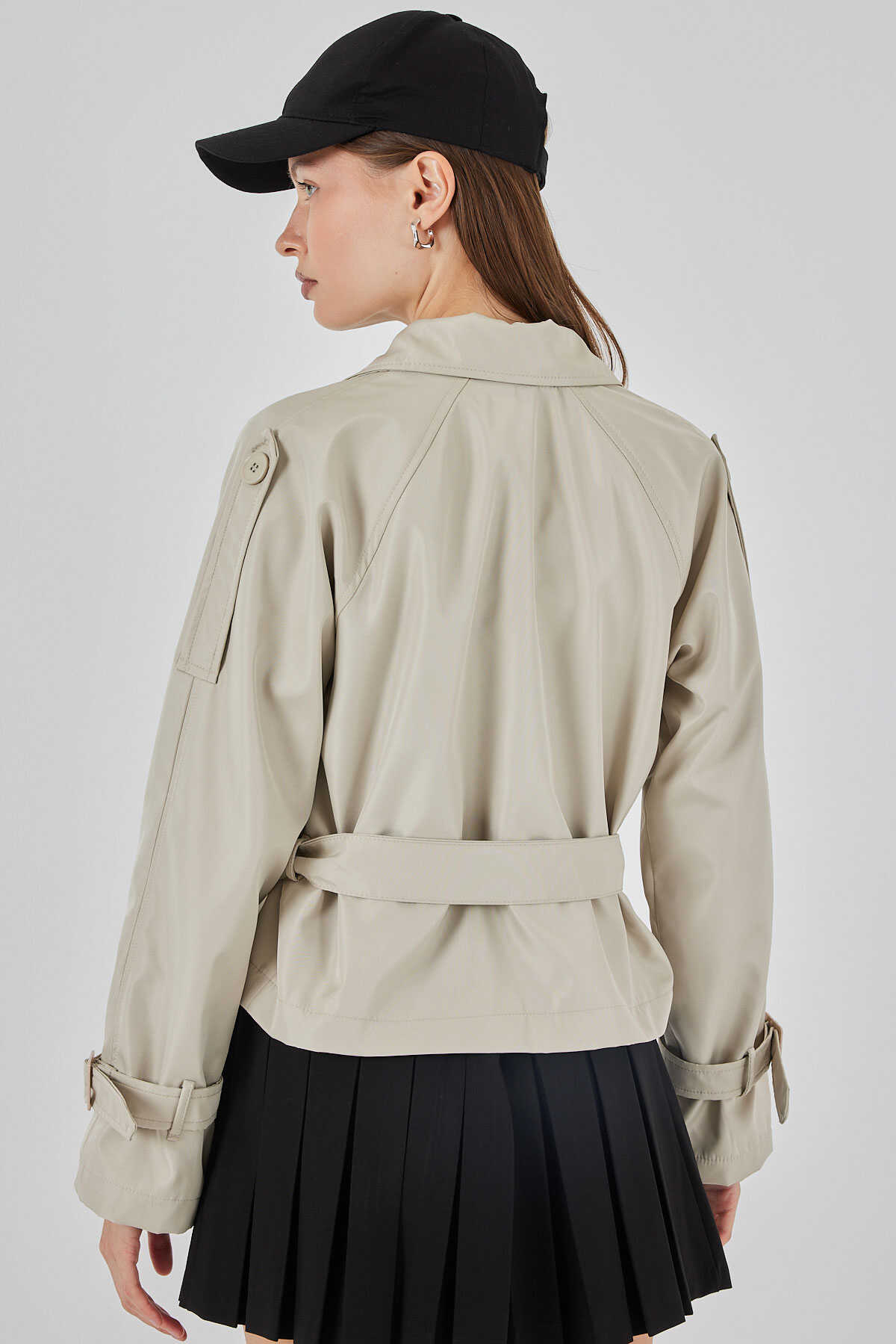 Kadin Kemerli Kisa Trençkot