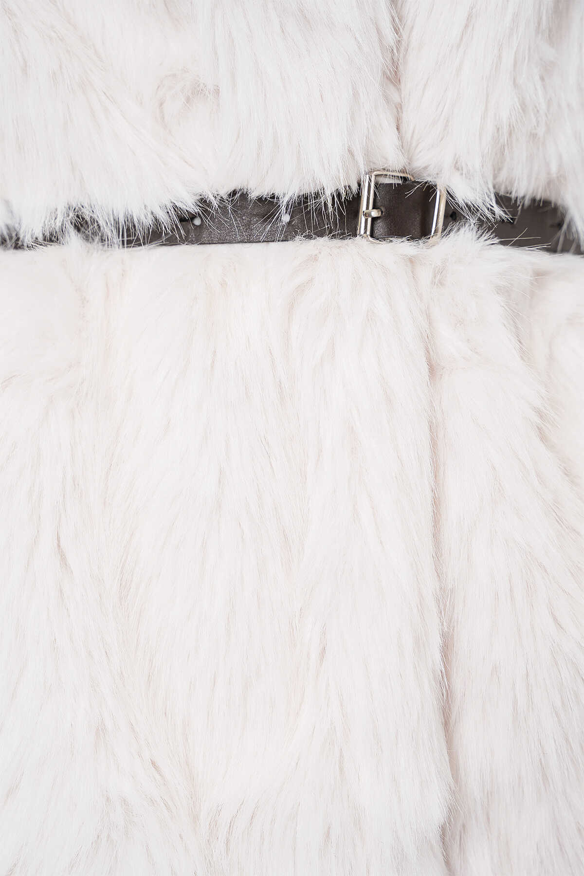 Kadın Kemerli Oversize Kürklü Kaban 9156 - Beyaz