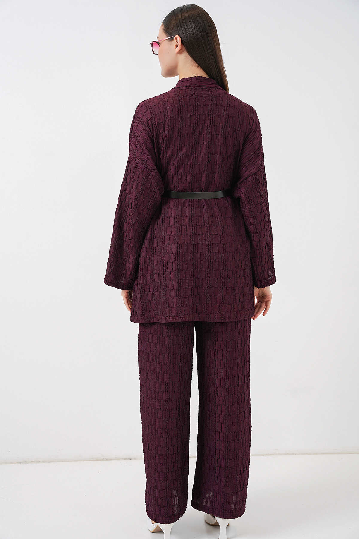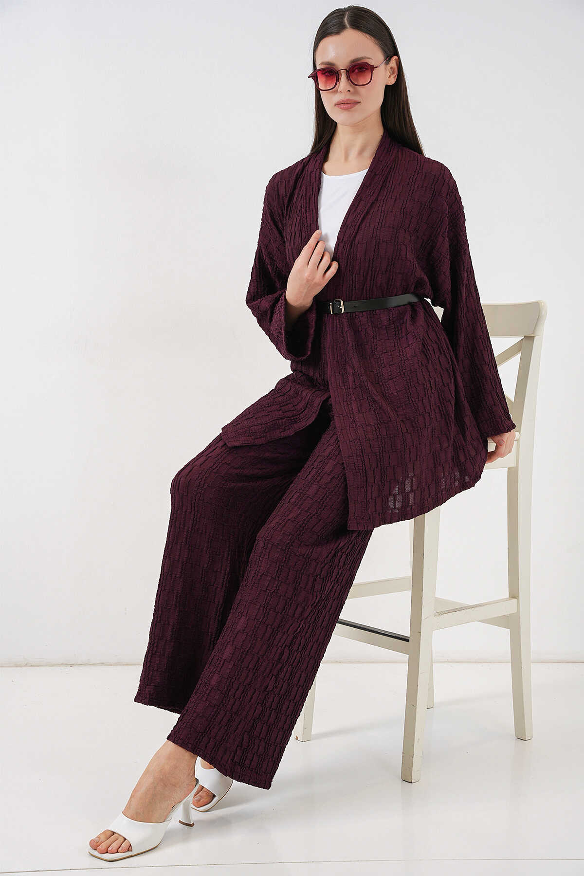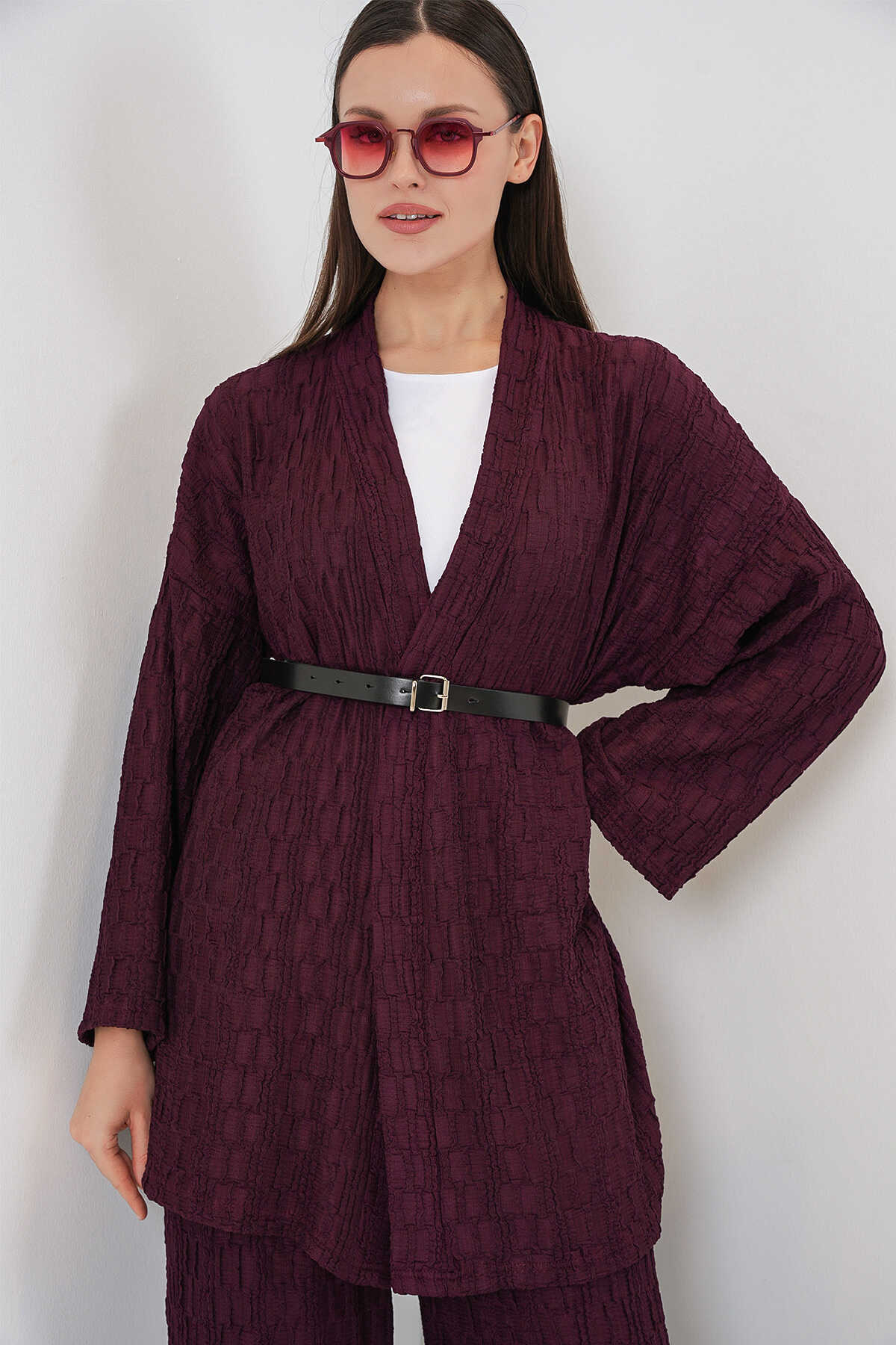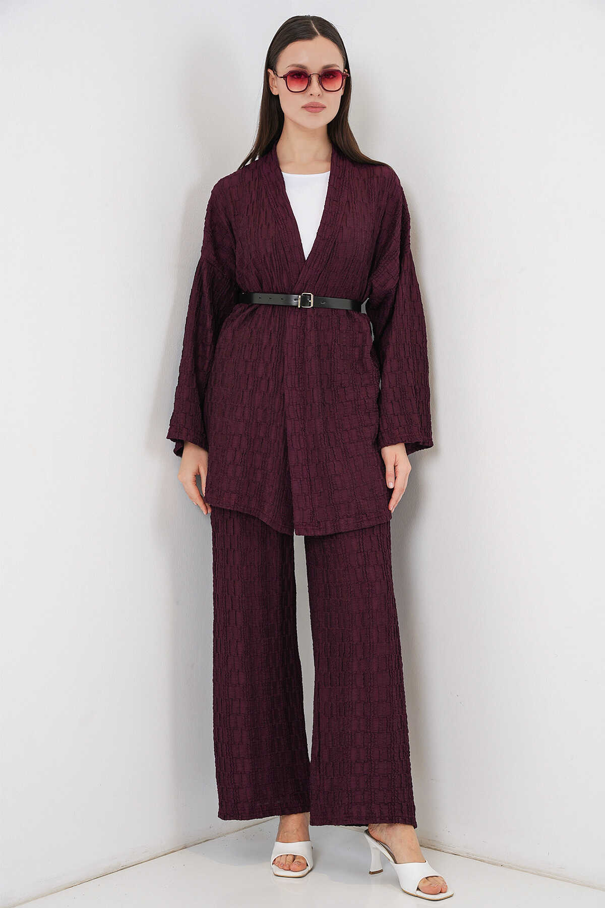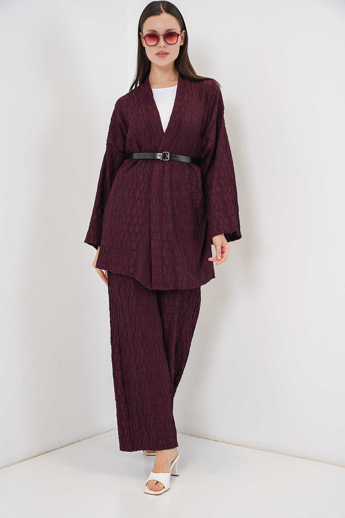 Kadın Kimono Pantolon İkili Takım 30078 - Bordo - Kombin