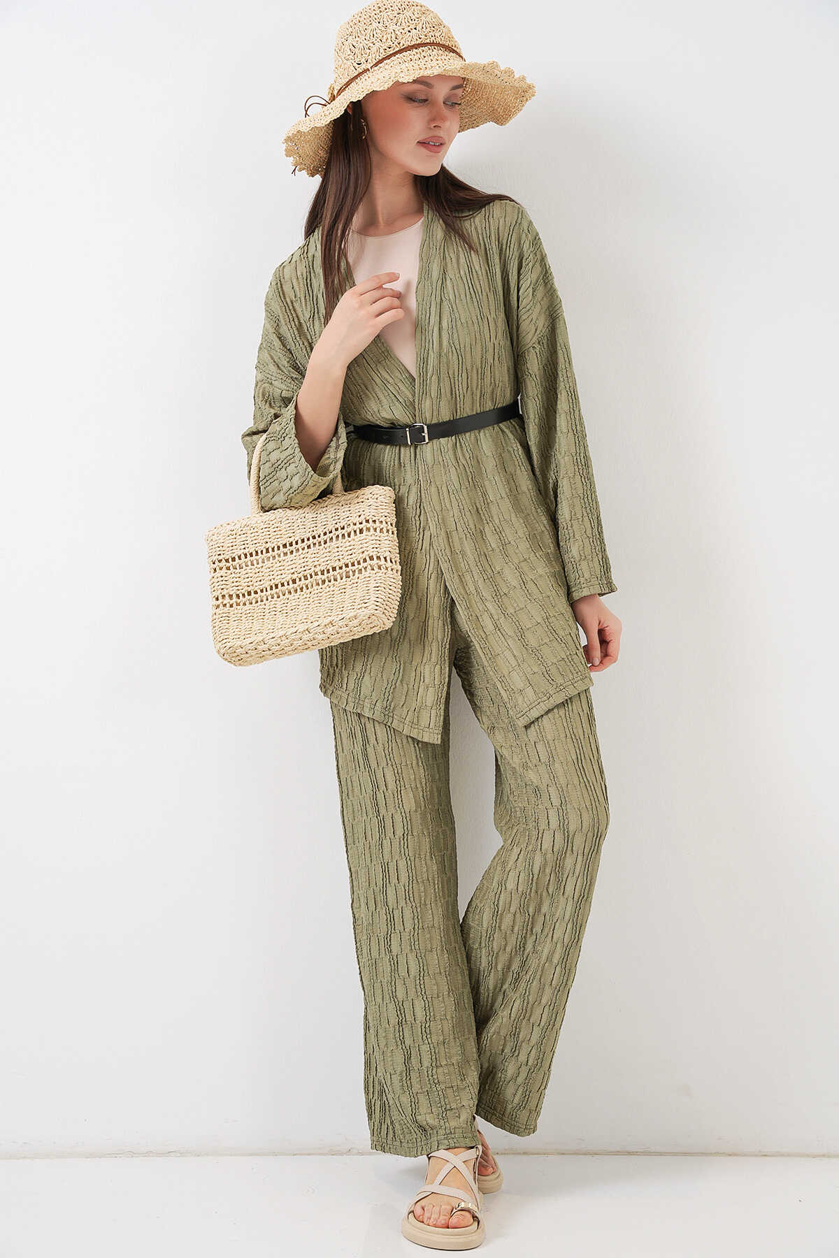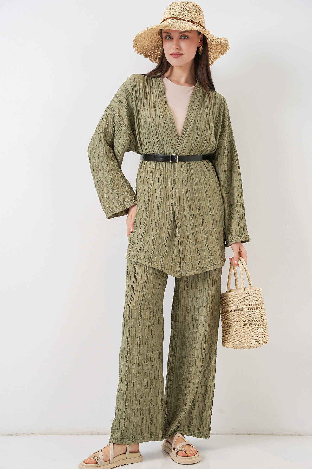 Kadin Kimono Pantolon Ikili Takim 30078KEMER ILE GÖNDERIM YAPILACAKTIR.