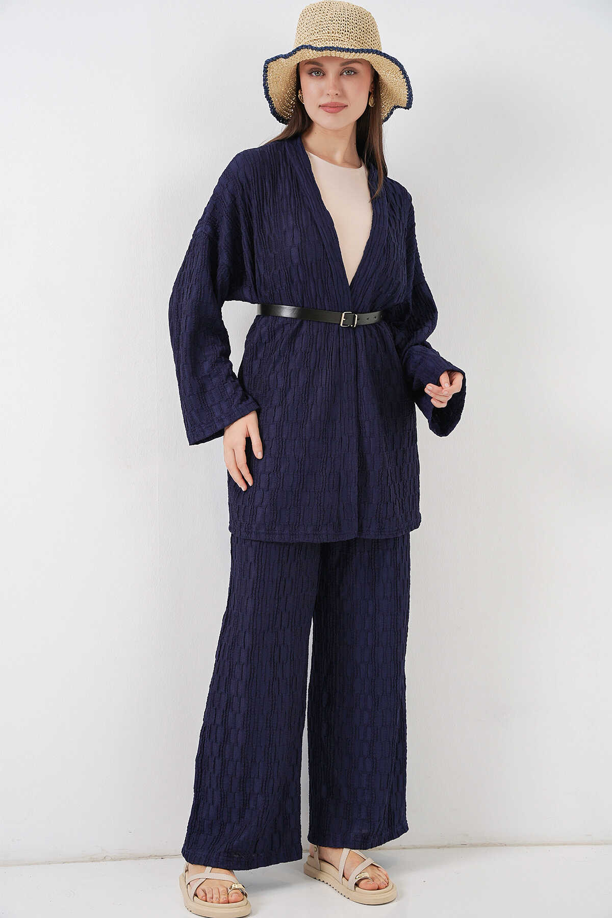 Kadin Kimono Pantolon Ikili Takim 30078KEMER ILE GÖNDERIM YAPILACAKTIR.