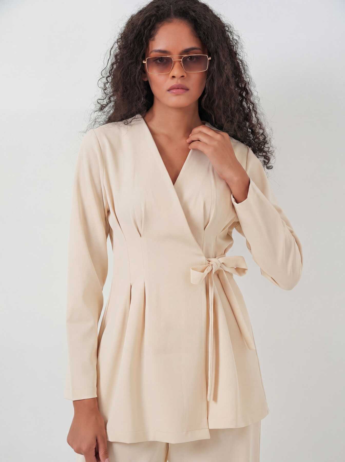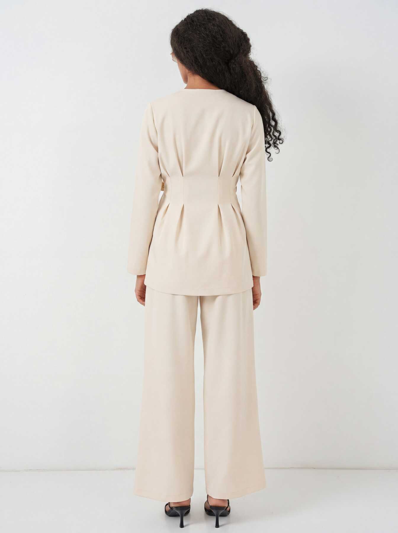 Kadın Kimono Pantolon Kumaş Takım 30054 - Bej - Kombin