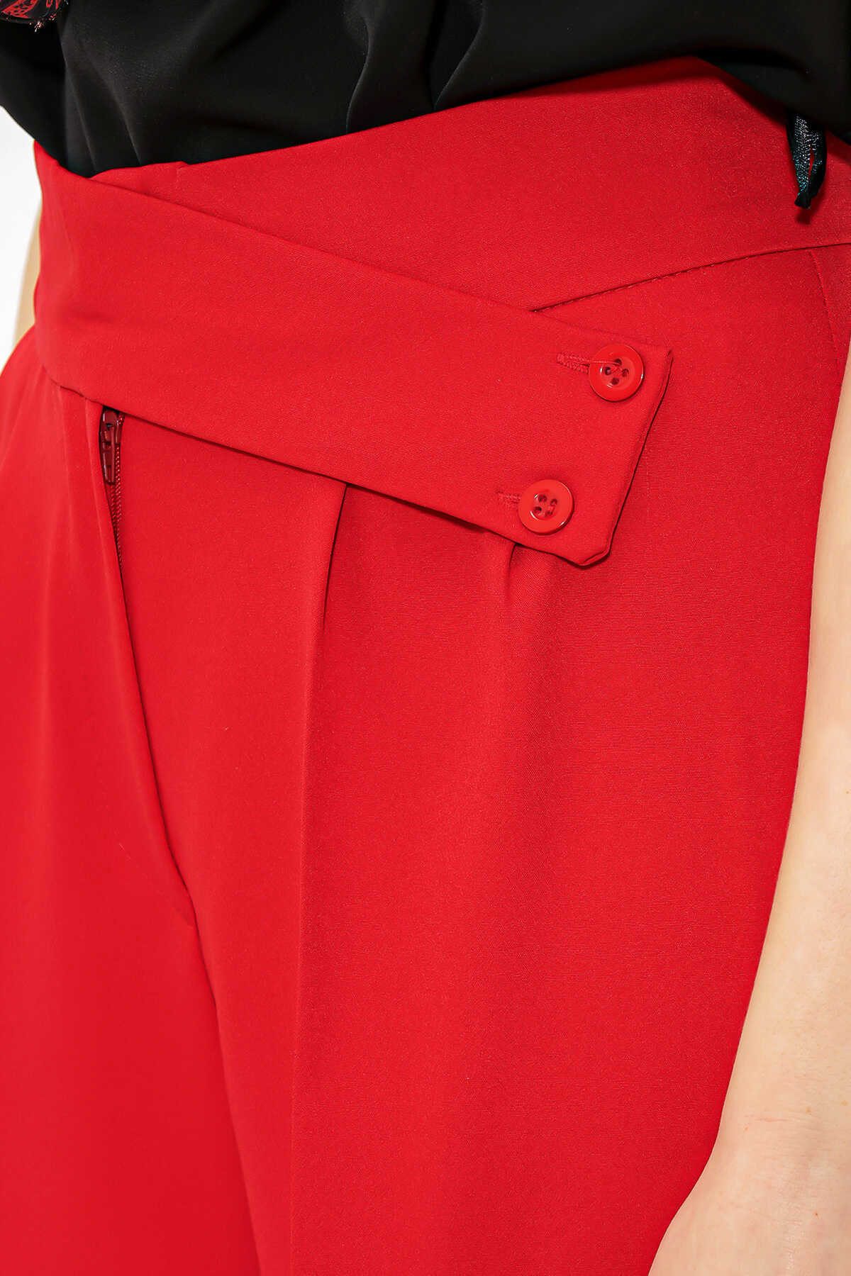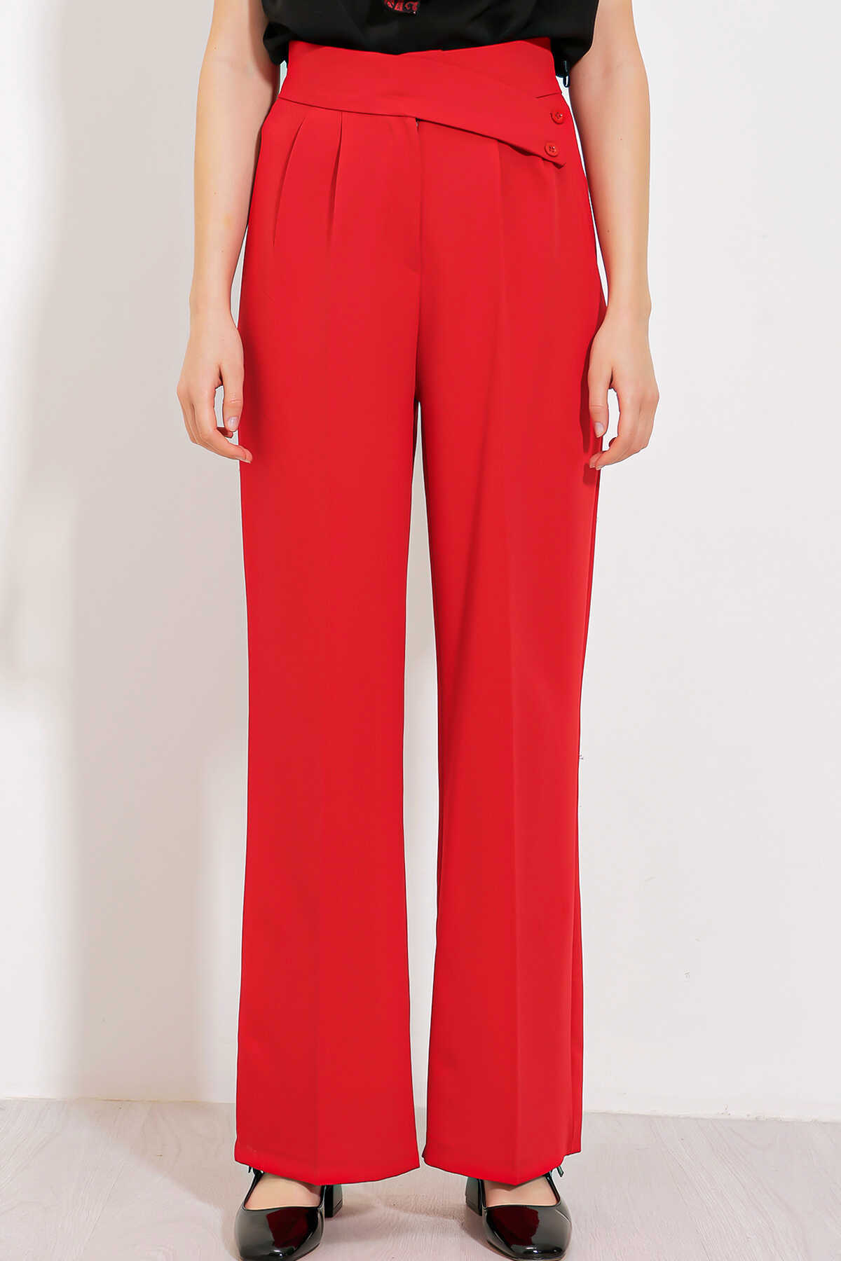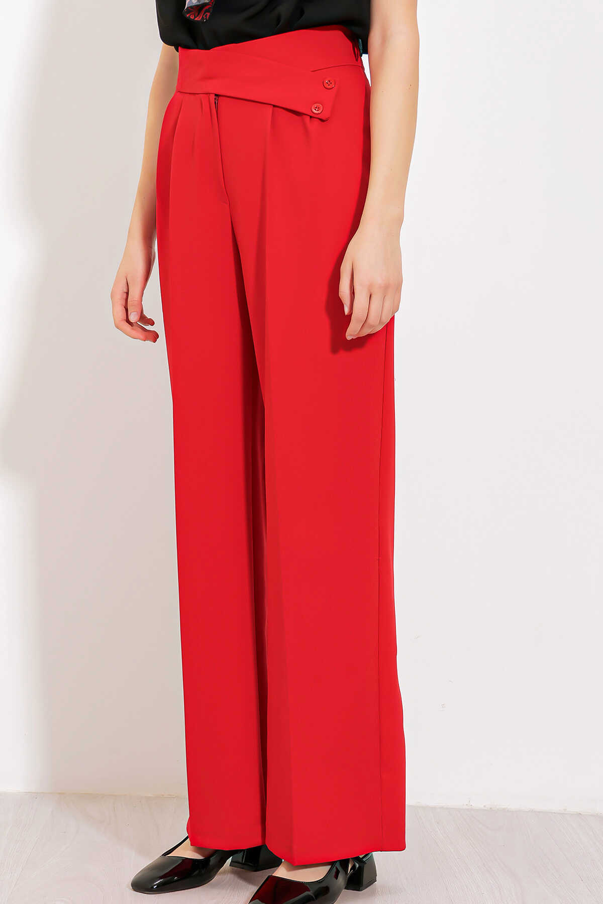 Kadın Kırmızı Yüksek Bel Palazzo Pantolon 6646 - Kombin