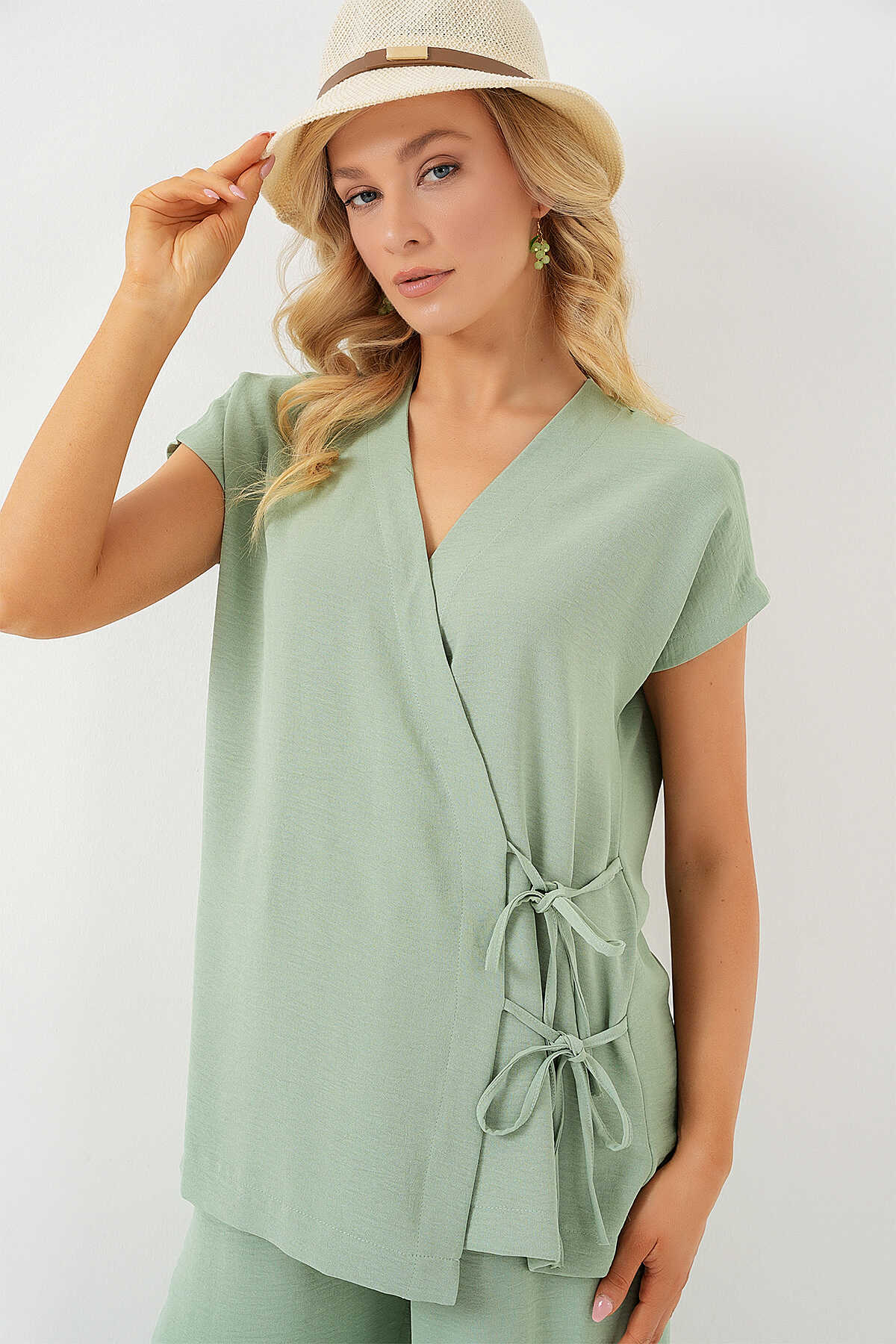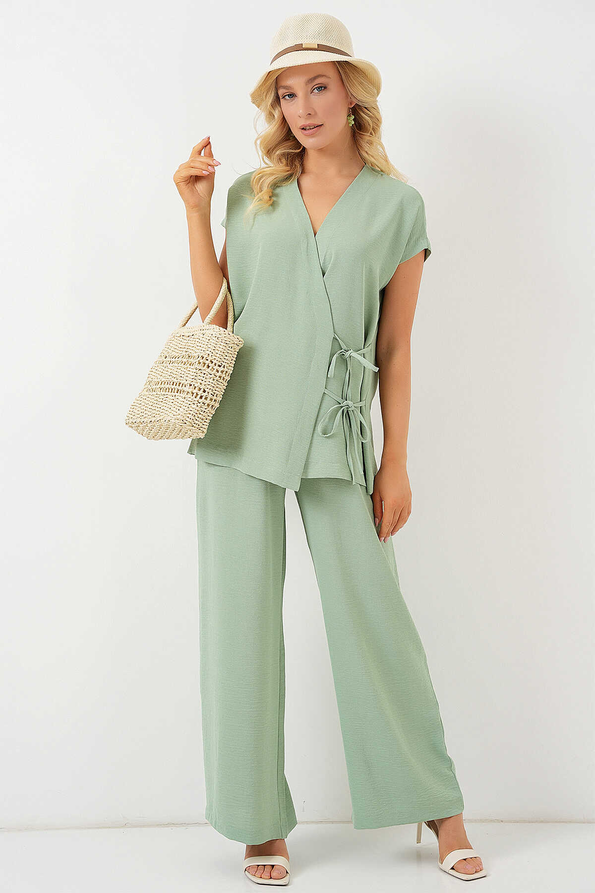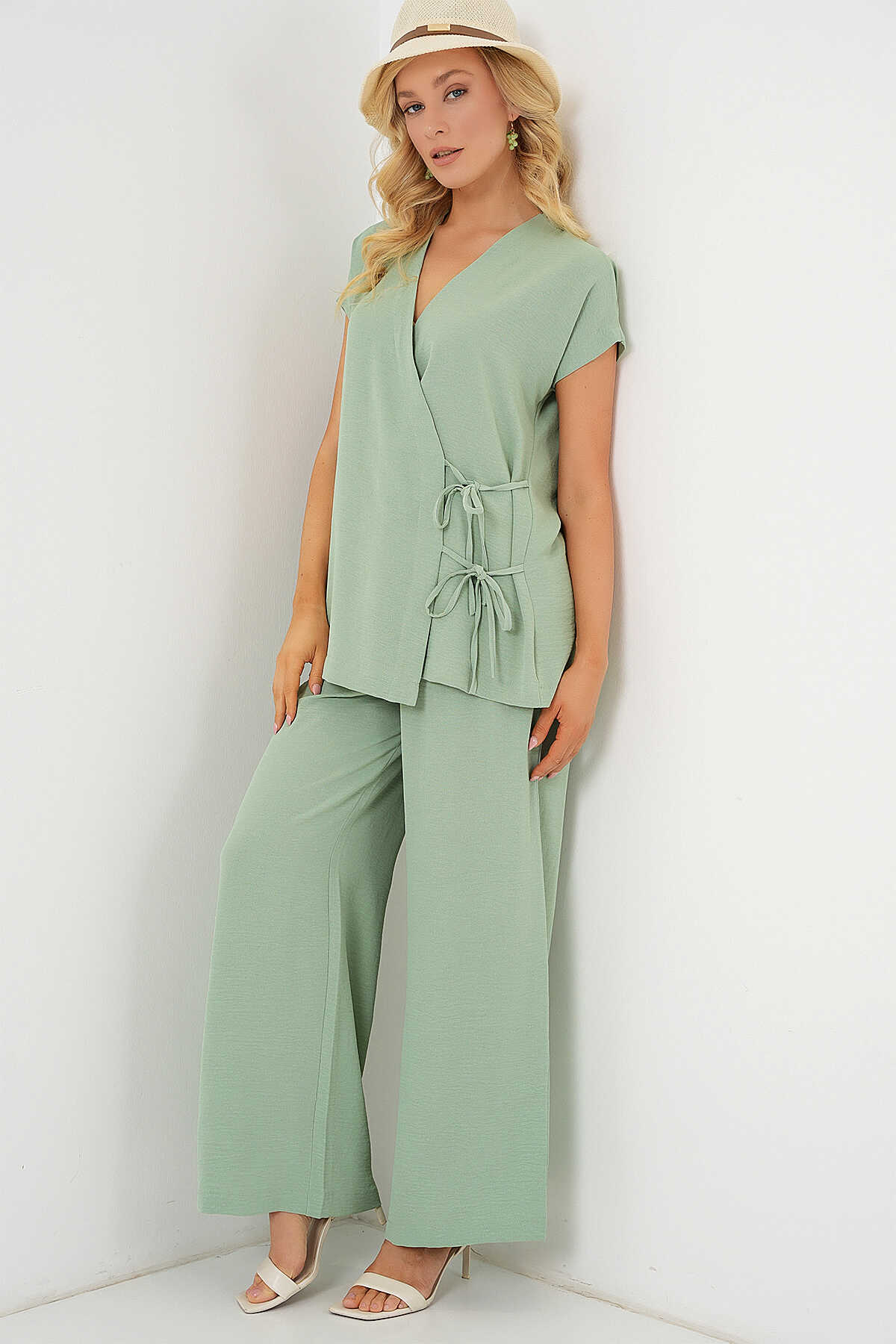 Kadın Kısa Kol Bağcıklı Ayrobin İkili Takım 6741 - E.Yeşil - Kombin