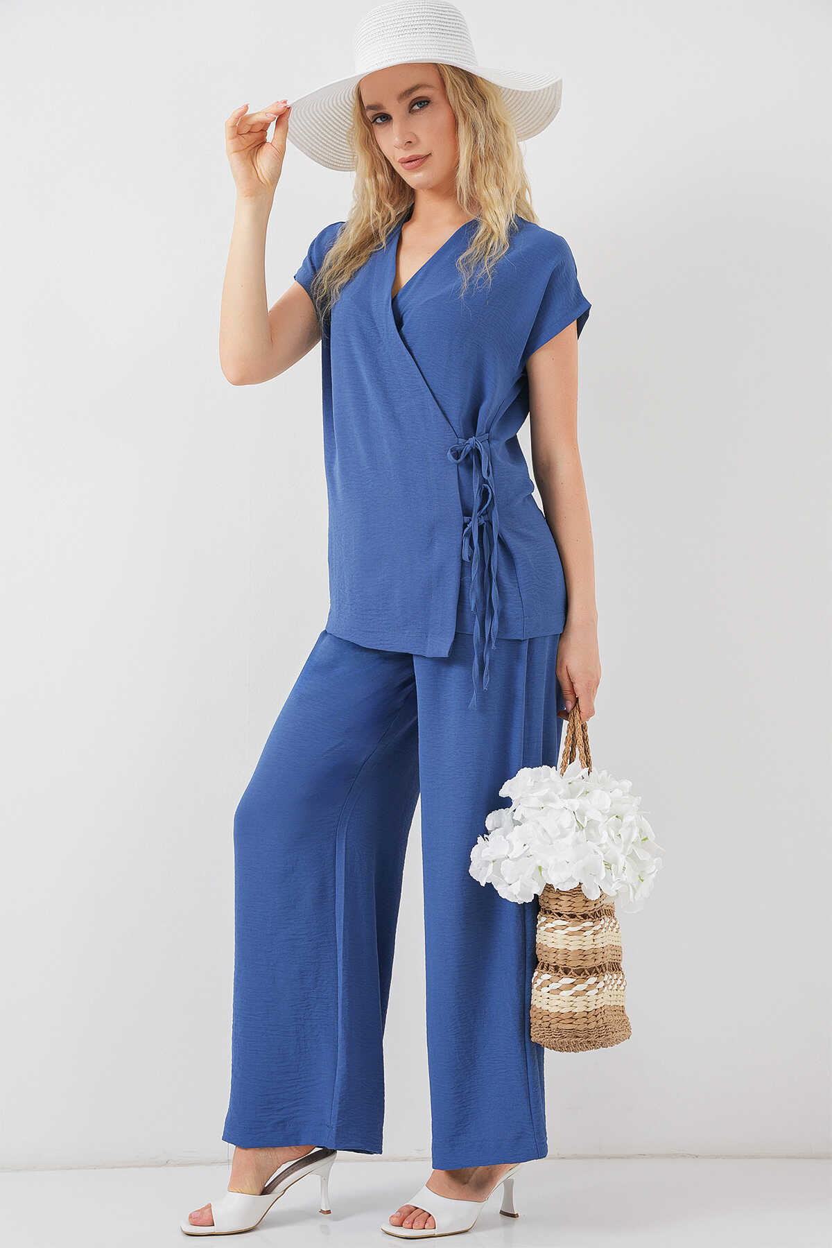 Kadın Kısa Kol Bağcıklı Ayrobin İkili Takım 6741 - İndigo - Kombin