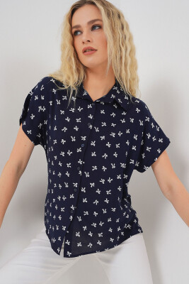 Kadın Kısa Kol Desenli Gömlek 20310 - Lacivert - Kombin