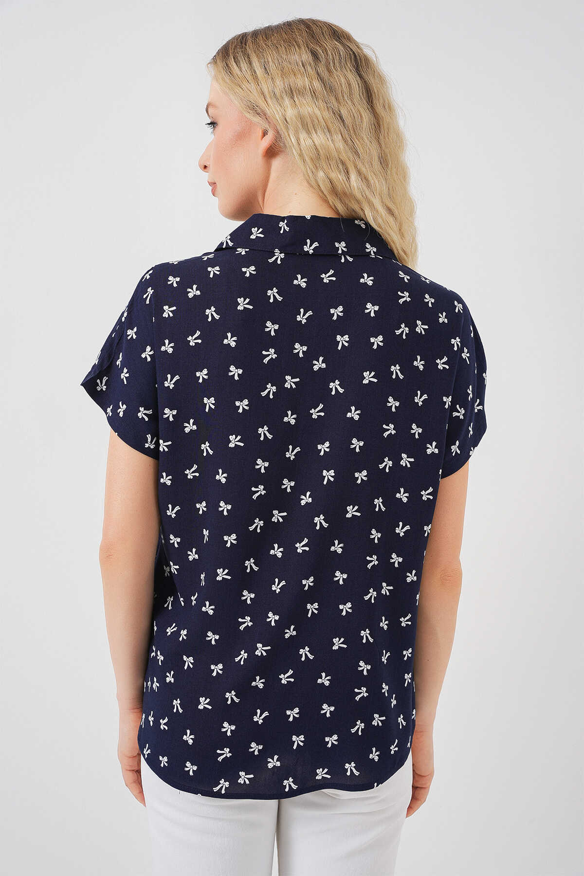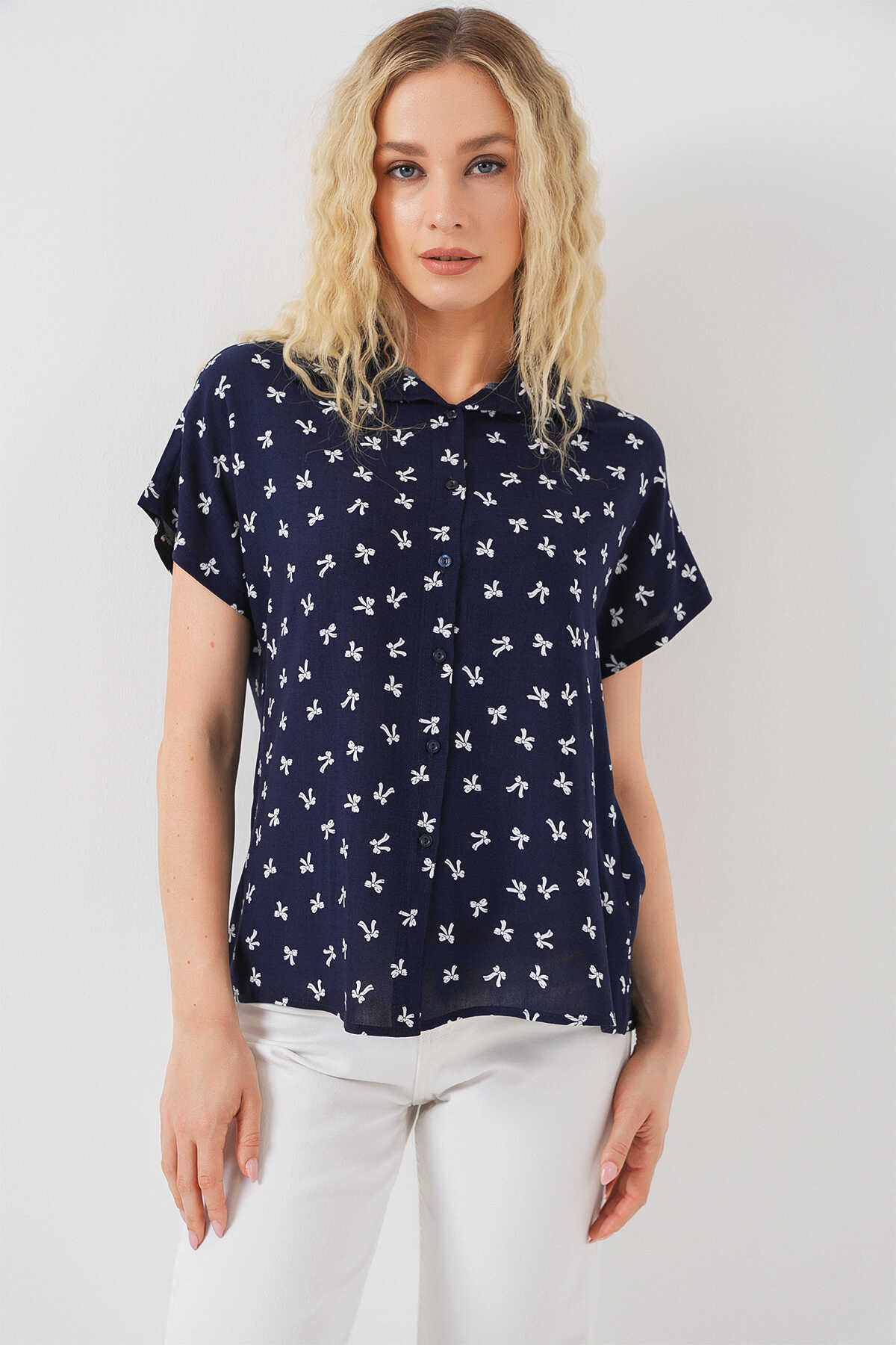 Kadın Kısa Kol Desenli Gömlek 20310 - Lacivert