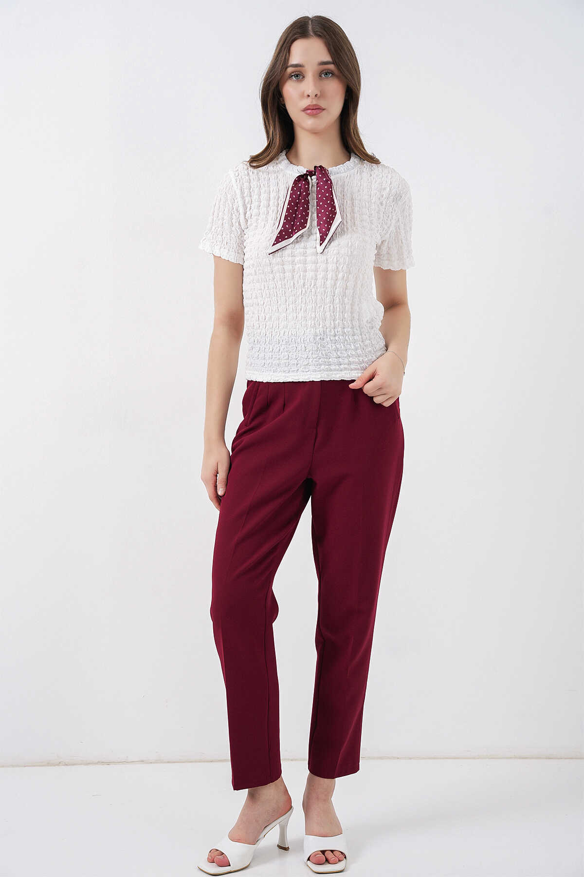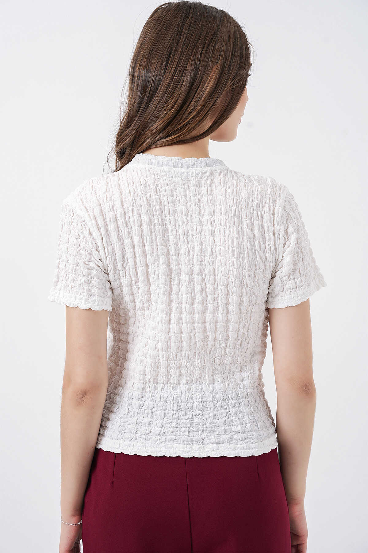 Kadin Kisa Kol Fularli Örme Bluz 981
