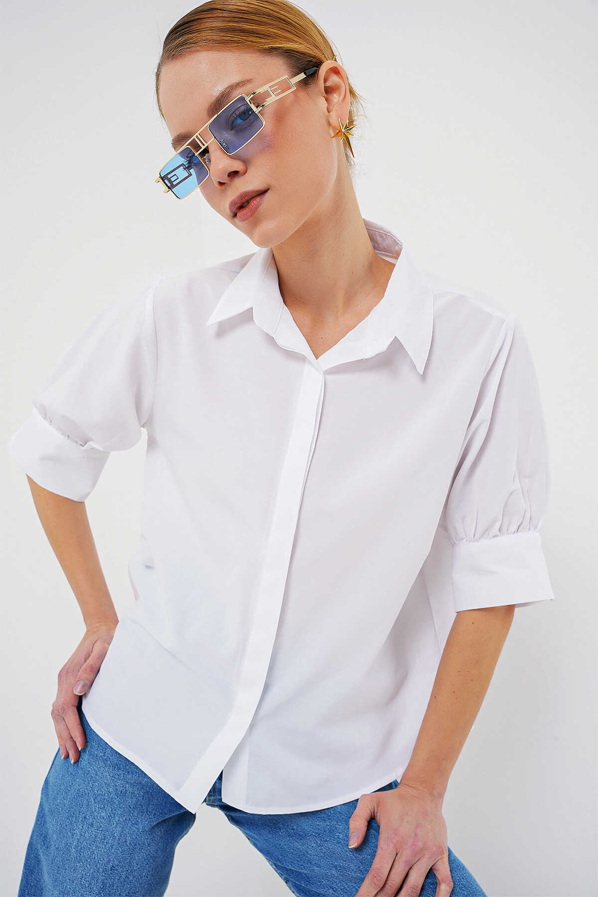 Kadın Kısa Kol Gömlek 20312 - Beyaz - Kombin