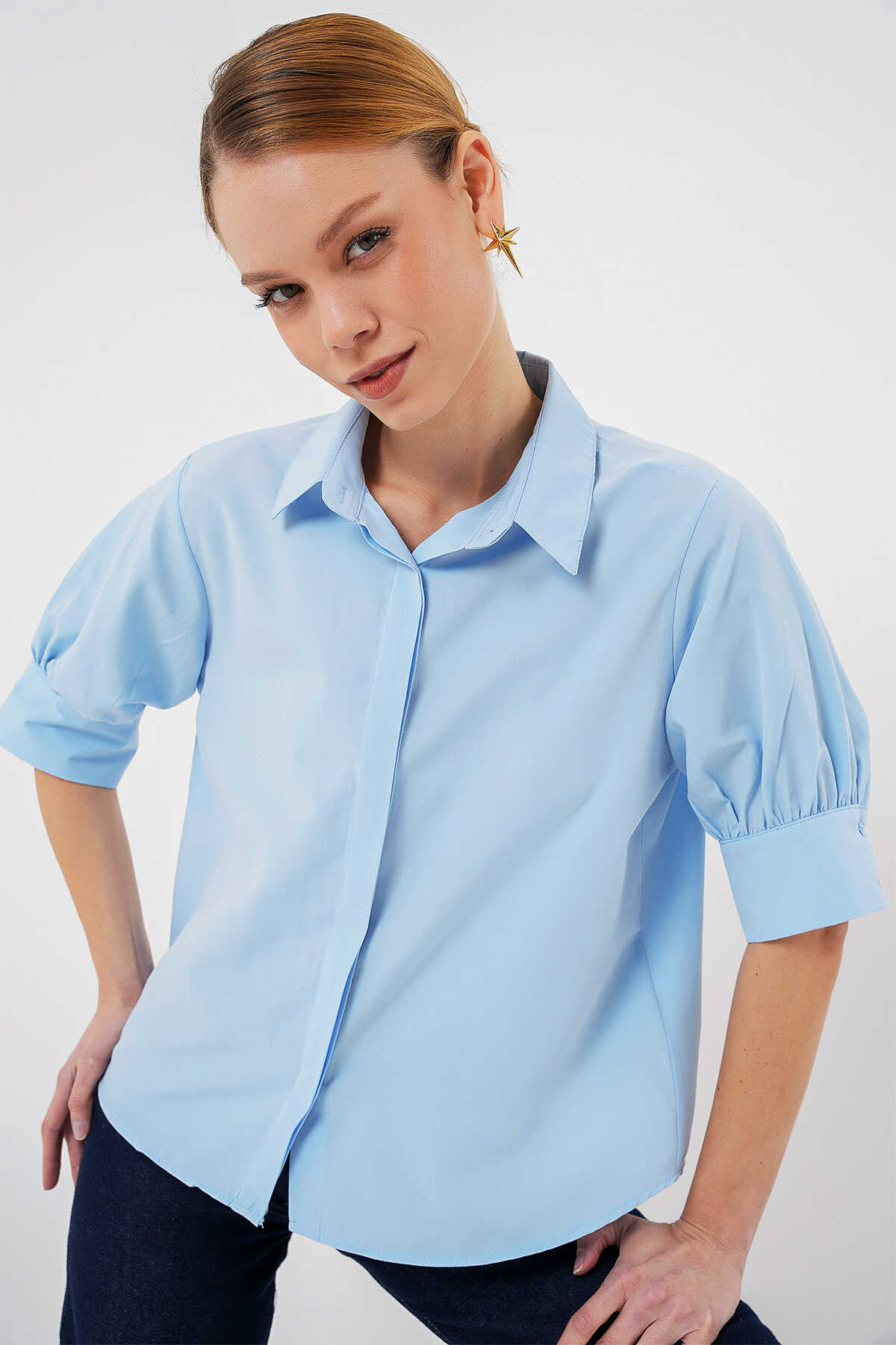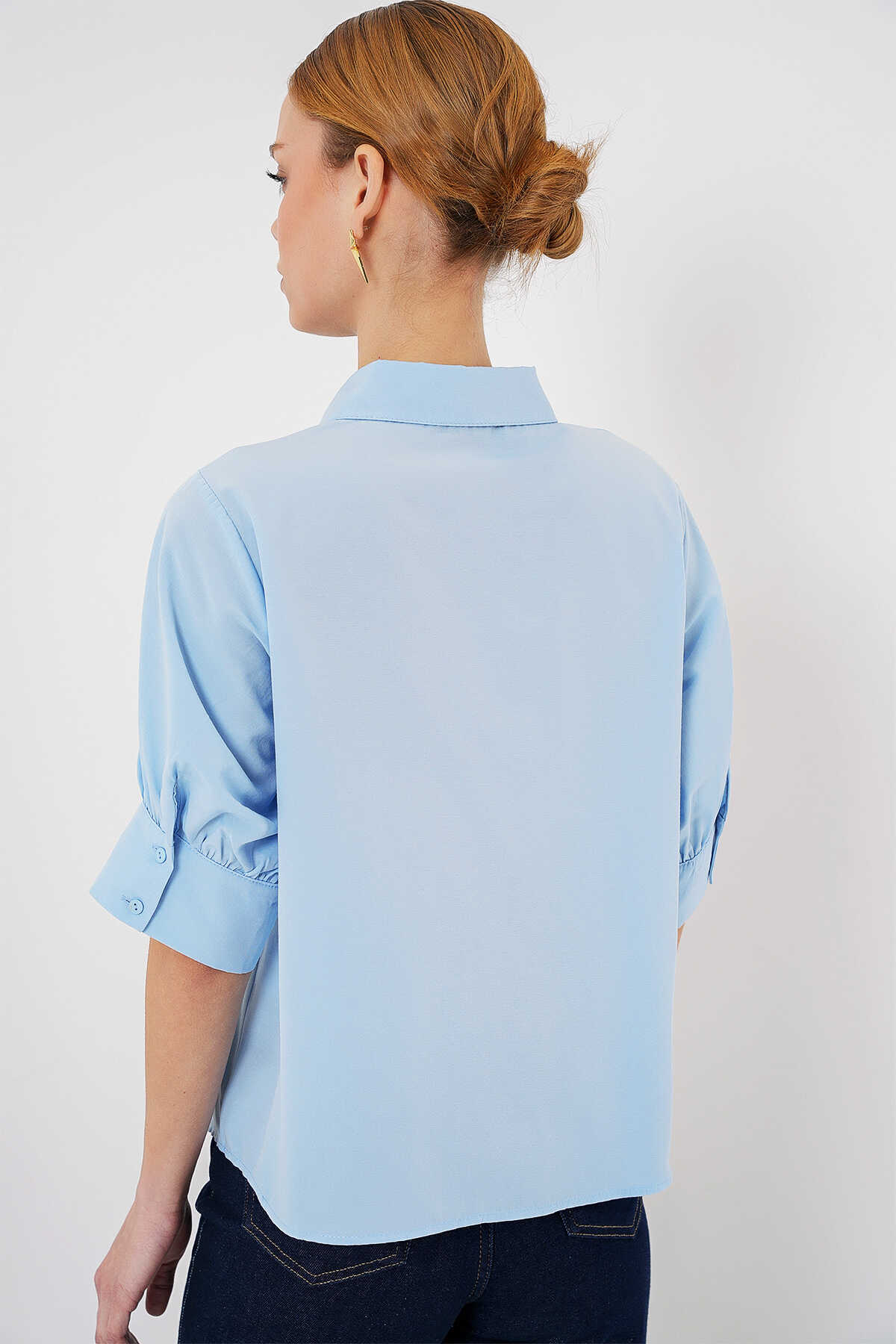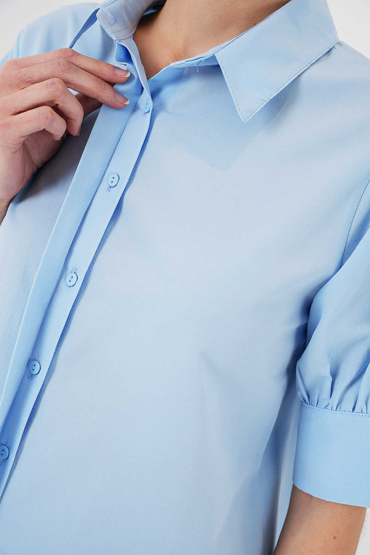 Kadın Kısa Kol Gömlek 20312 - Mavi - Kombin