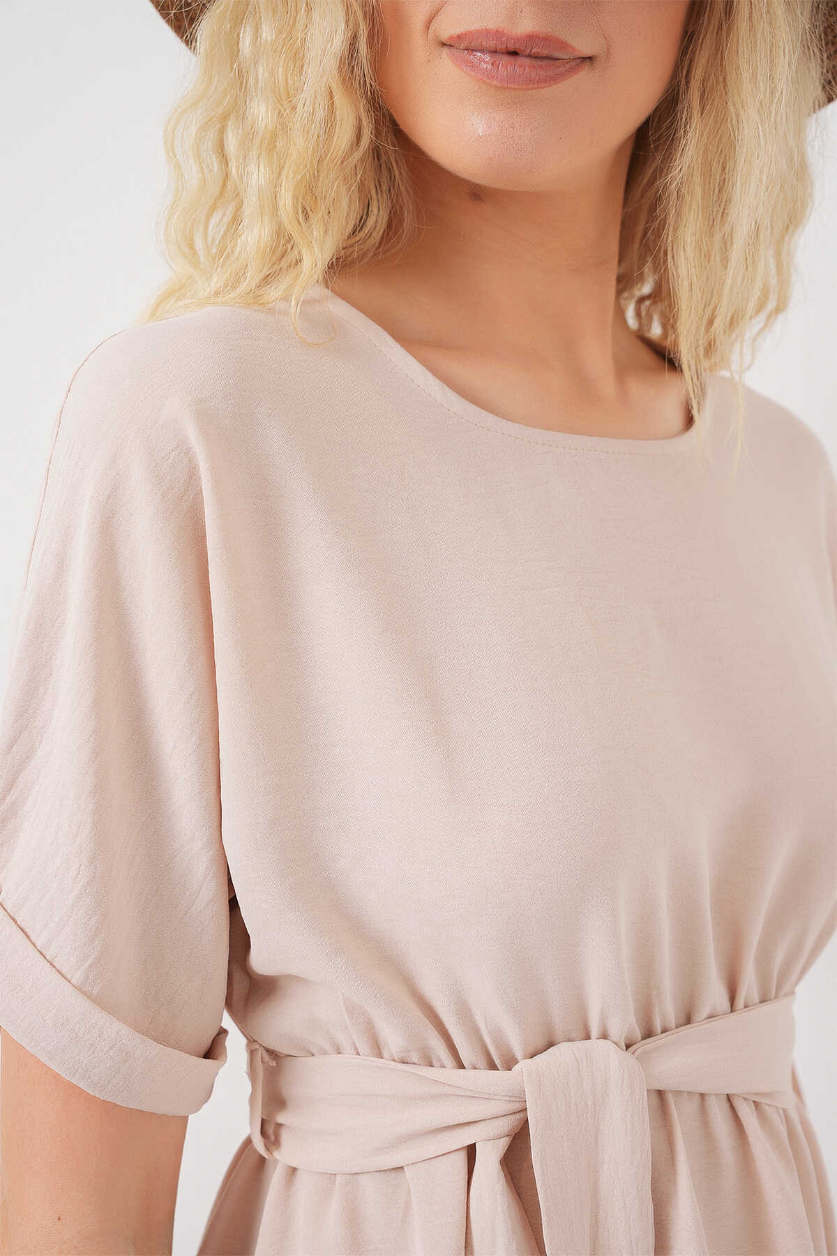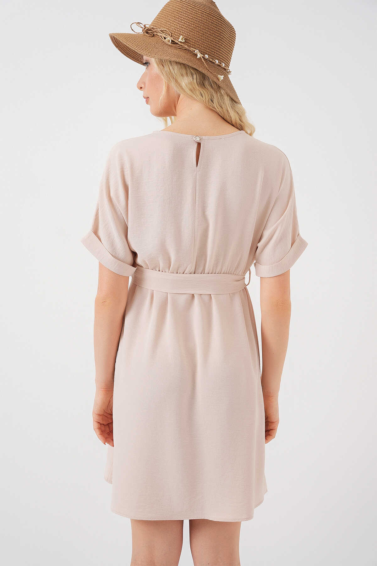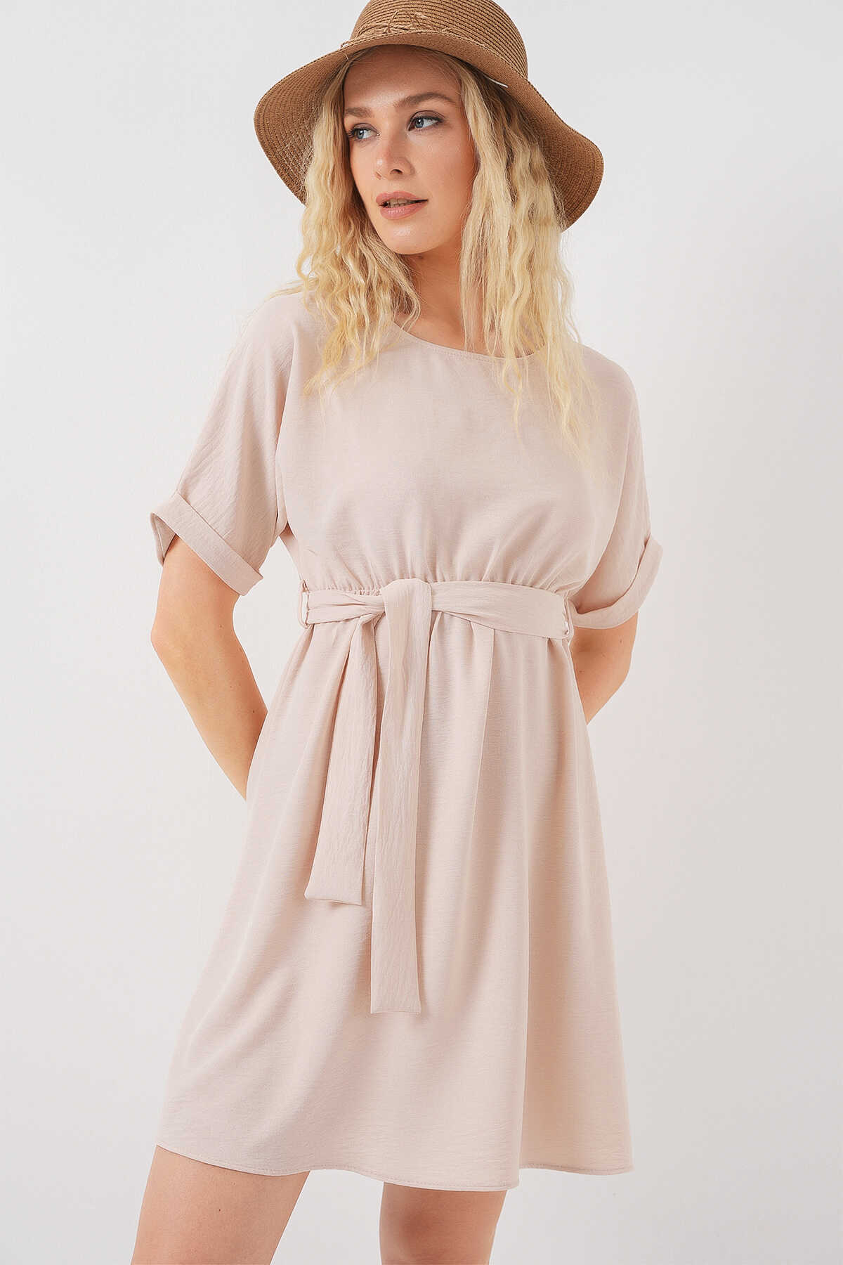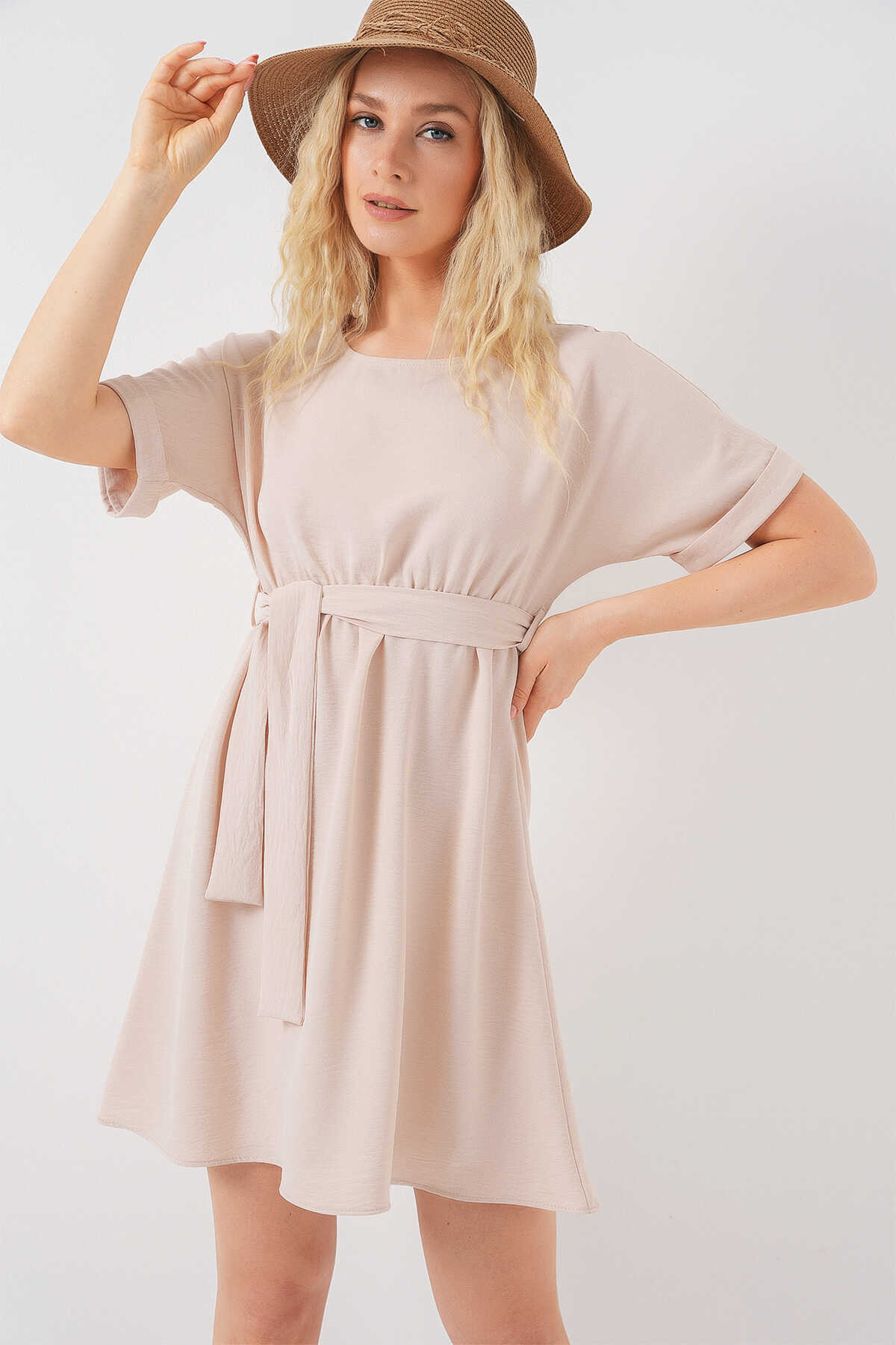 Kadın Kısa Kol Mini Ayrobin Elbise 2572 - Krem - Kombin