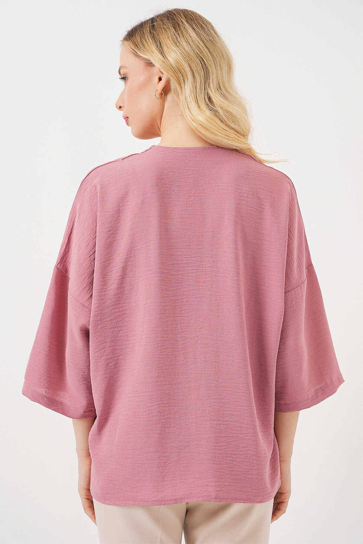 Kadın Kısa Kol Oversize Kimono 5969 - Gül Kurusu - Kombin