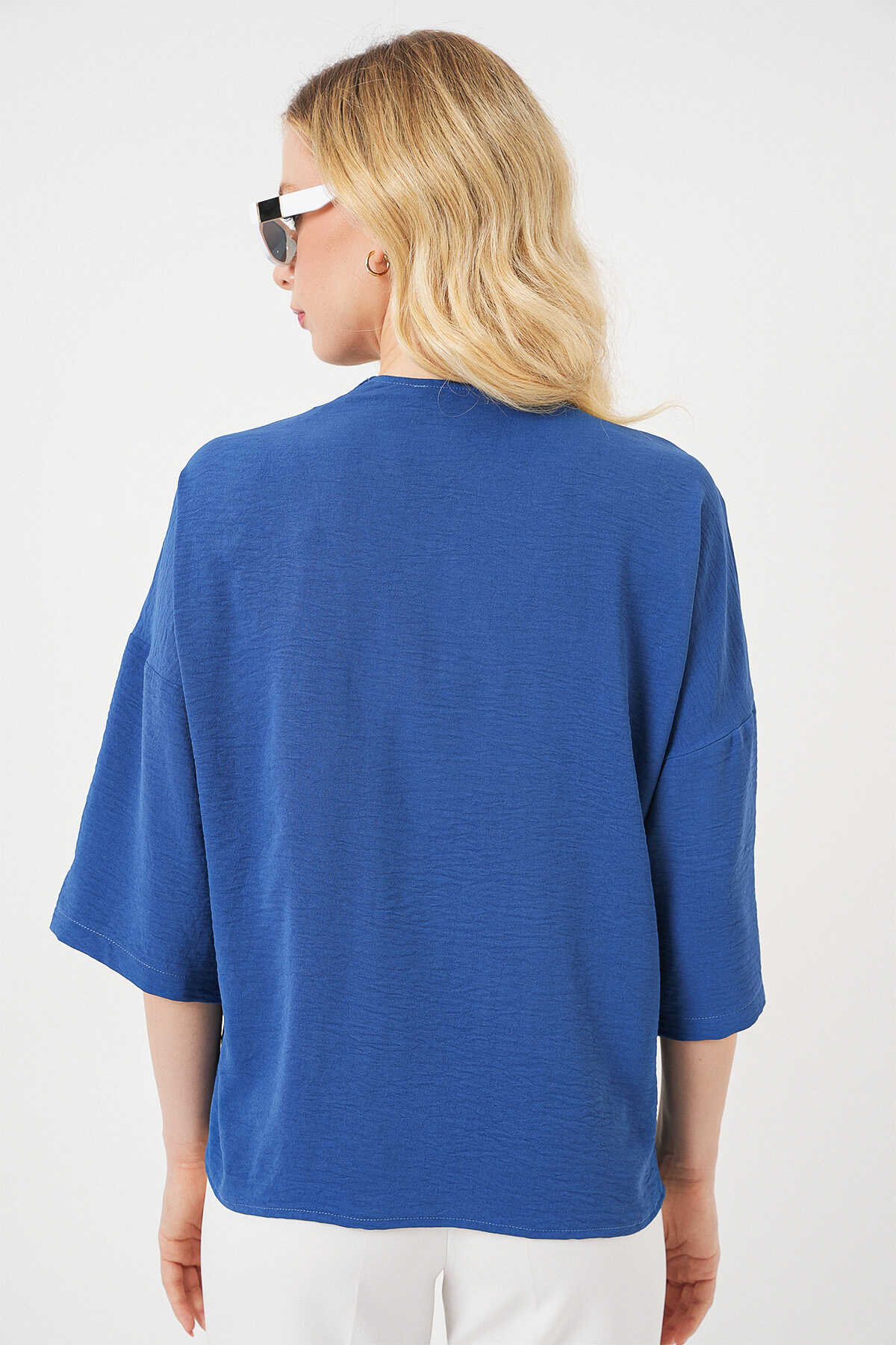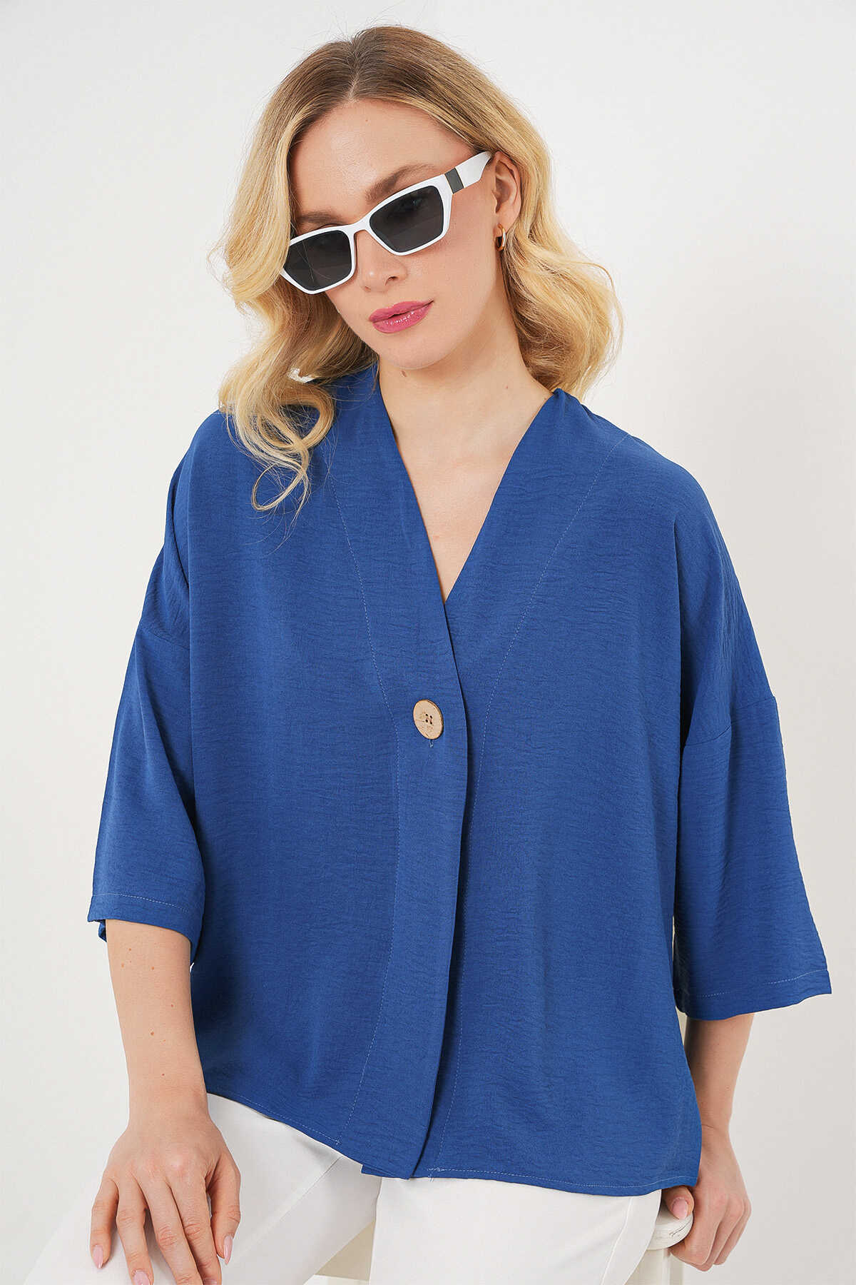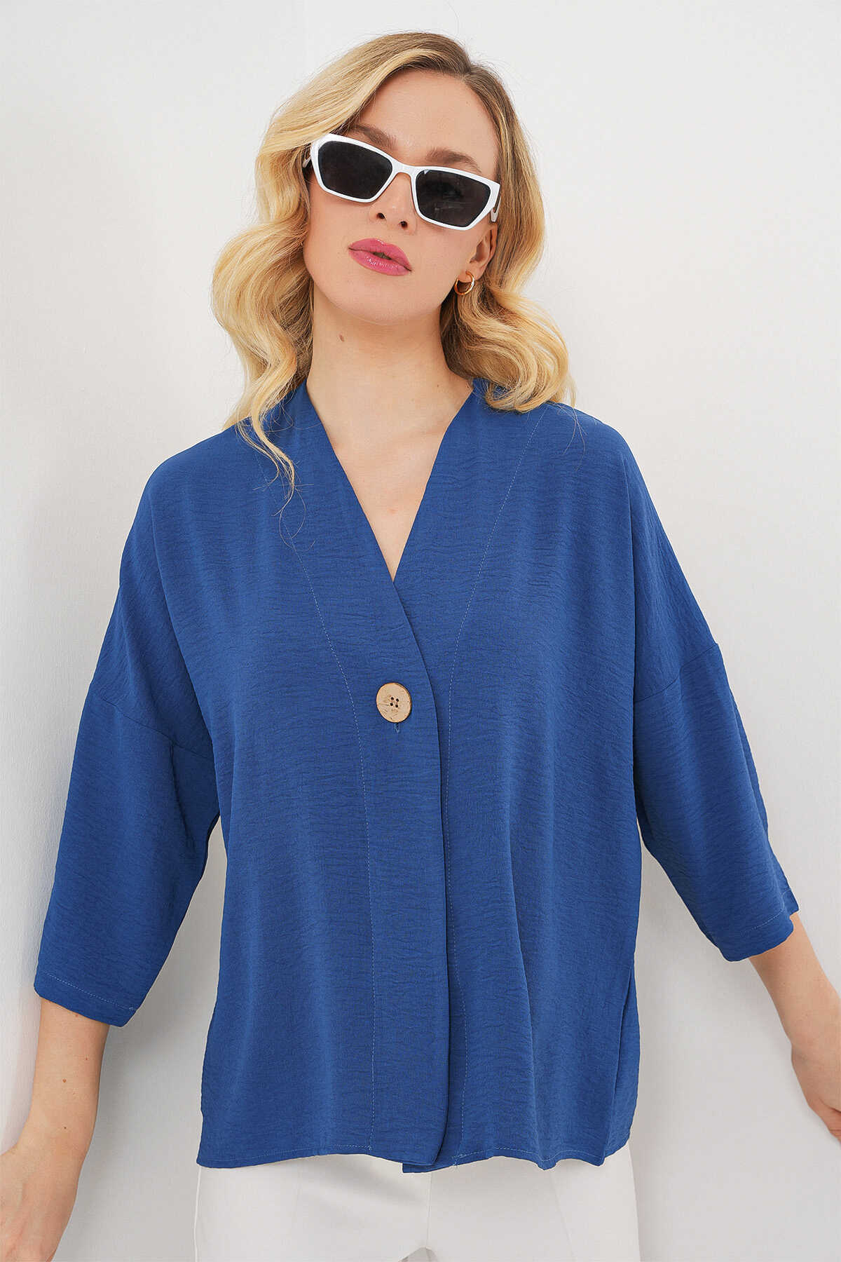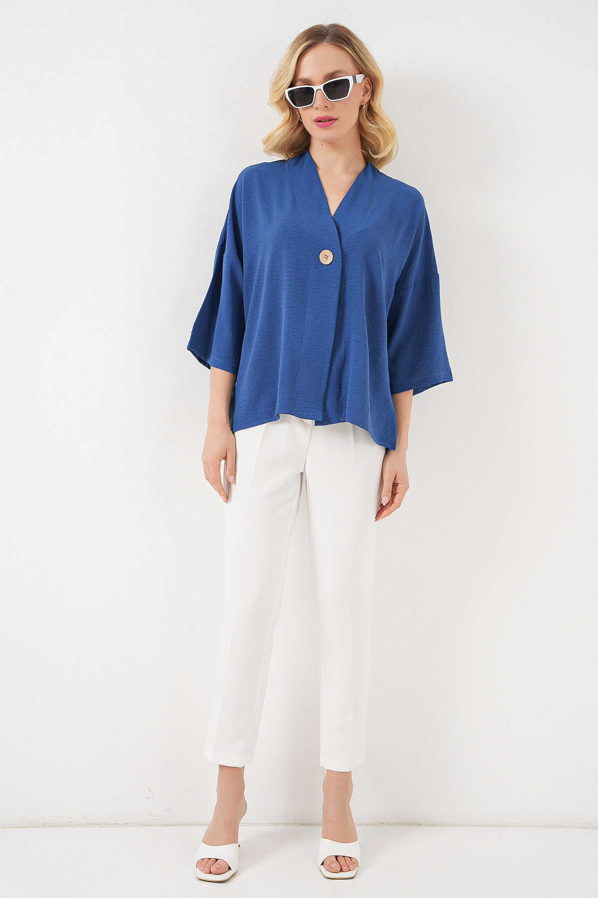 Kadın Kısa Kol Oversize Kimono 5969 - İndigo - Kombin