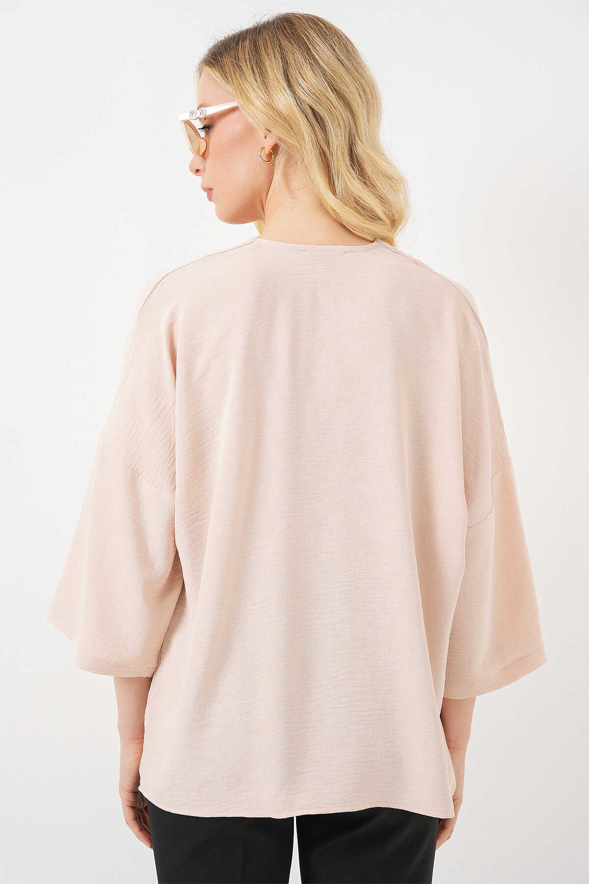 Kadın Kısa Kol Oversize Kimono 5969 - Krem - Kombin