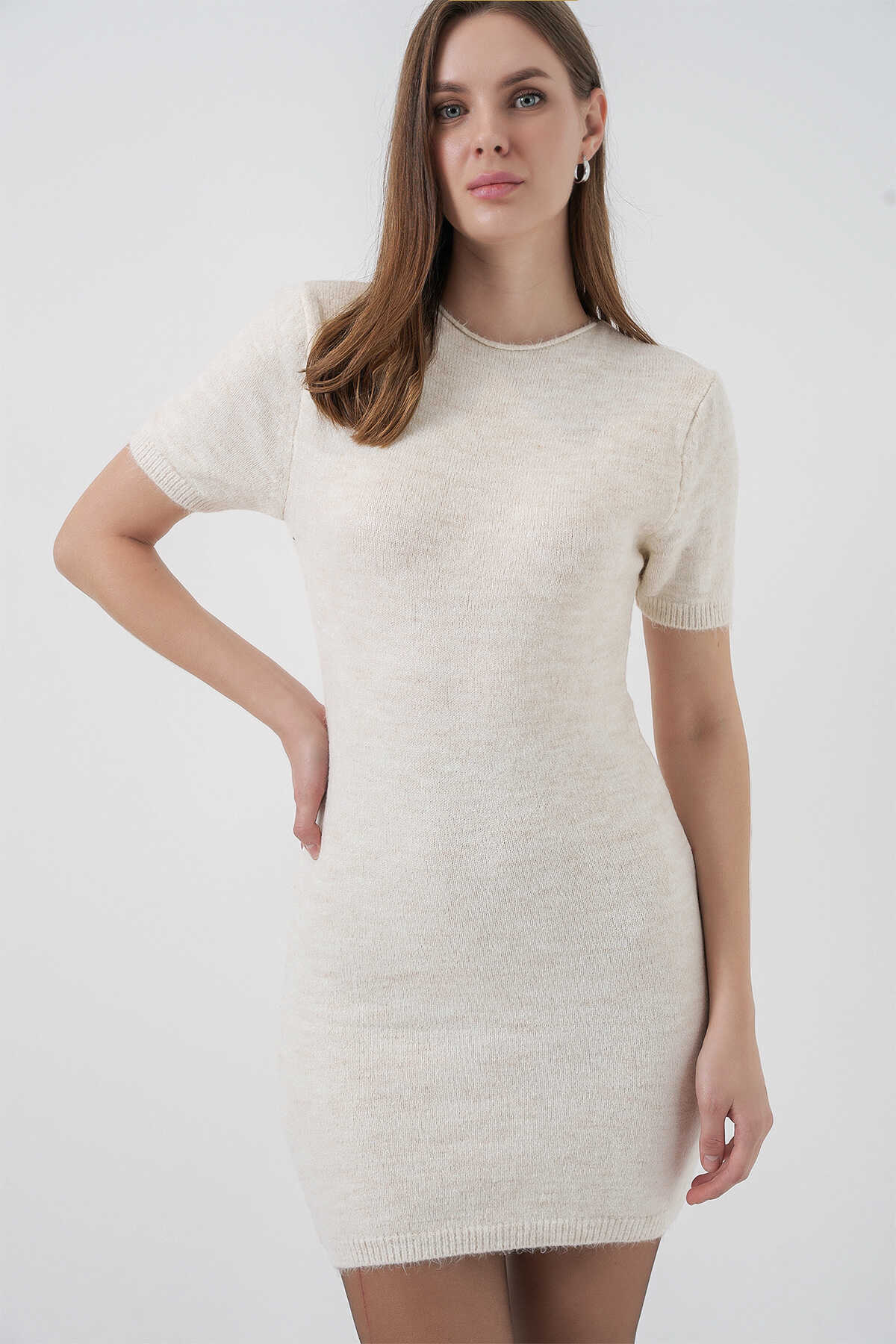 Kadın Kısa Kol Triko Elbise 15950 - Krem
