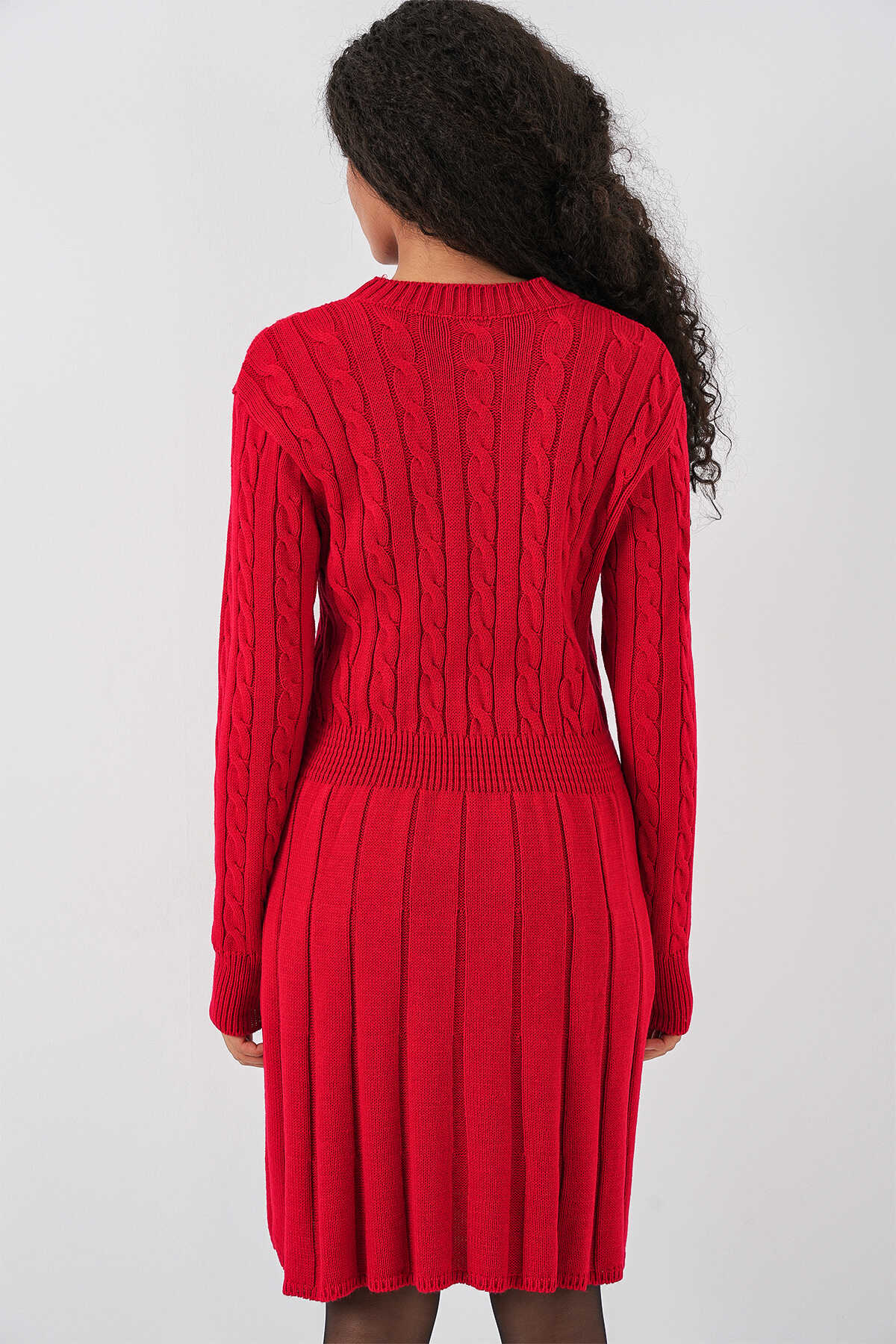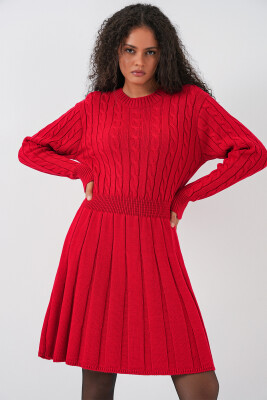 Kadın Kısa Triko Elbise 15943 - Kırmızı - Kombin