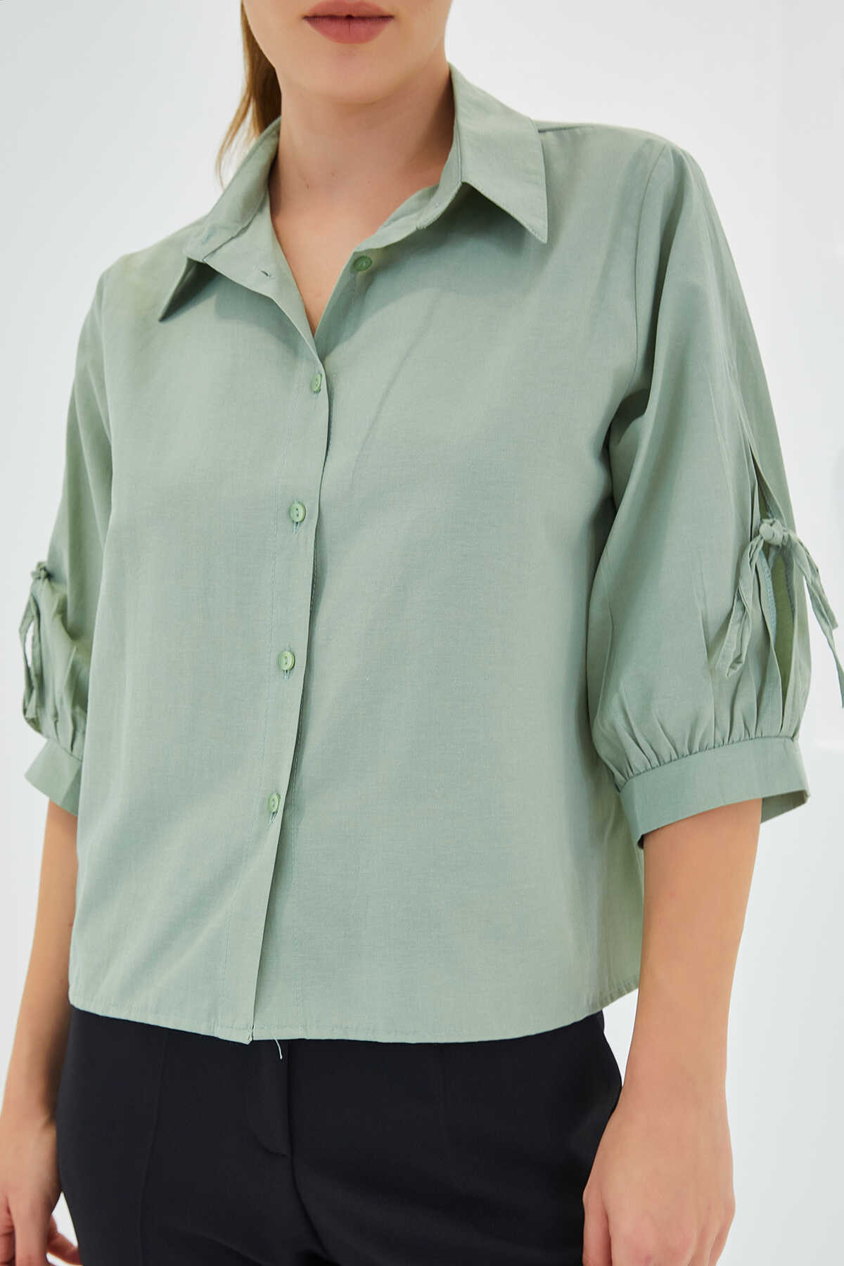 Kadın Kol Detaylı Çağla Yeşili Crop Gömlek 20246