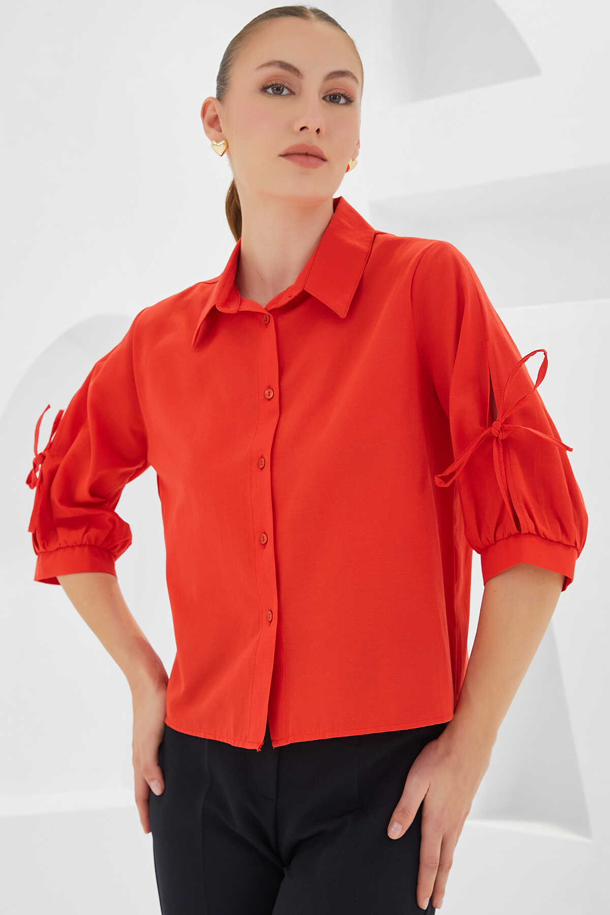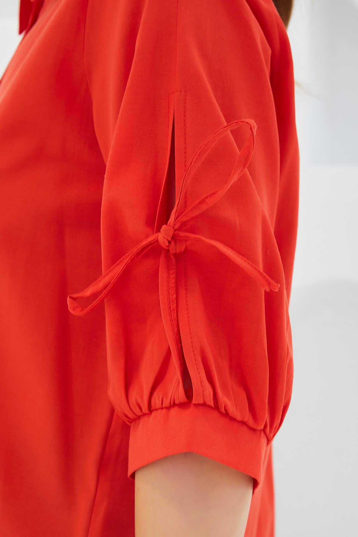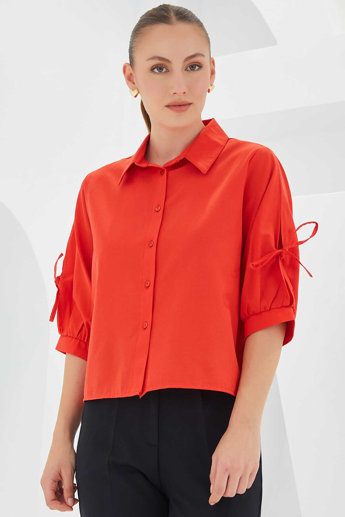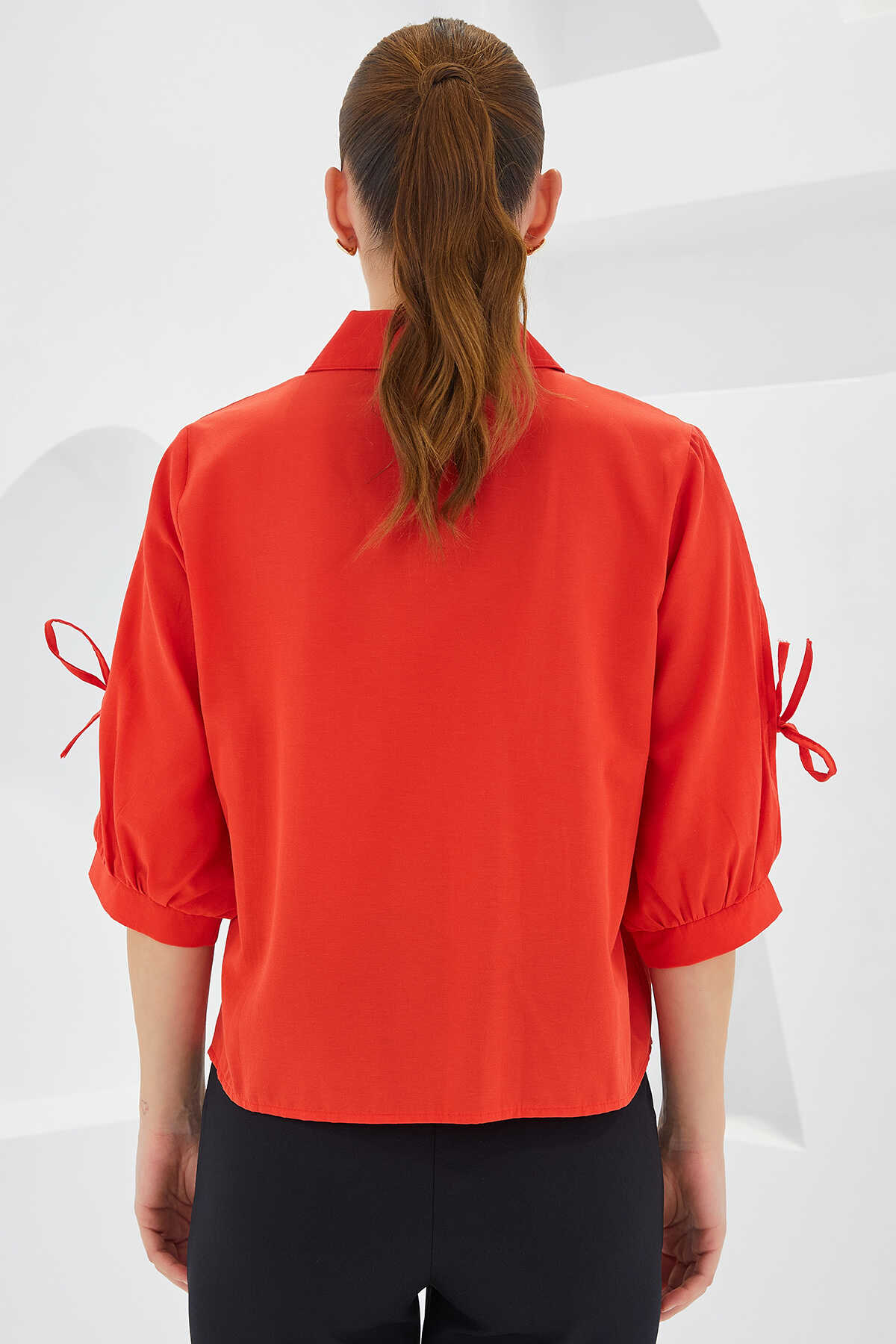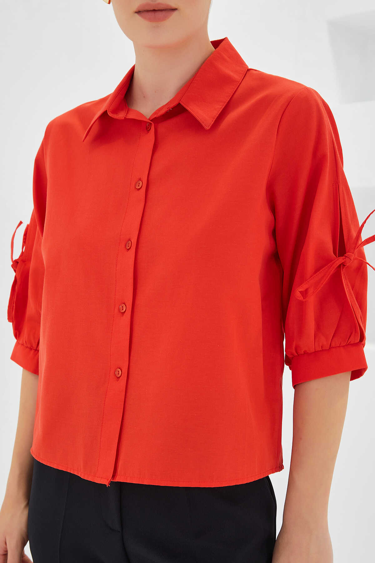 Kadın Kol Detaylı Kırmızı Crop Gömlek 20246 - Kombin