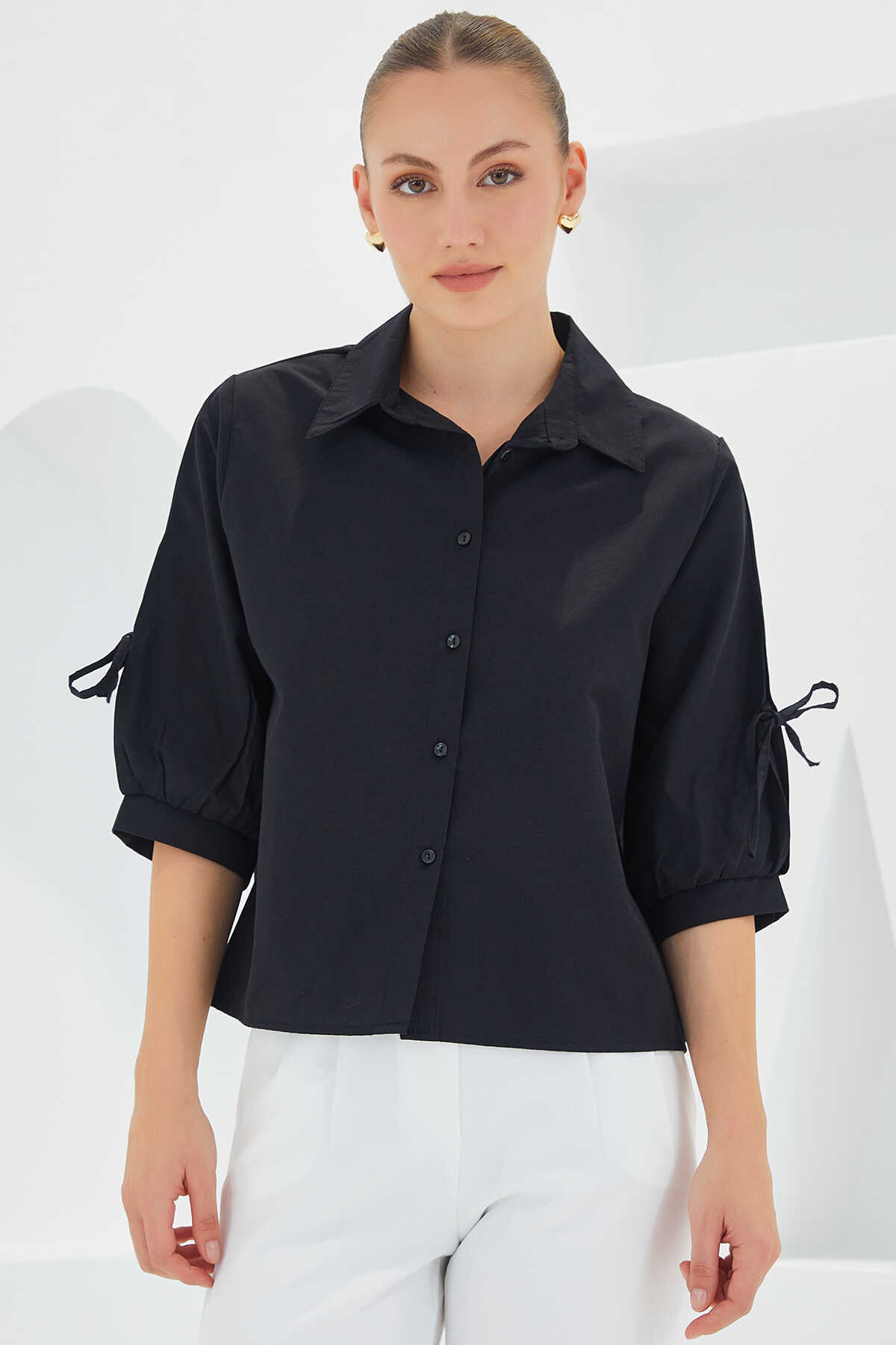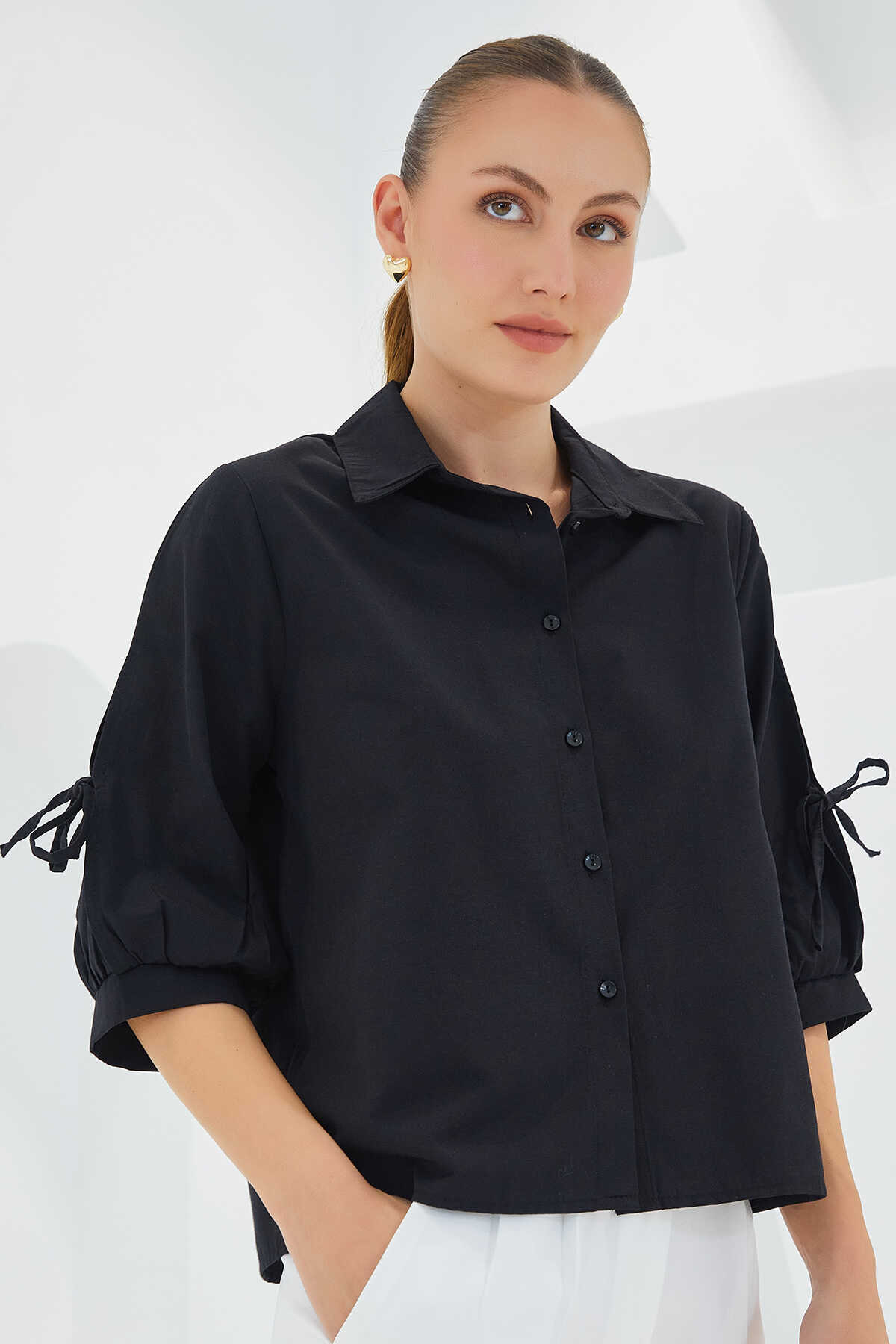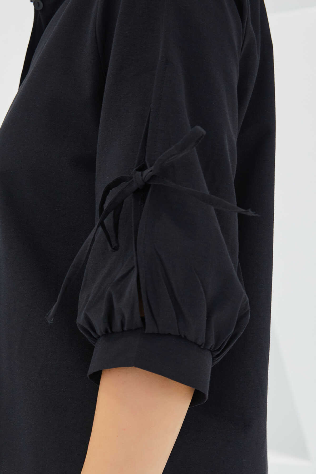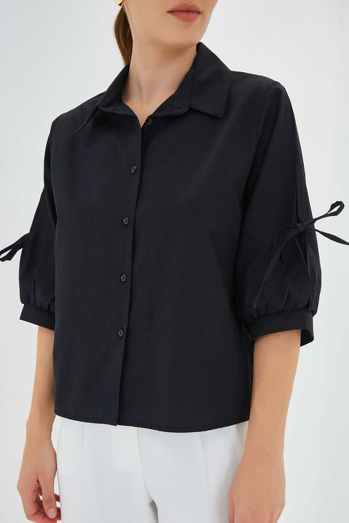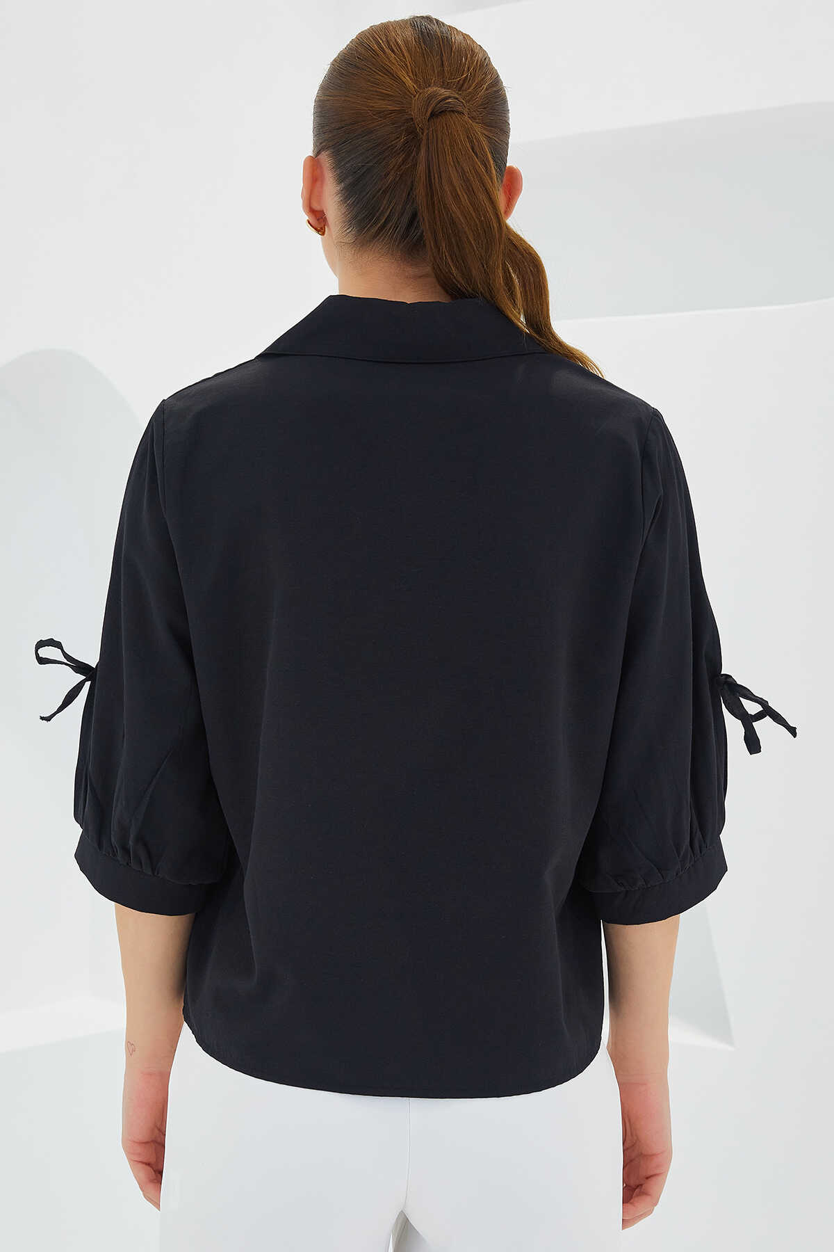 Kadın Kol Detaylı Siyah Crop Gömlek 20246 - Kombin