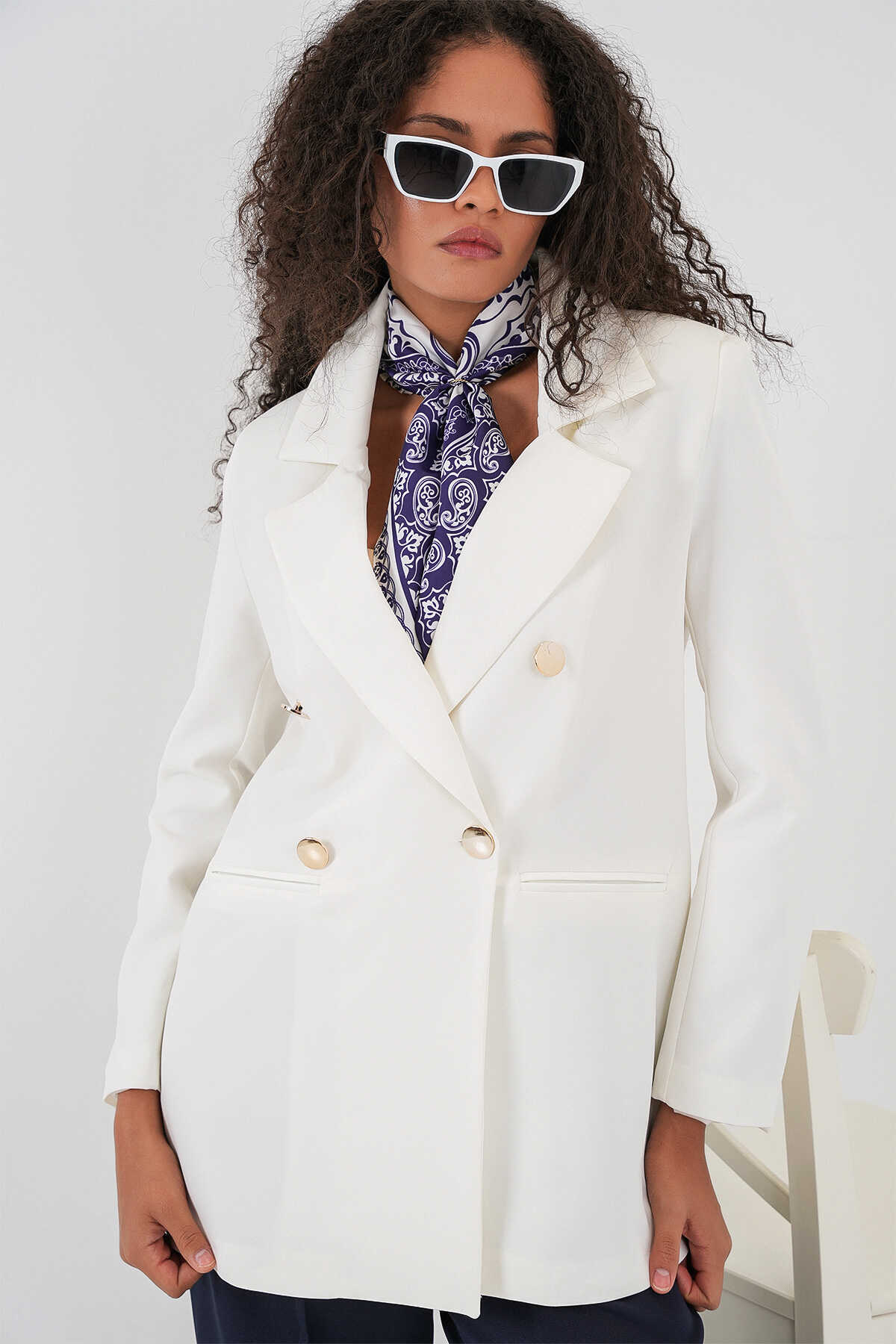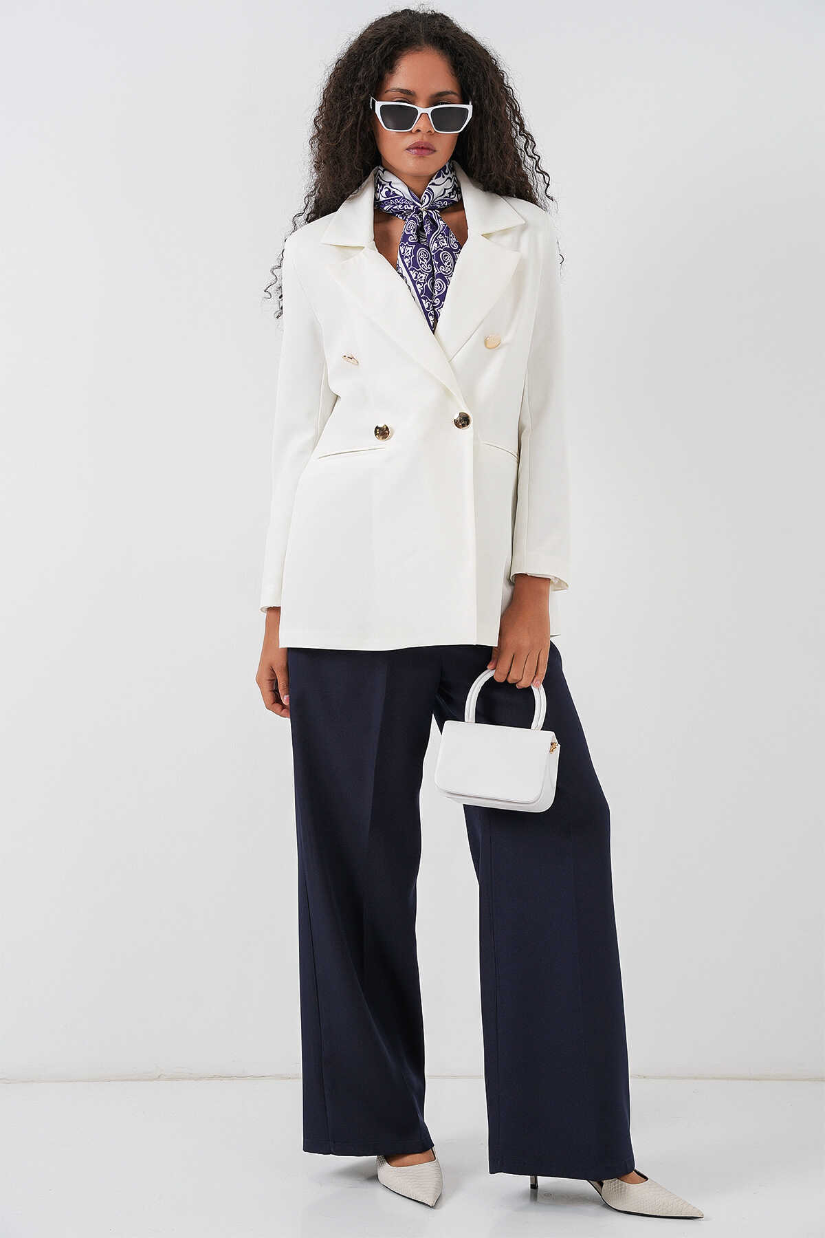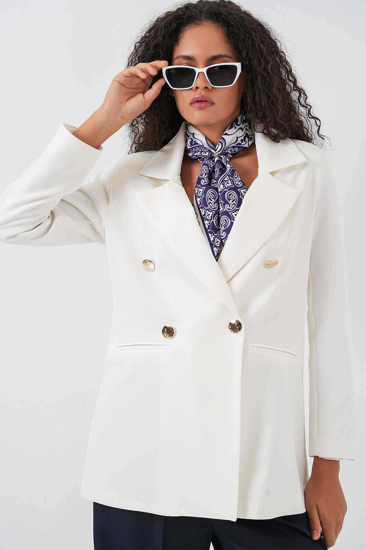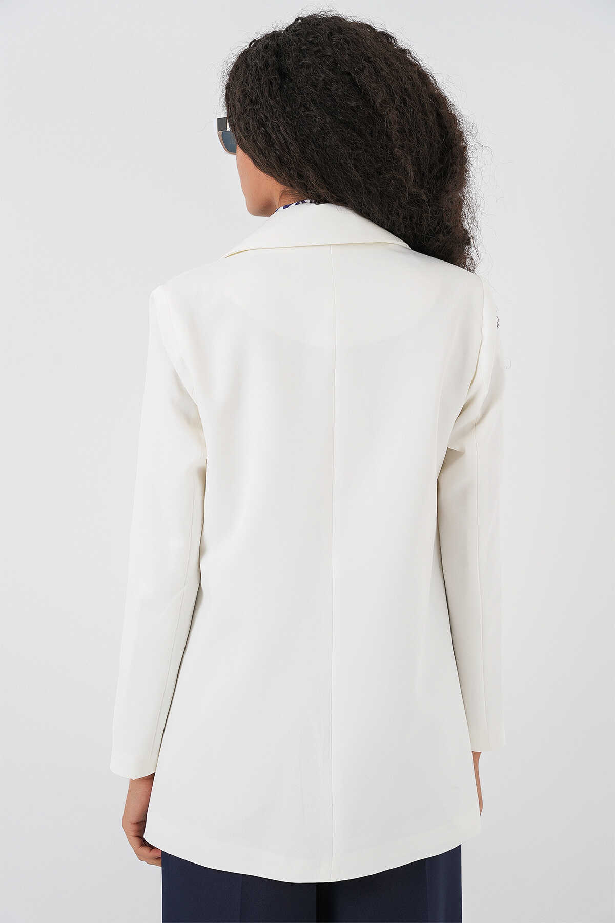 Kadın Kruvaze Yaka Blazer Ceket 0722 - Beyaz - Kombin