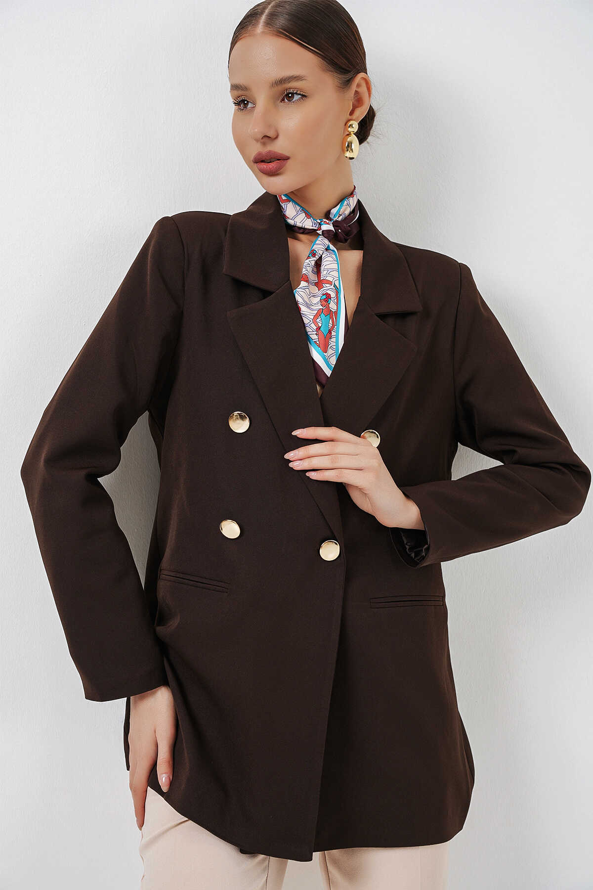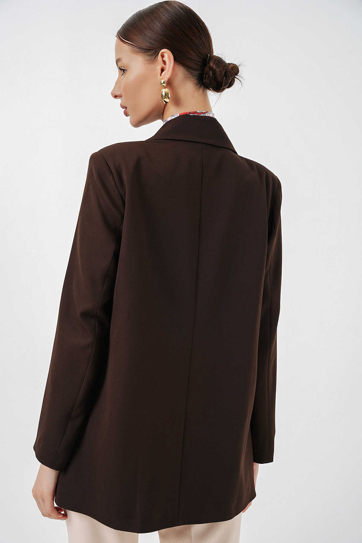 Kadın Kruvaze Yaka Blazer Ceket 0722 - Kahverengi - Kombin
