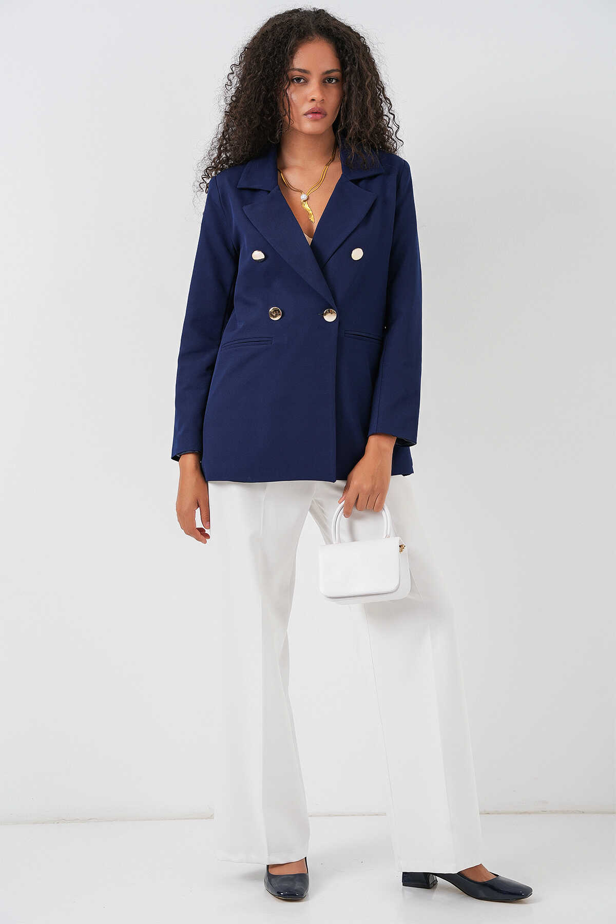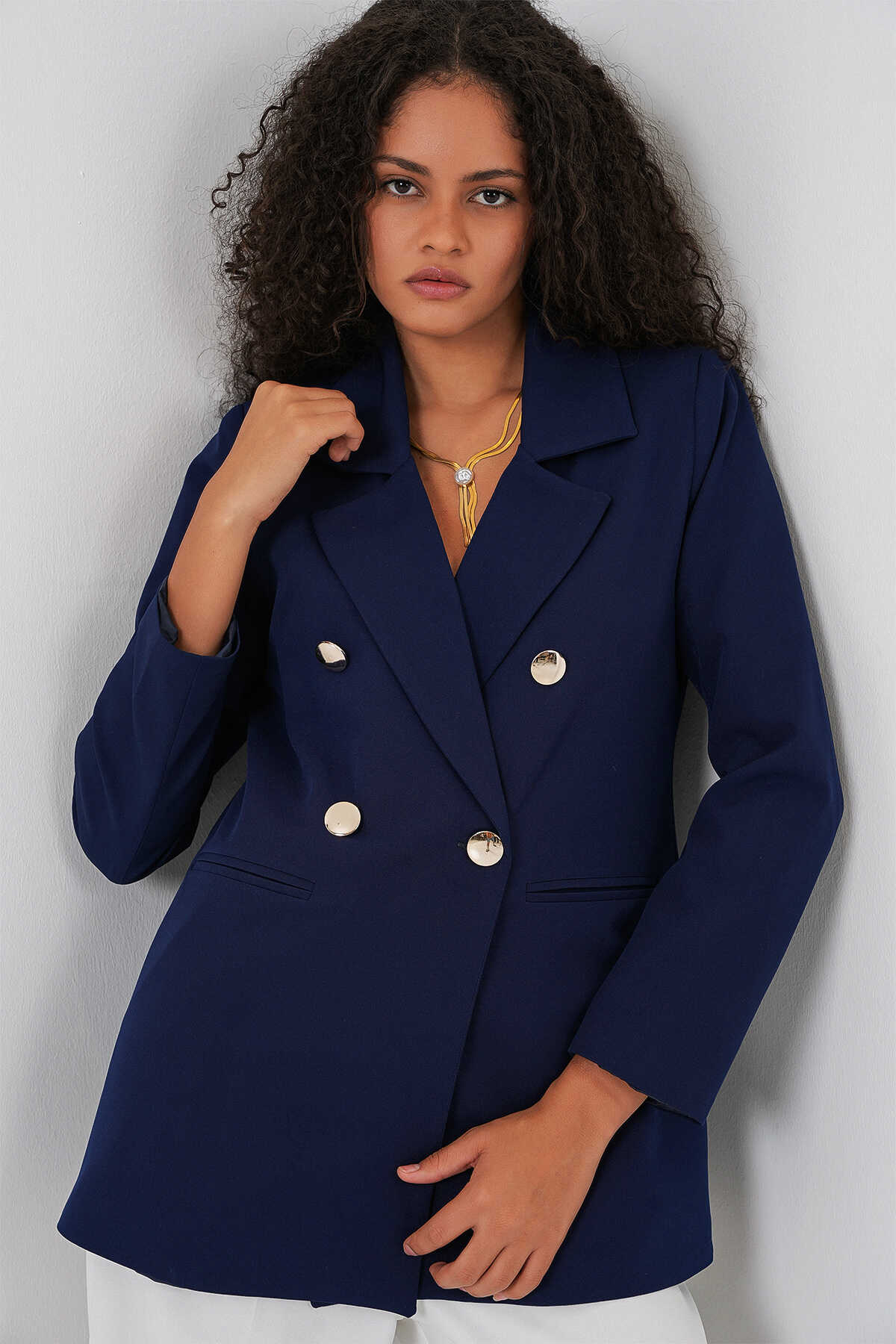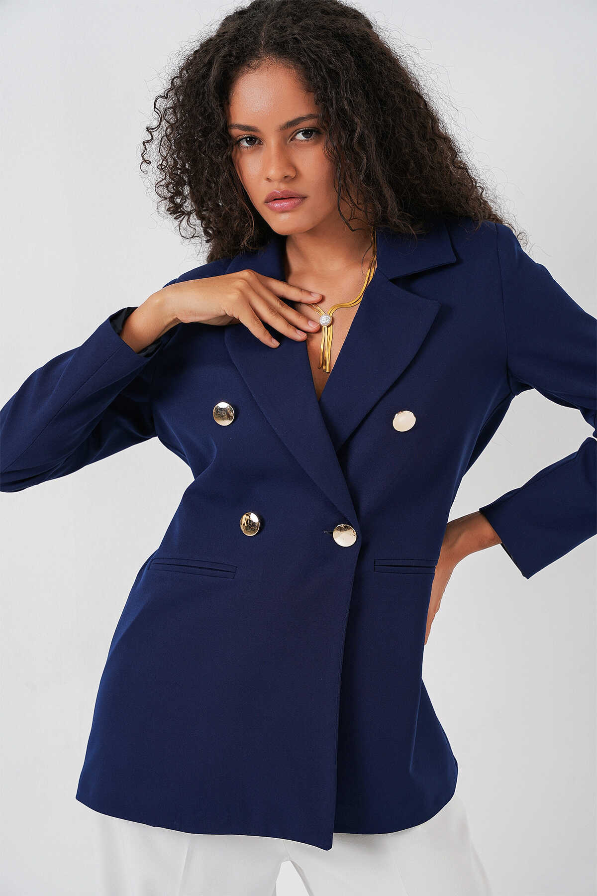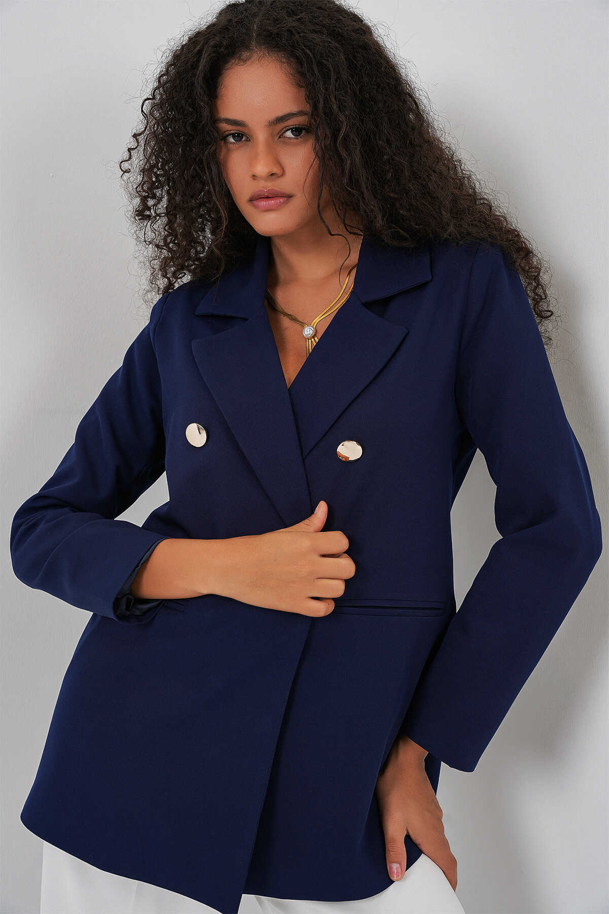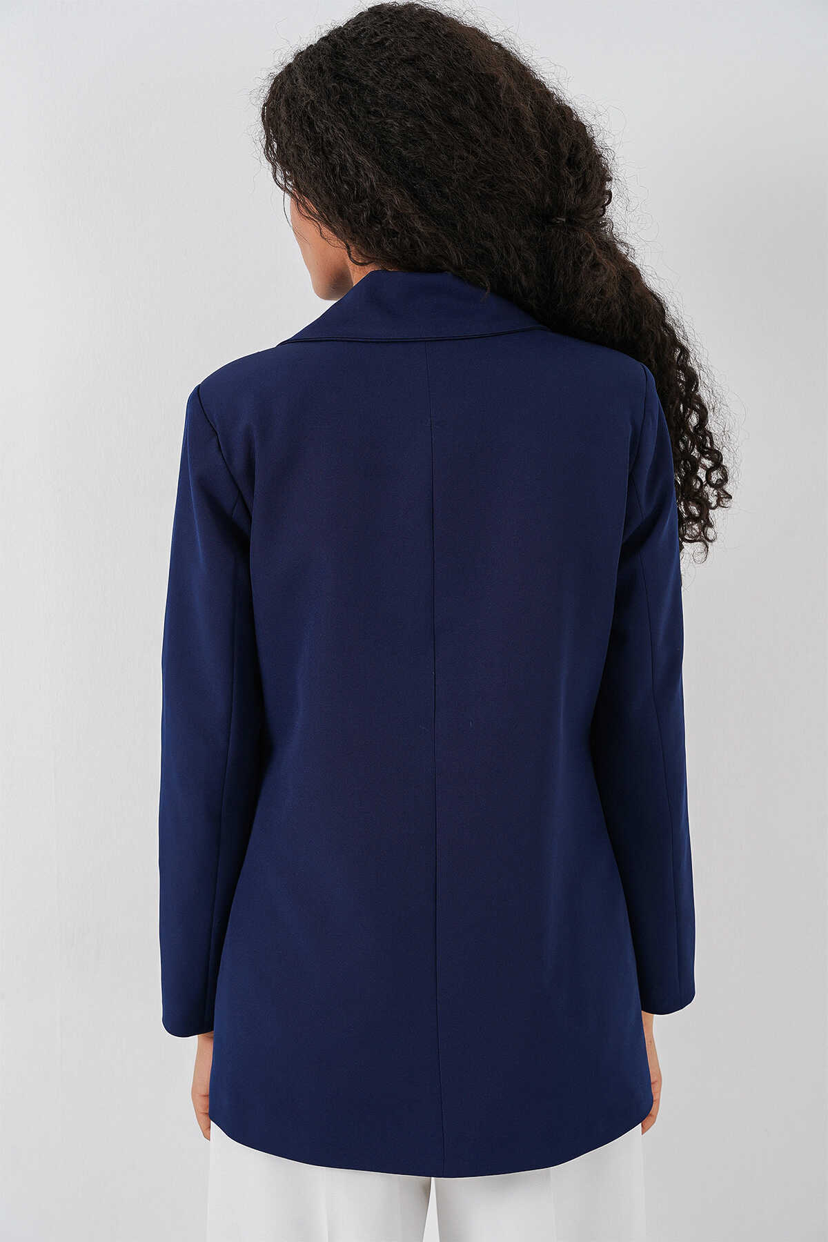 Kadın Kruvaze Yaka Blazer Ceket 0722 - Lacivert