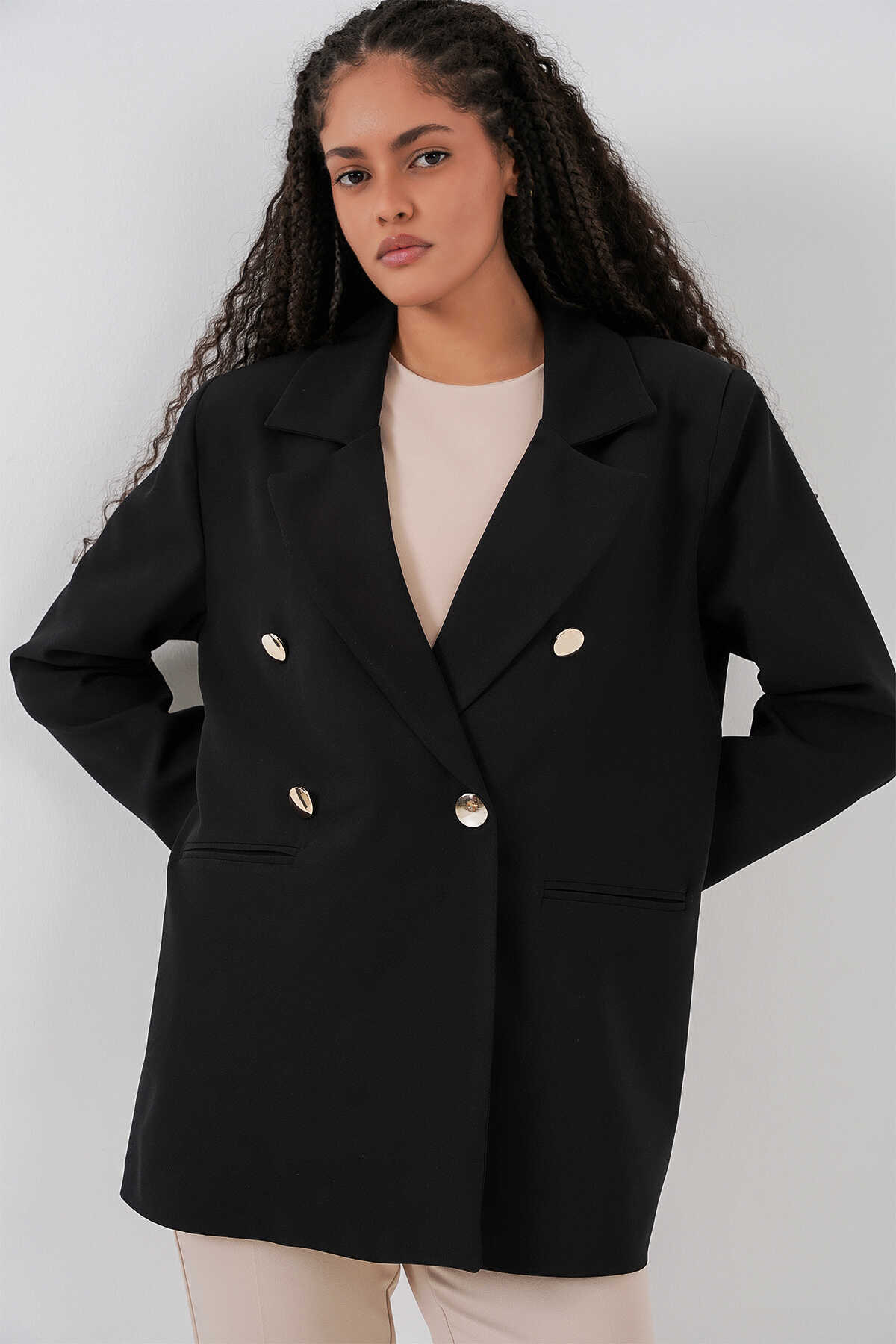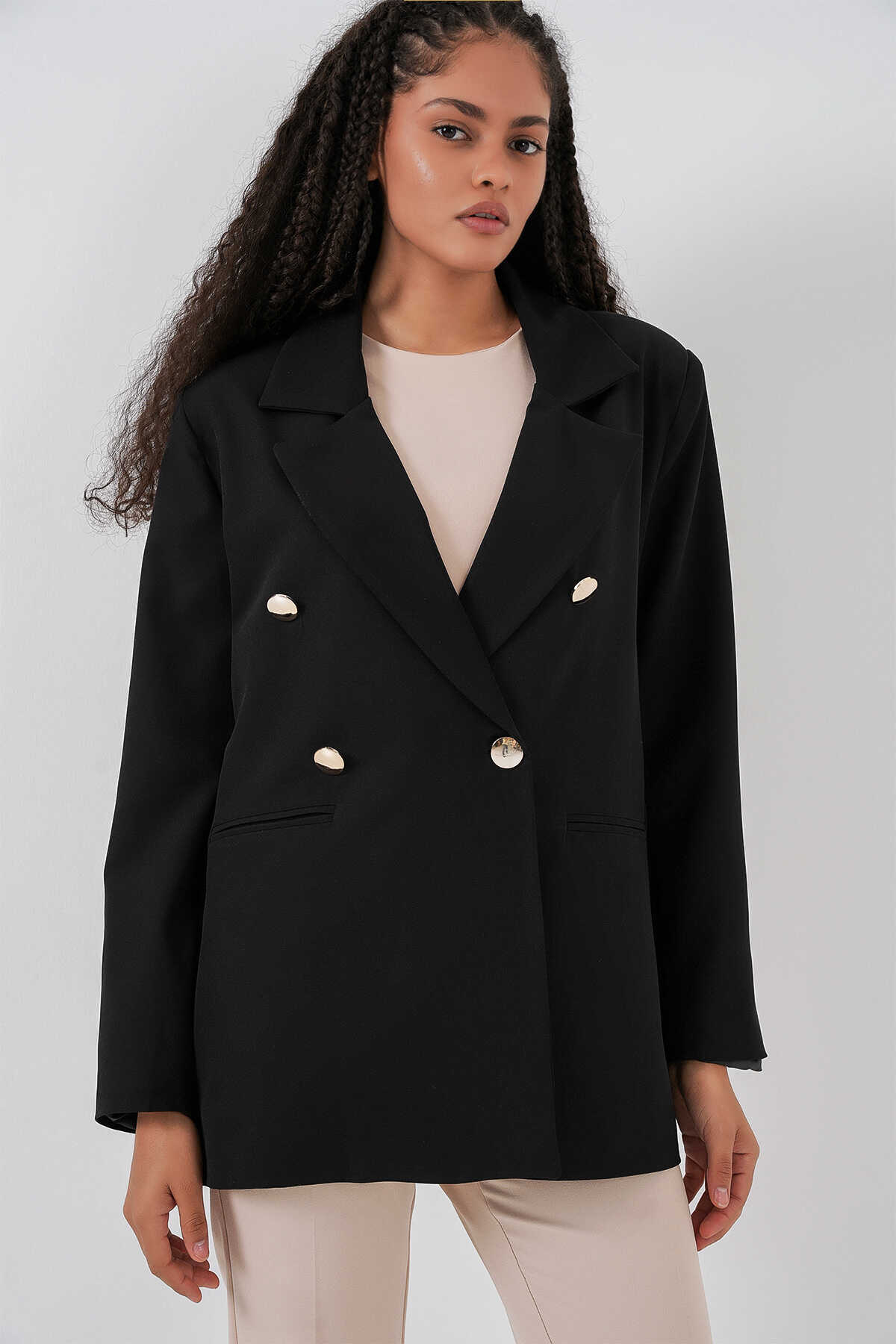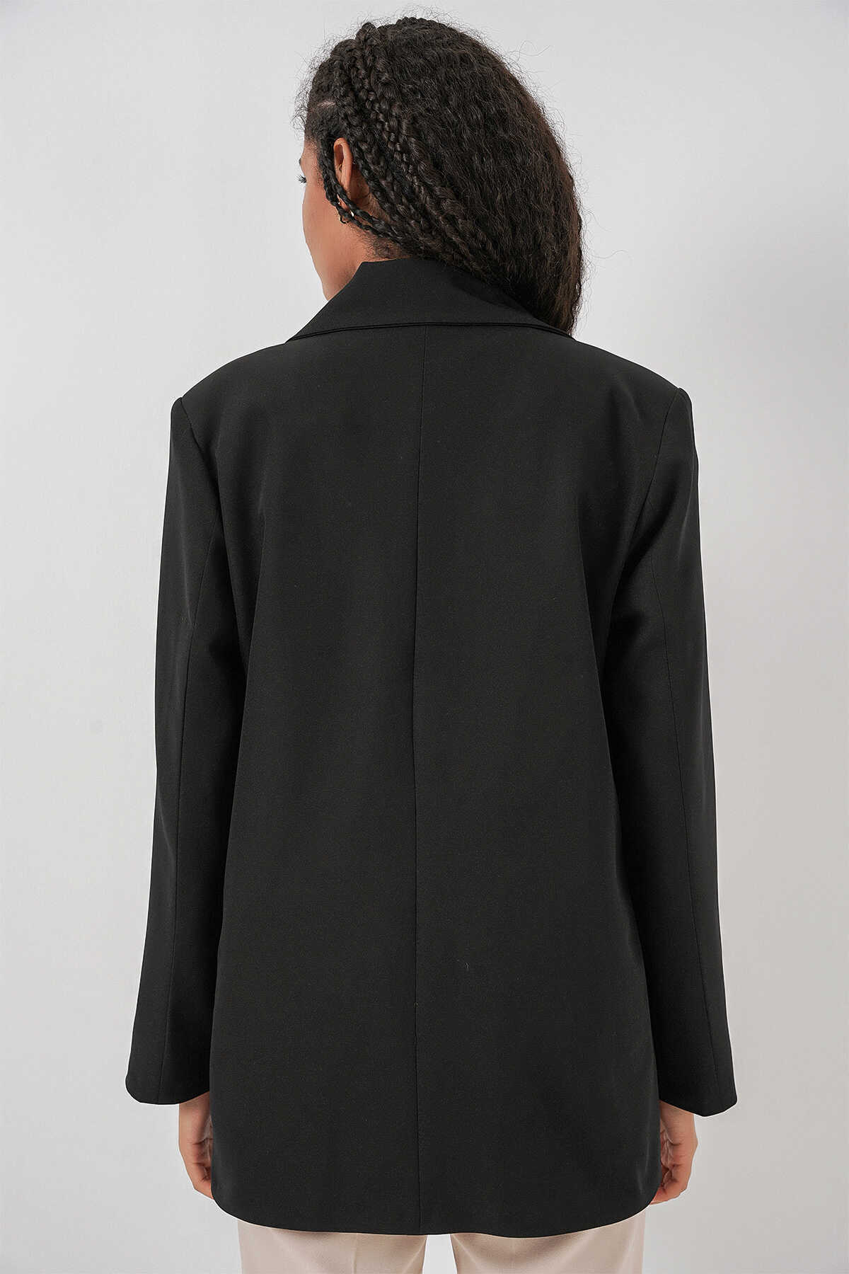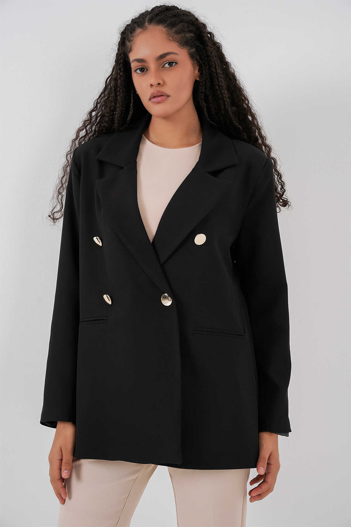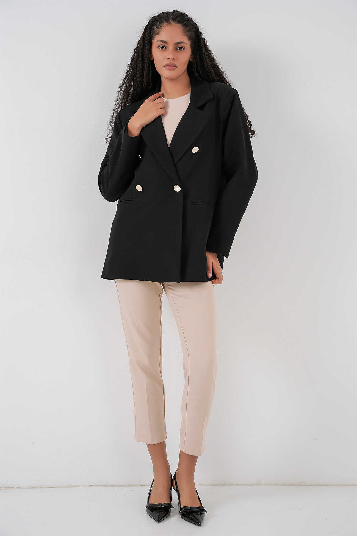 Kadın Kruvaze Yaka Blazer Ceket 0722 - Siyah - Kombin