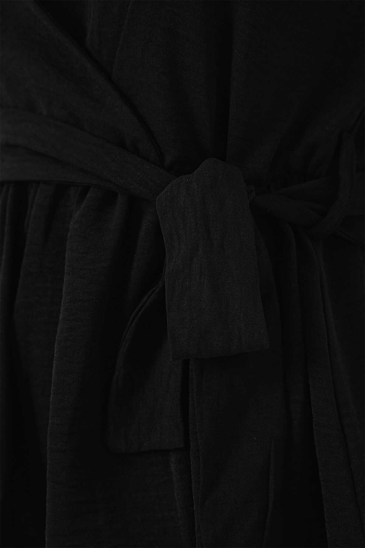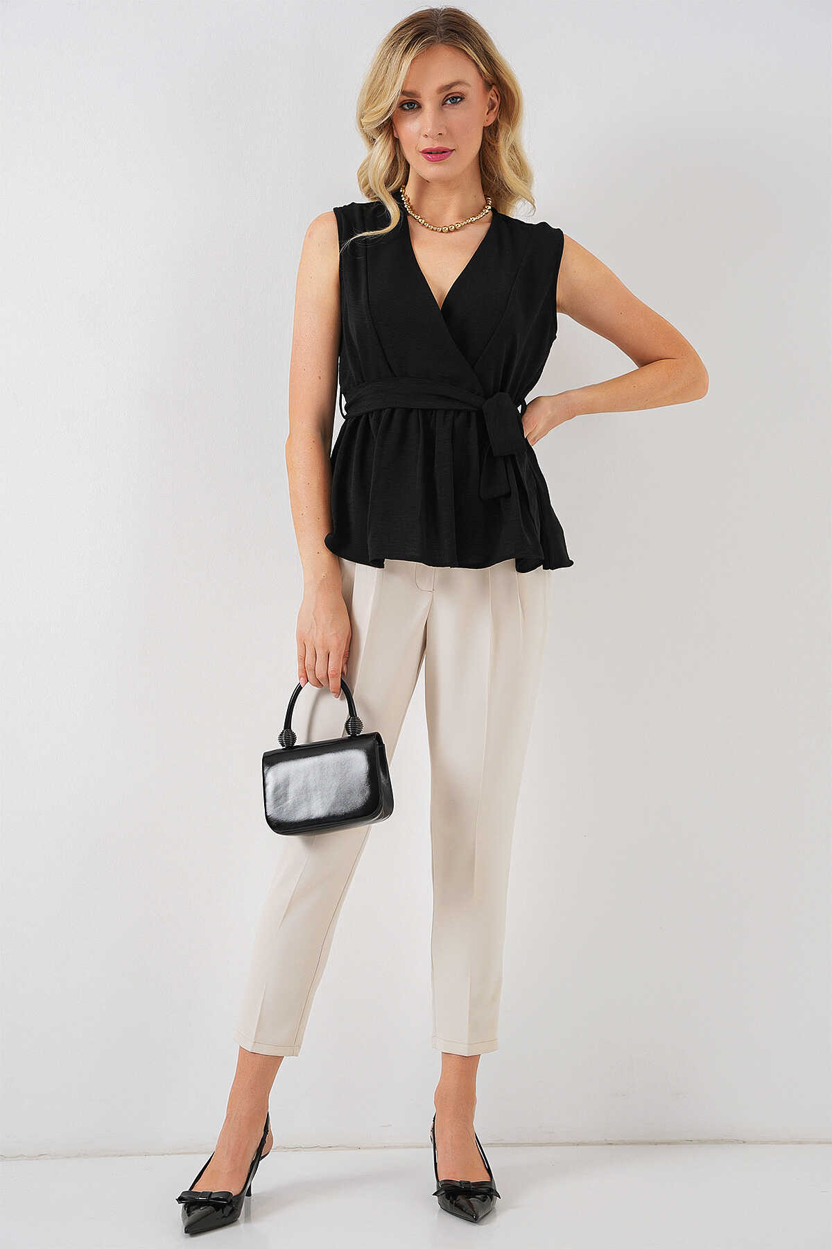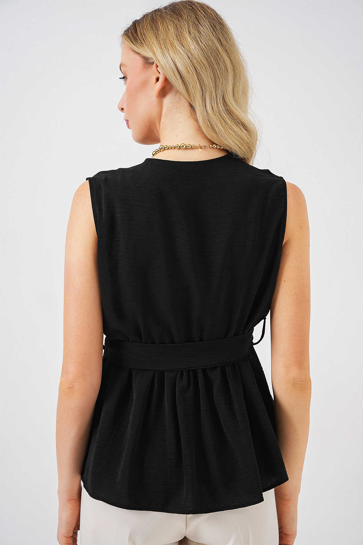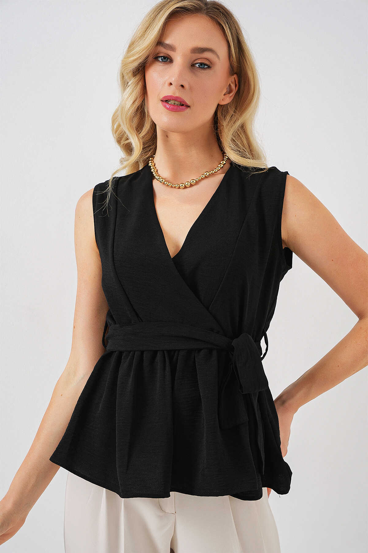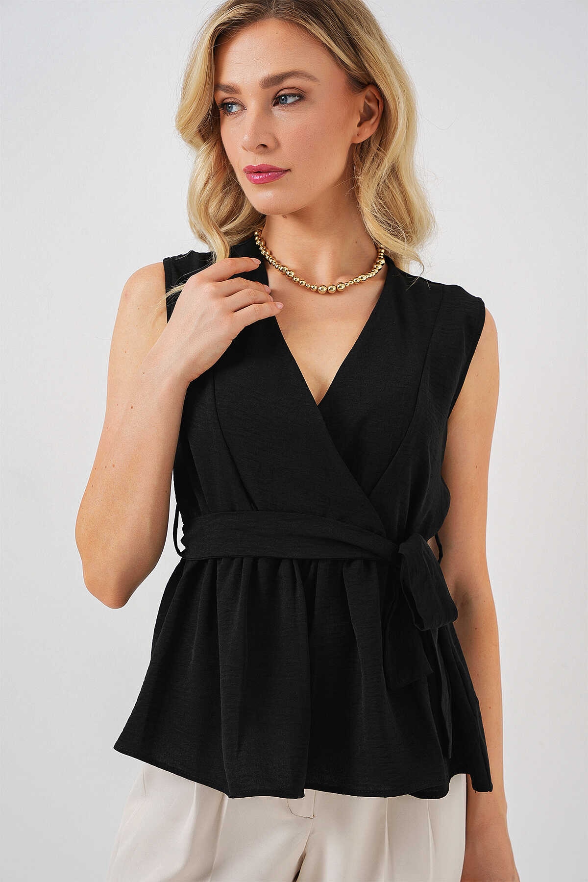 Kadın Kruvaze Yaka Kolsuz Bluz 966 - Siyah - Kombin
