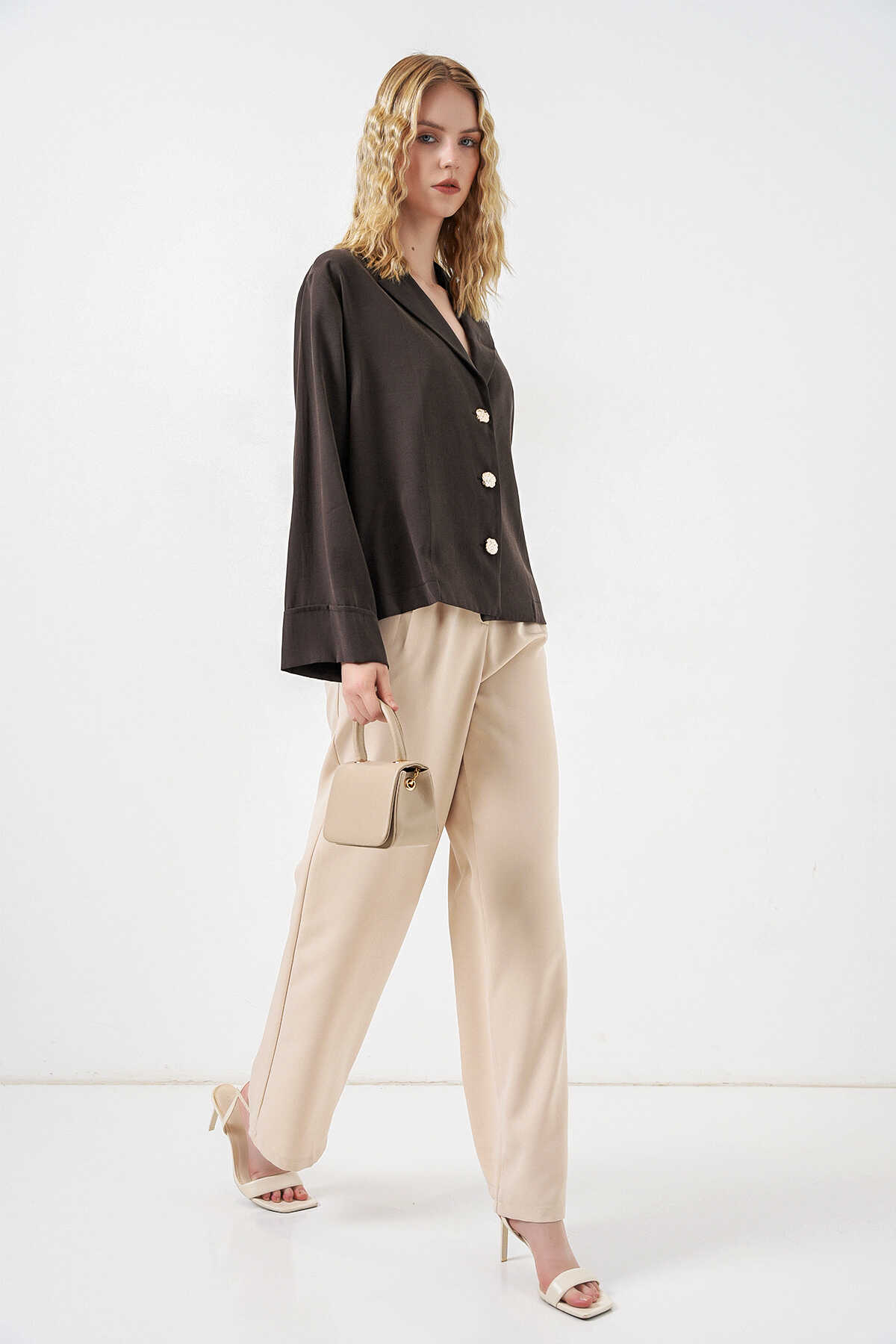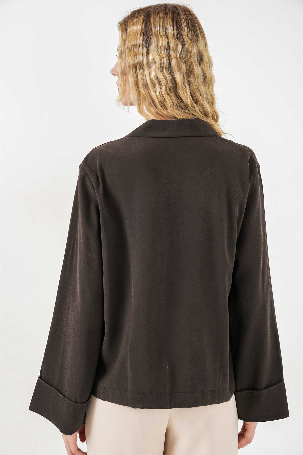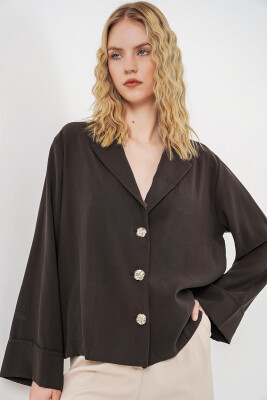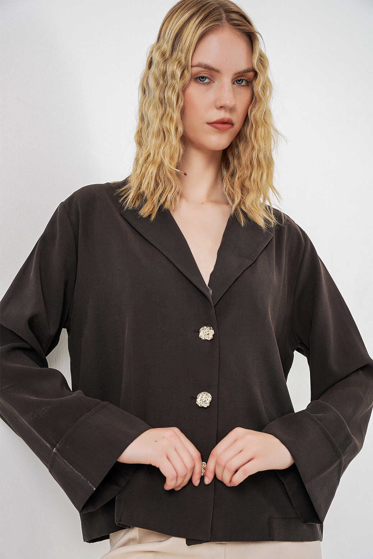 Kadın Kruvaze Yaka Oversize Ceket 0747 - A.Kahve - Kombin