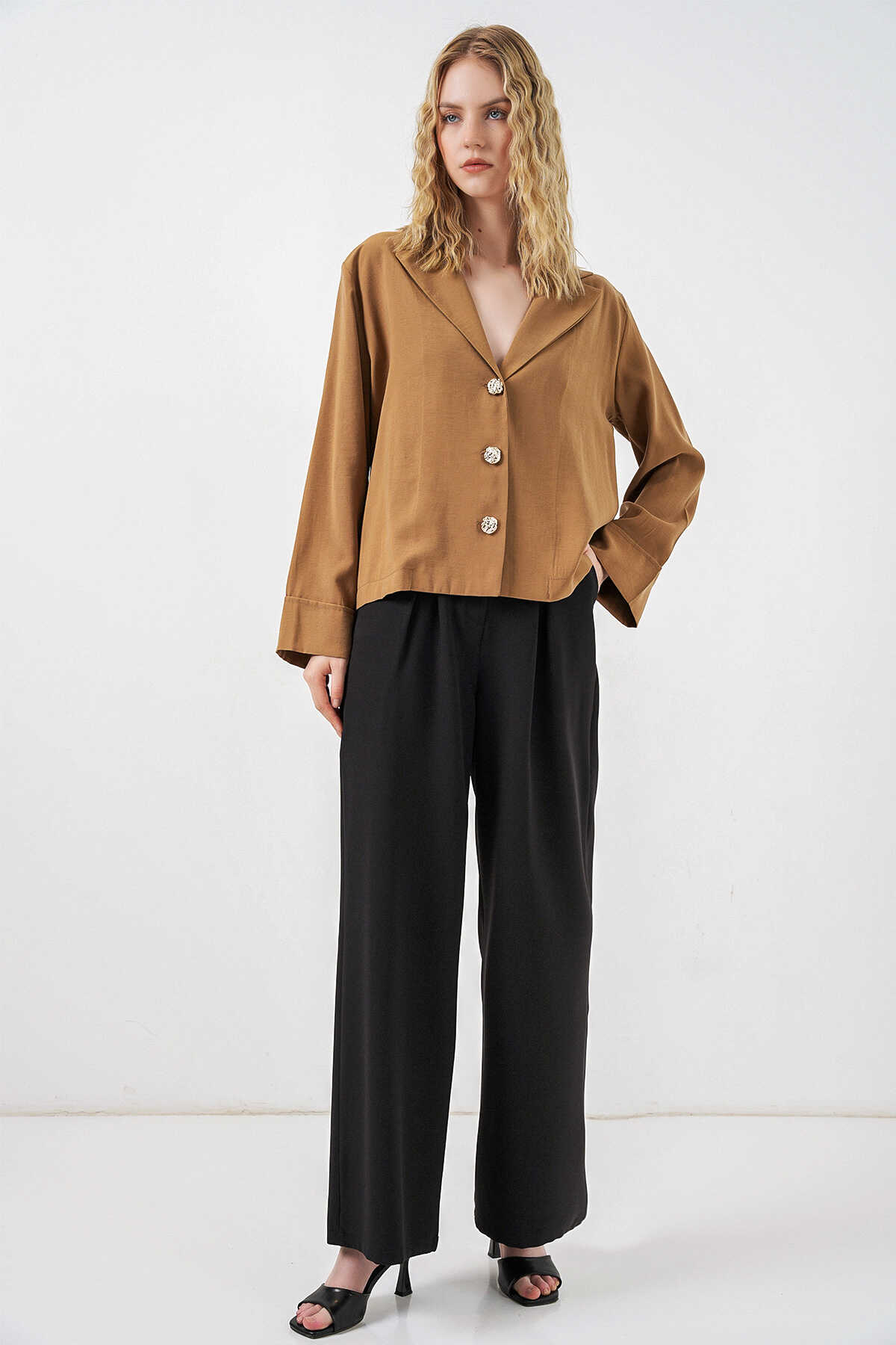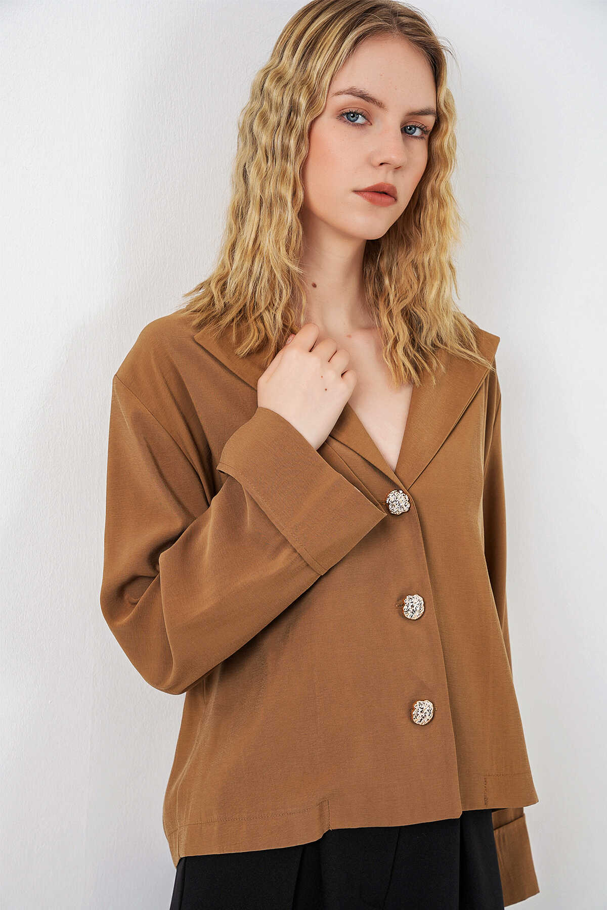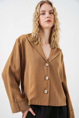 Kadın Kruvaze Yaka Oversize Ceket 0747 - Camel - Kombin