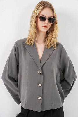 Kadın Kruvaze Yaka Oversize Ceket 0747 - Gri