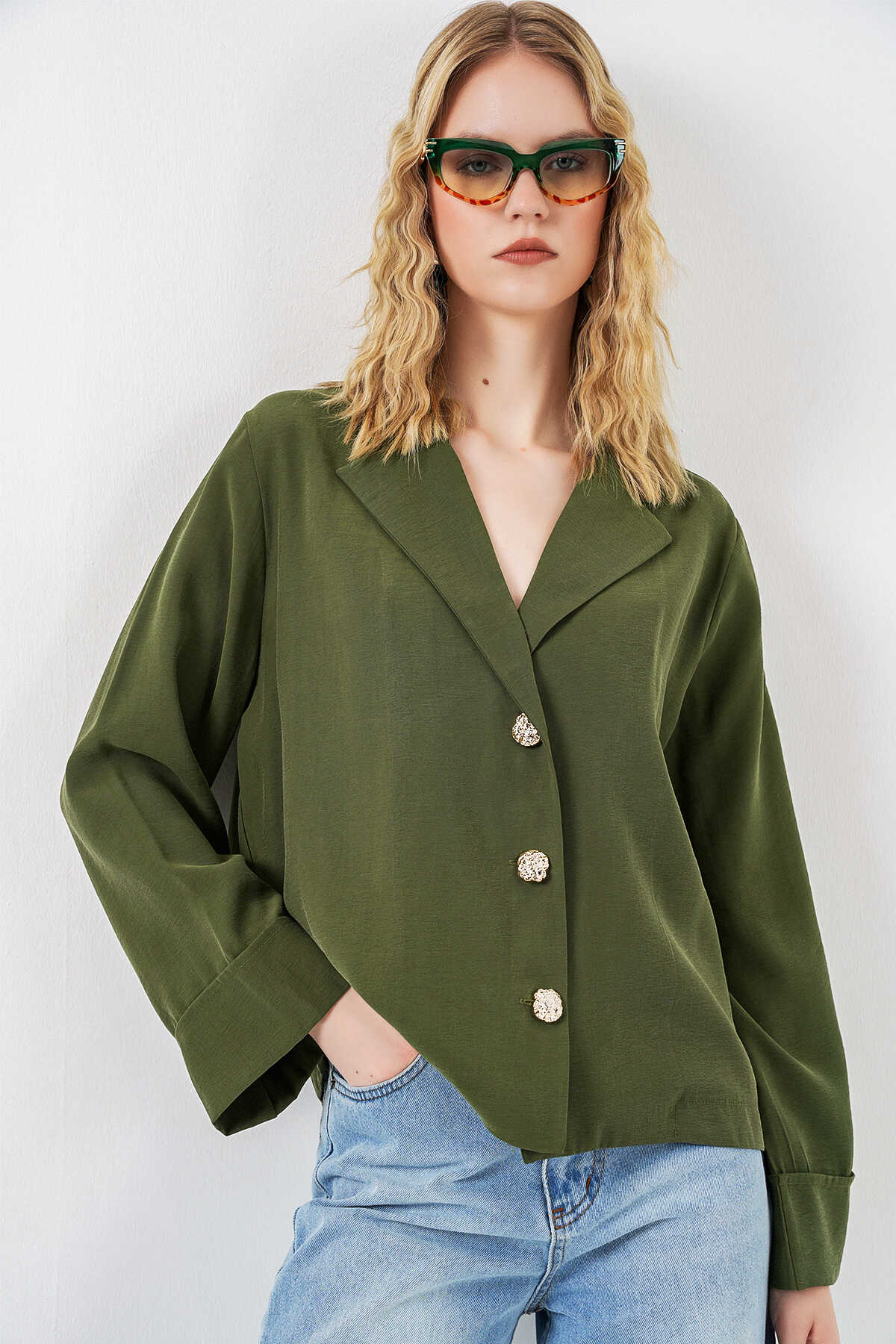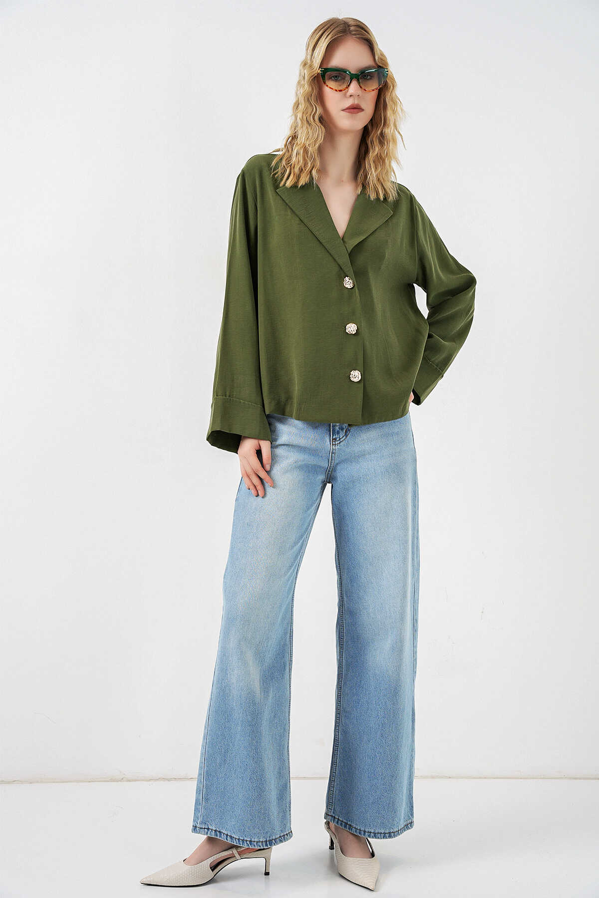 Kadin Kruvaze Yaka Oversize Ceket 0747