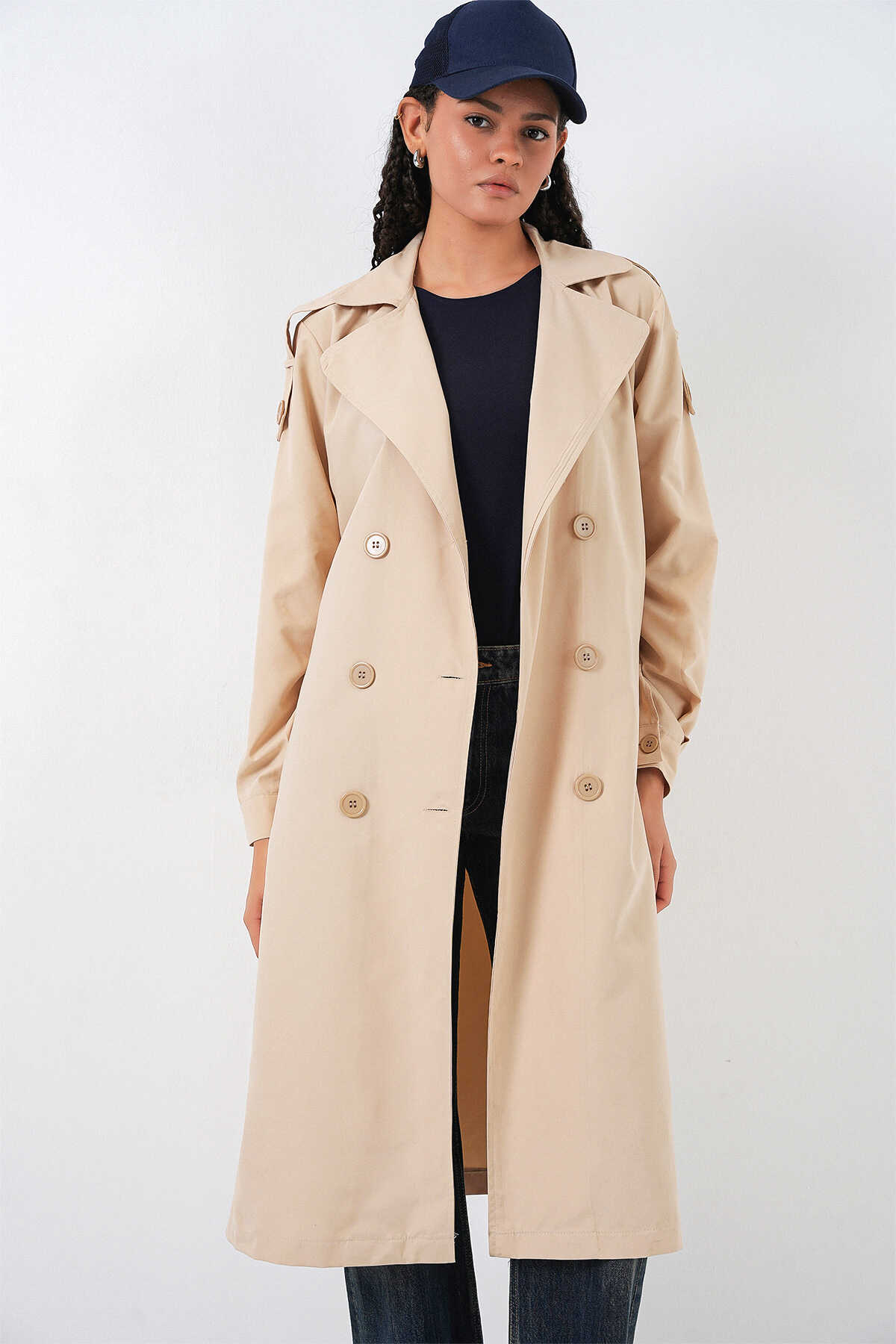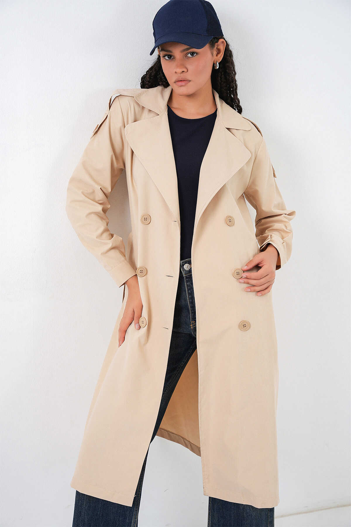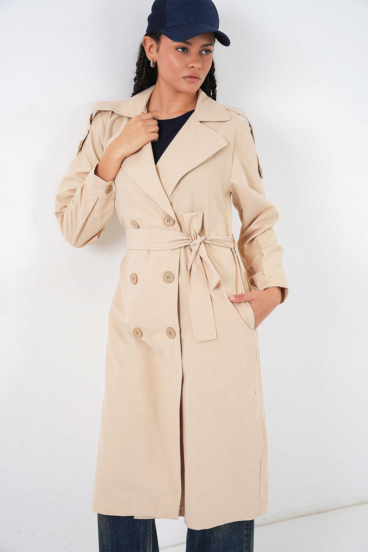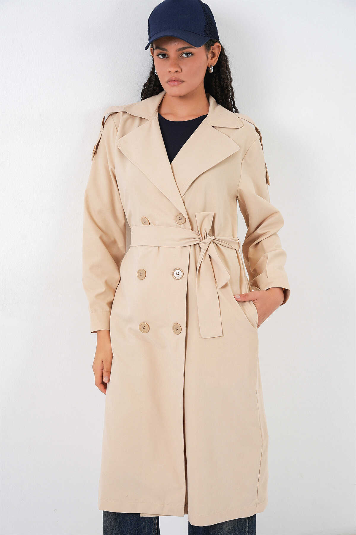 Kadın Kruvaze Yaka Trençkot 5978 - Bej - Kombin