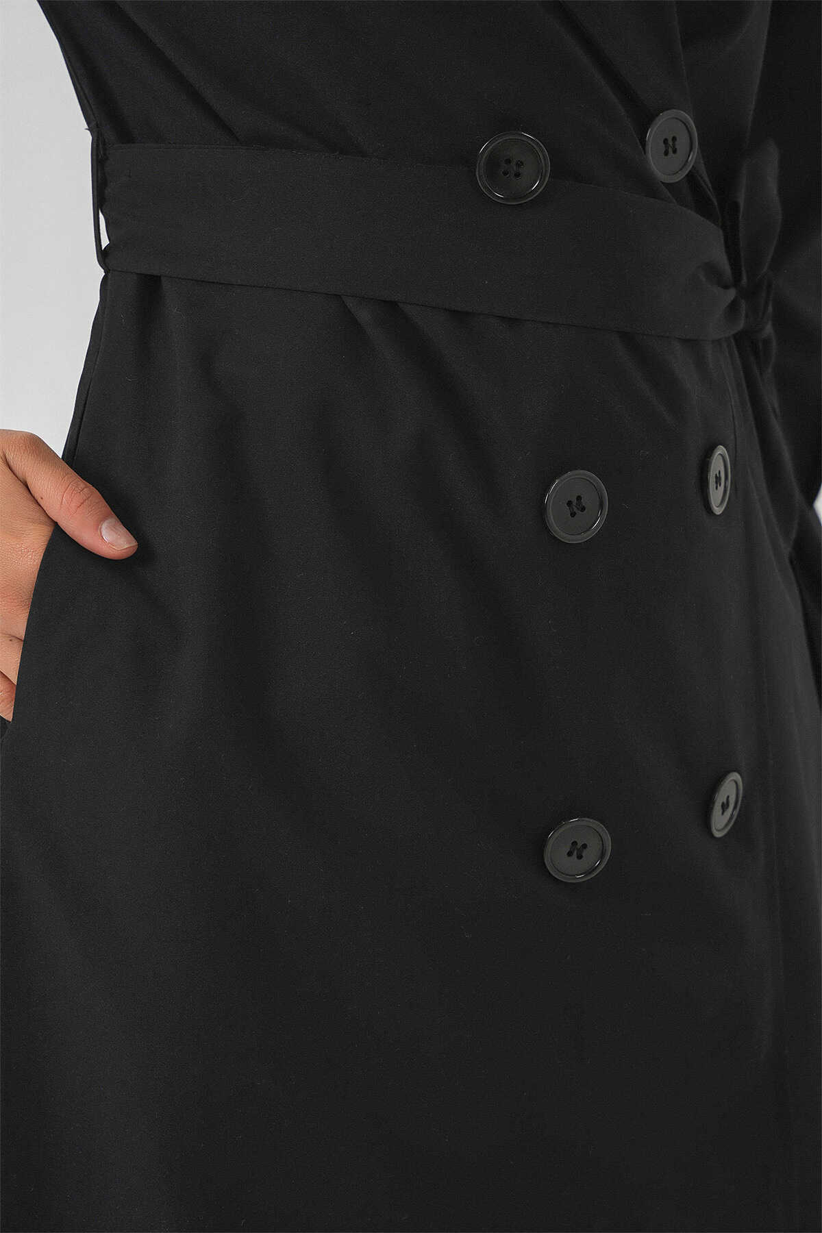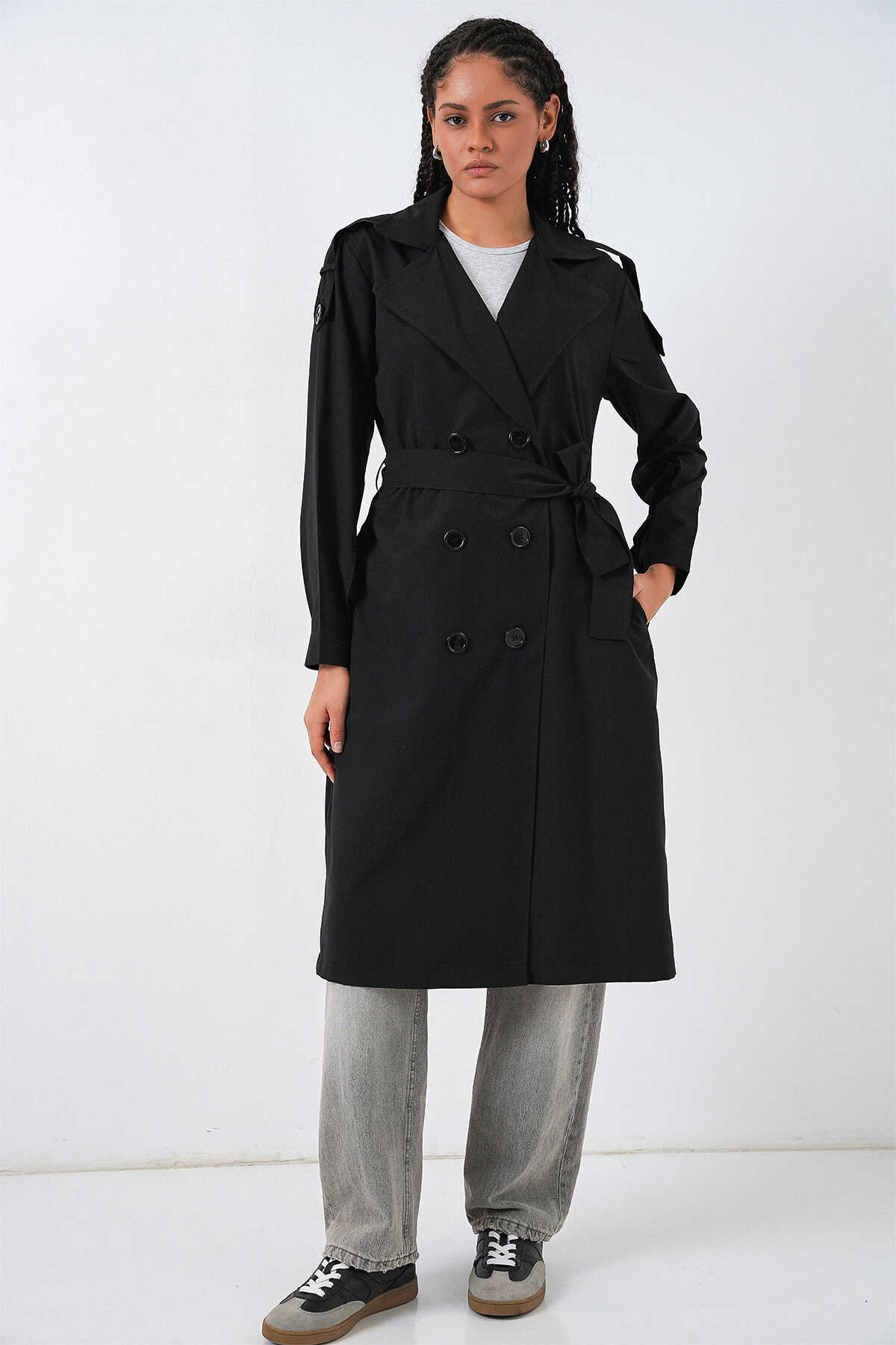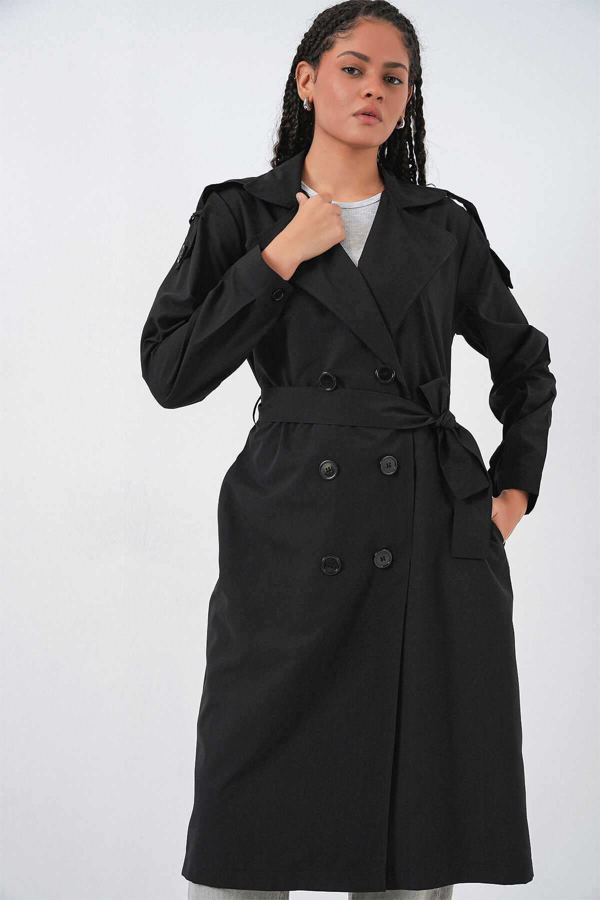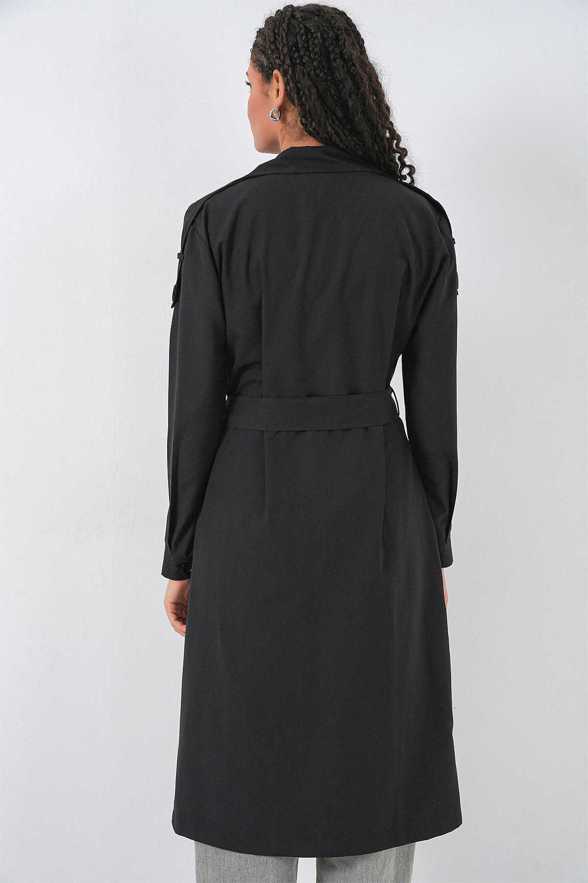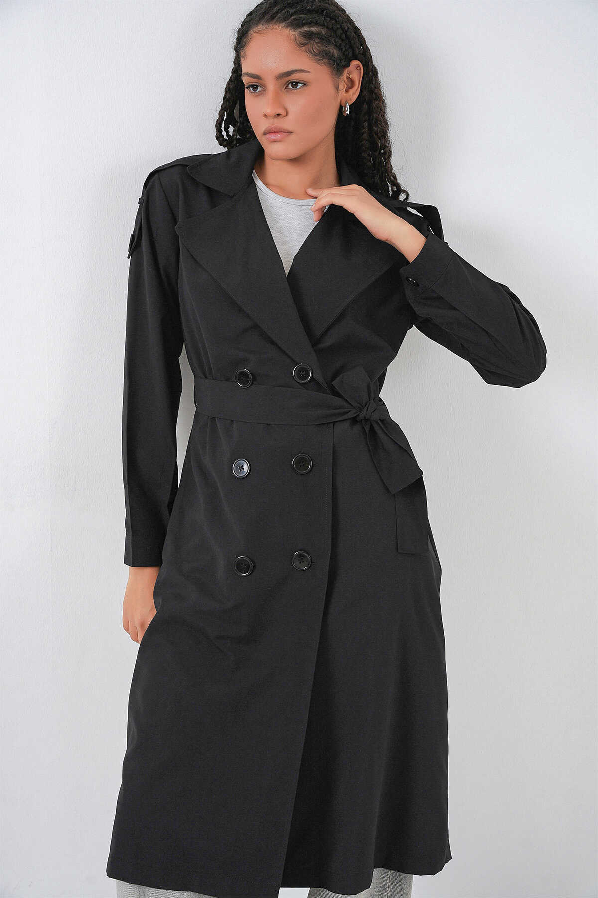 Kadın Kruvaze Yaka Trençkot 5978 - Siyah - Kombin