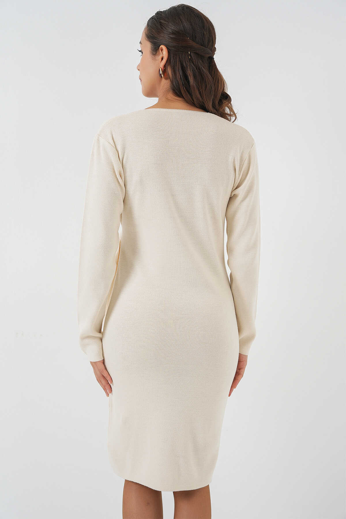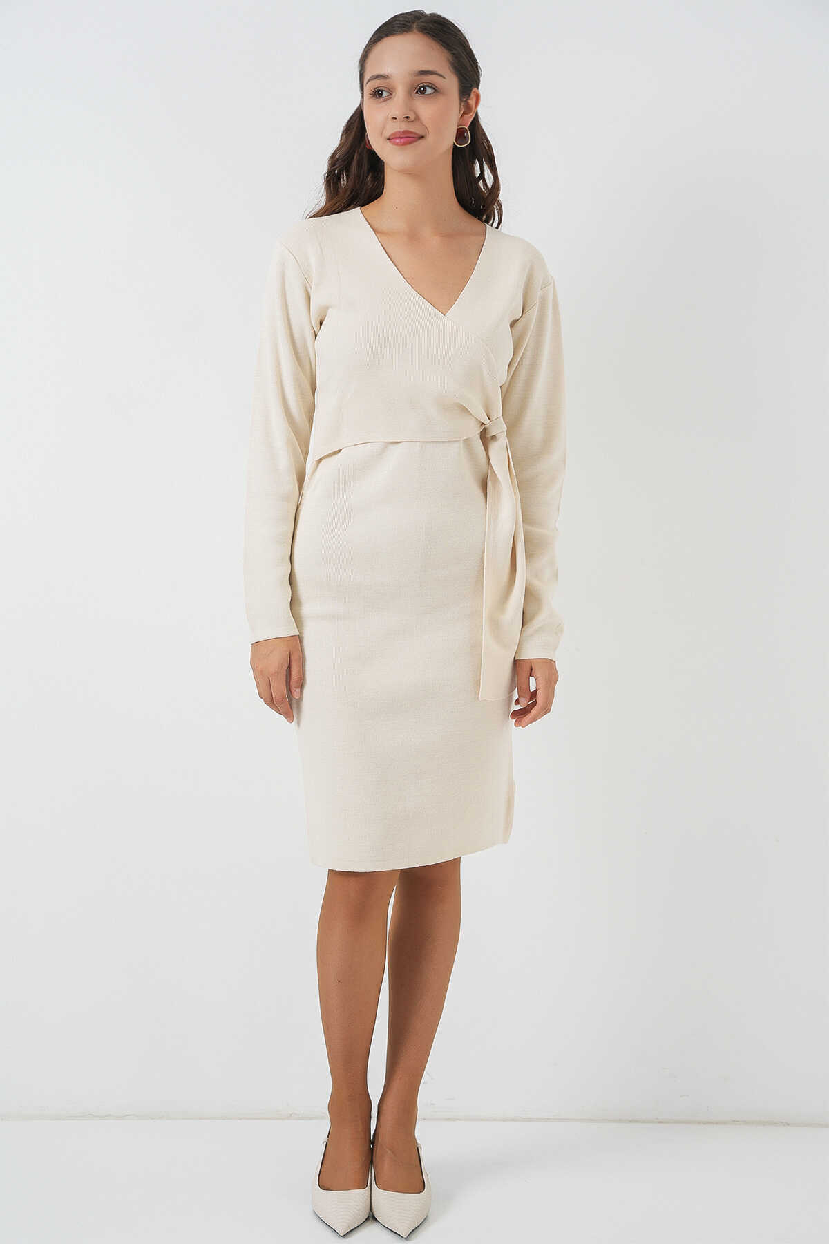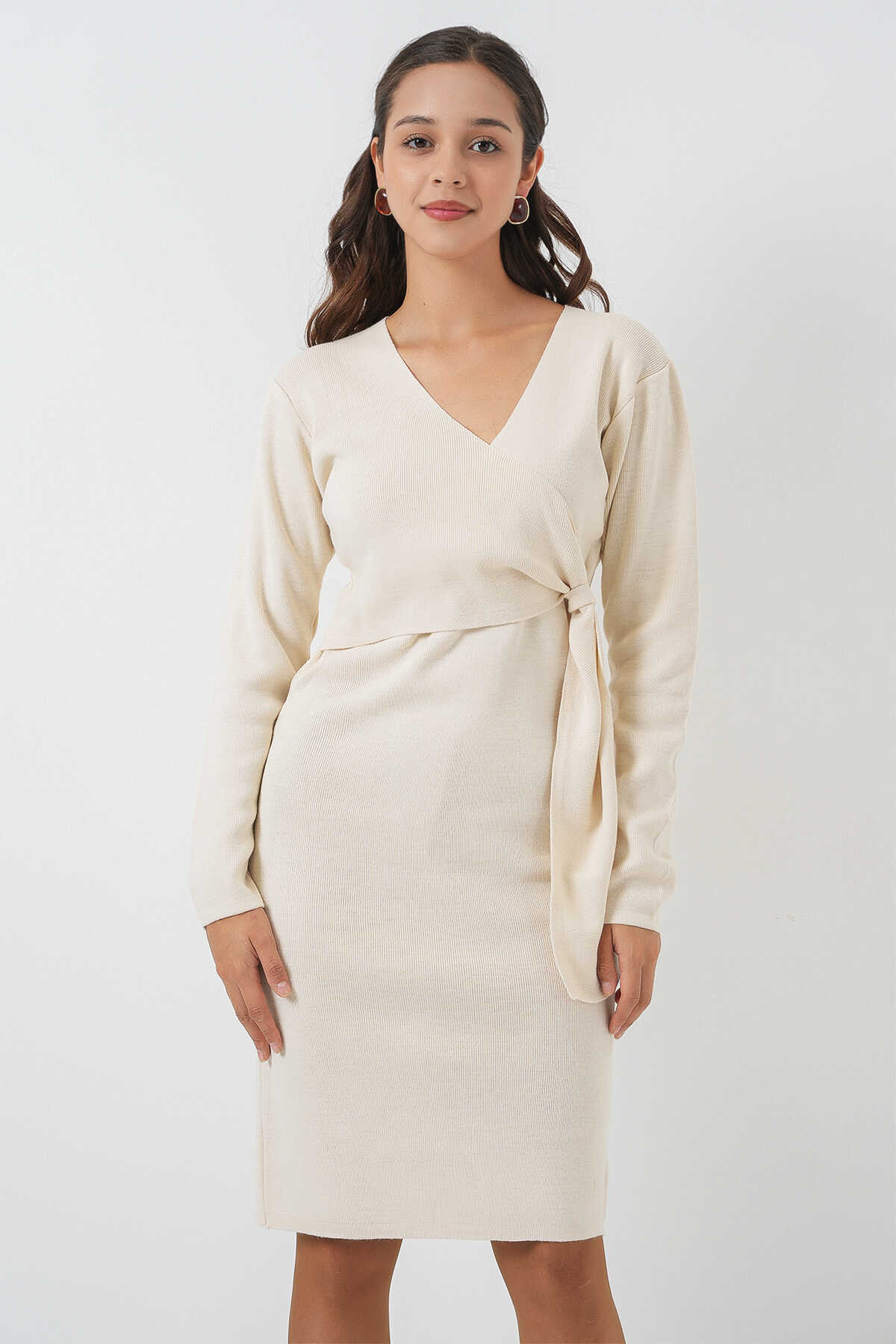 Kadin Kruvaze Yaka Triko Elbise