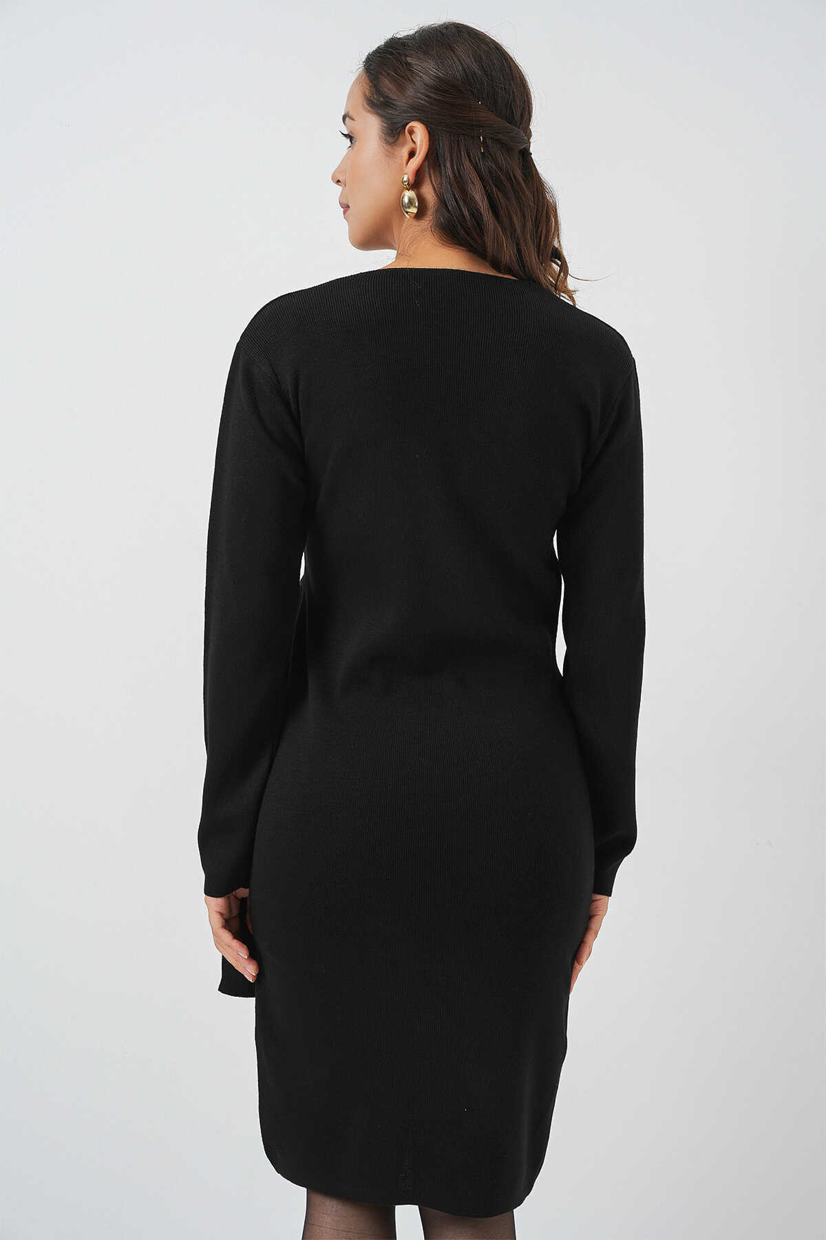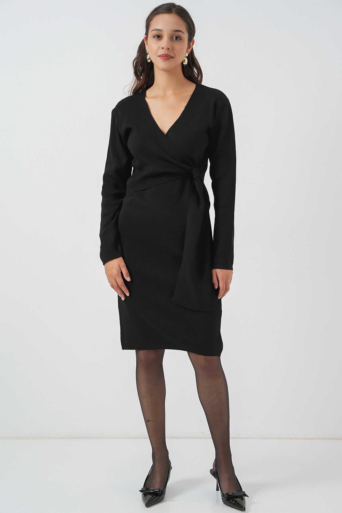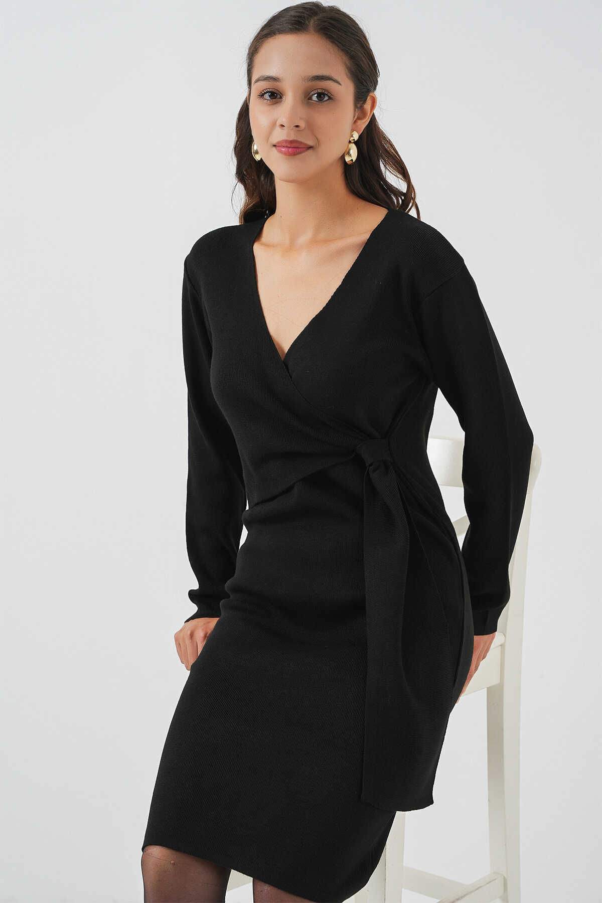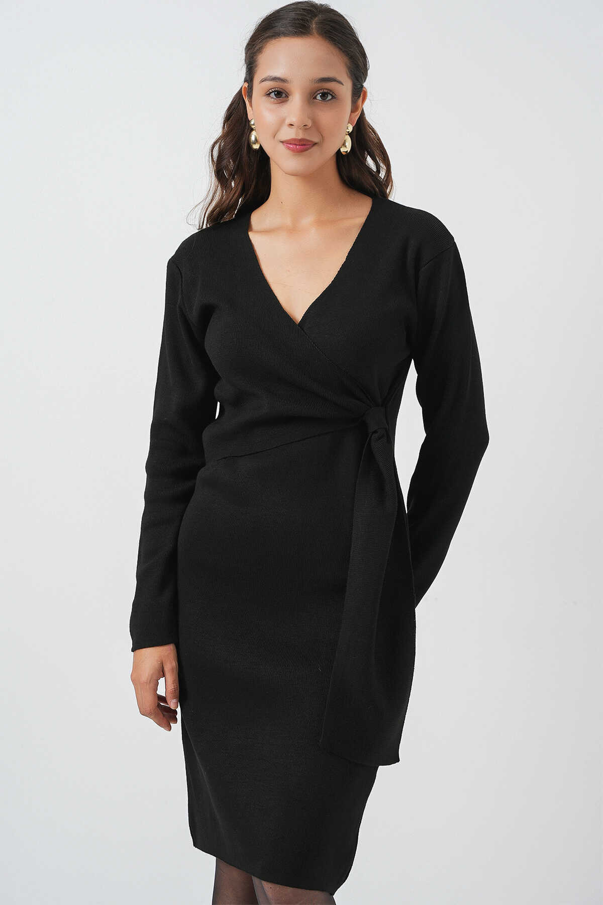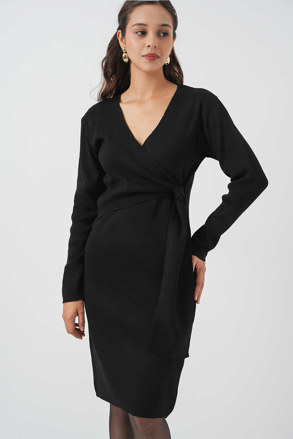 Kadin Kruvaze Yaka Triko Elbise