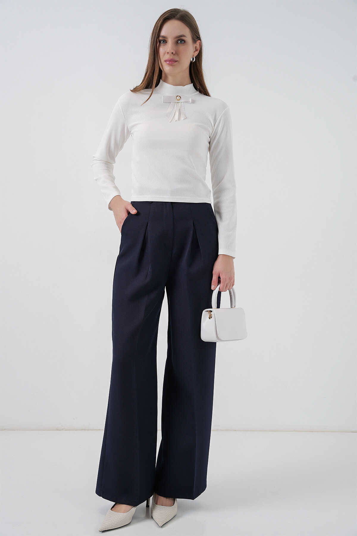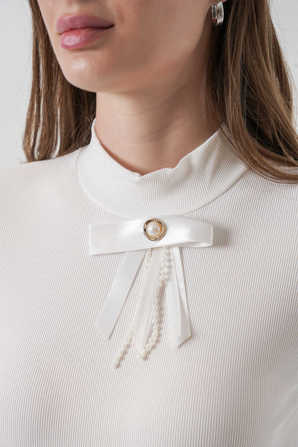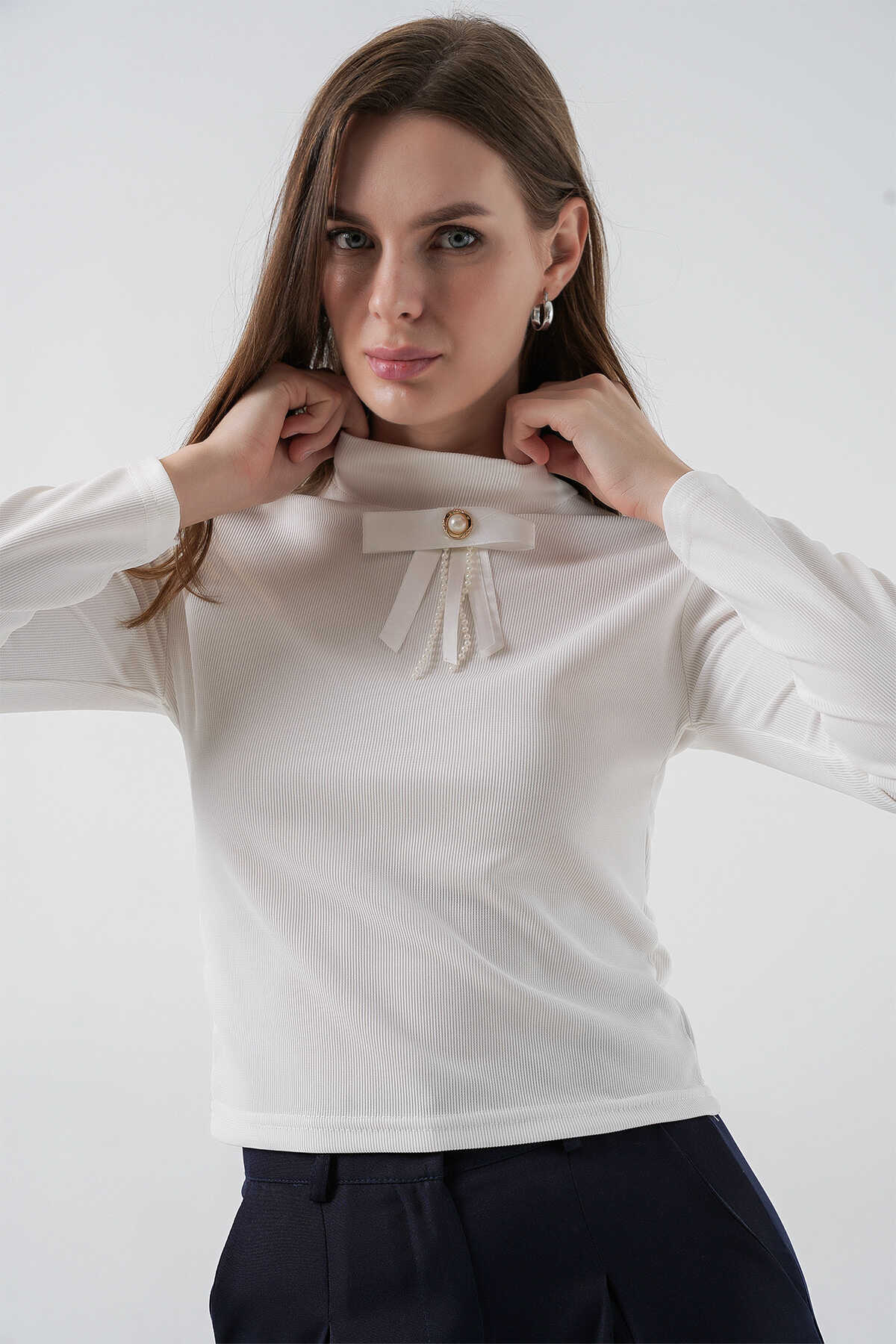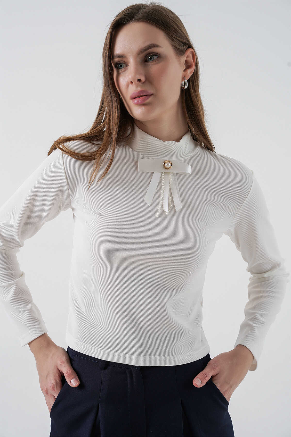 Kadın Kurdale Detay Uzun Kollu Bluz 977 - Beyaz - Kombin