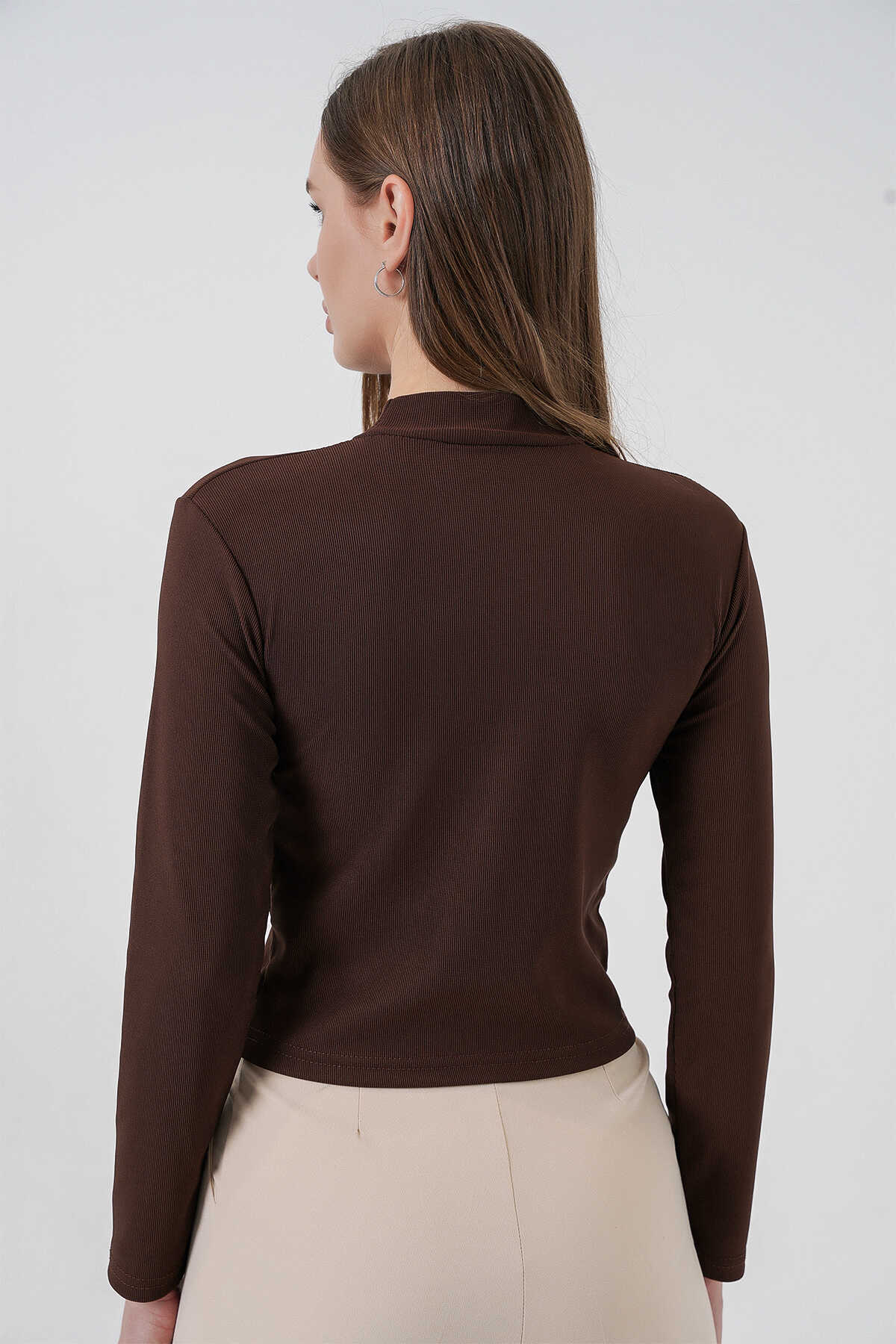 Kadın Kurdale Detay Uzun Kollu Bluz 977 - Kahverengi - Kombin