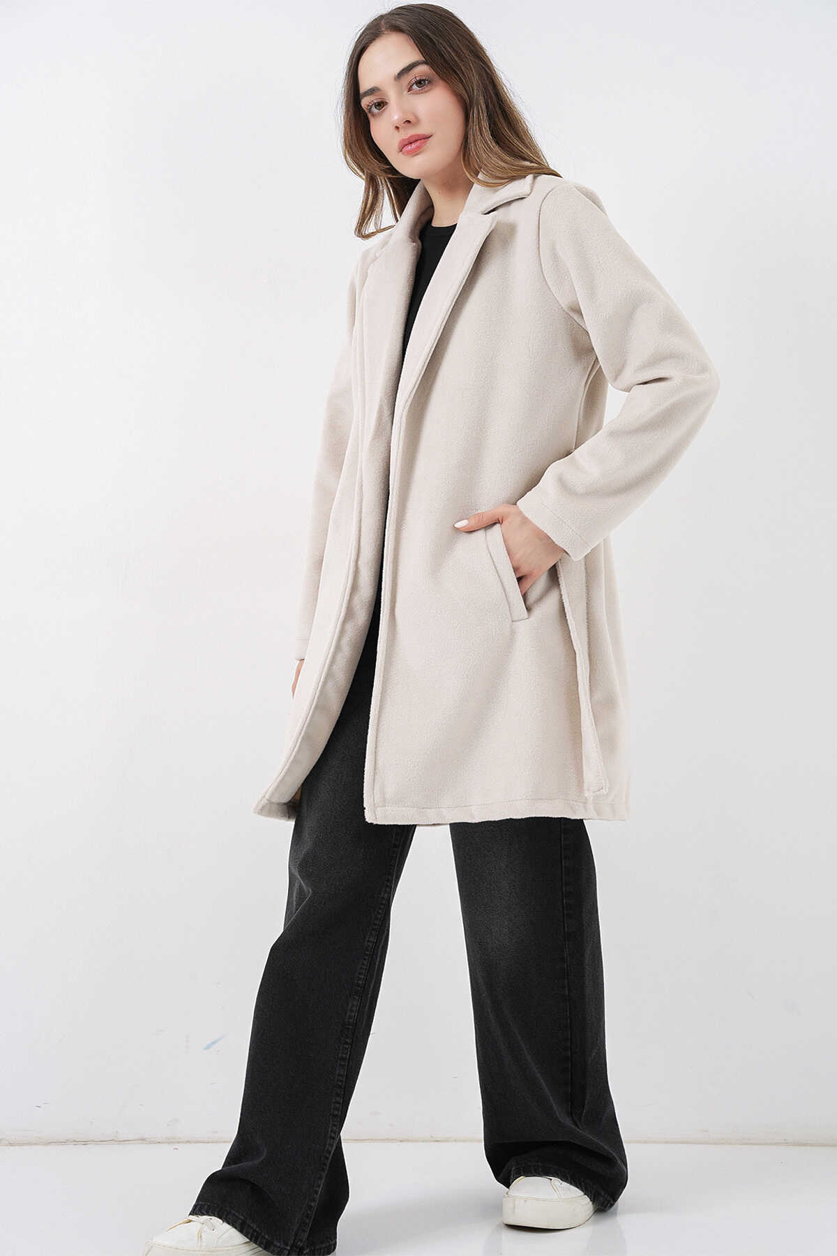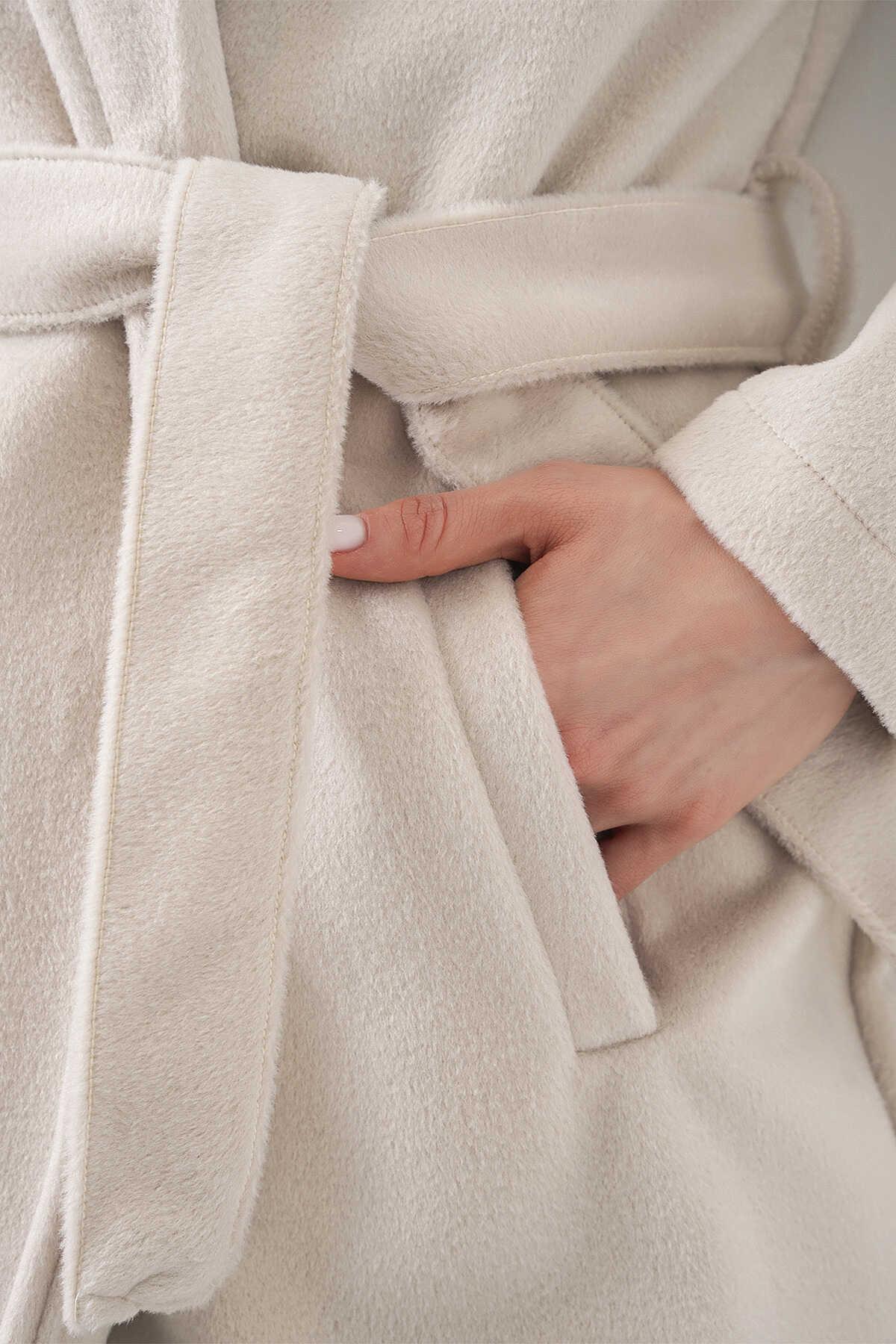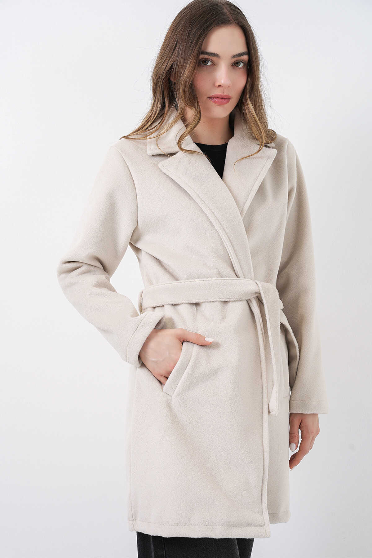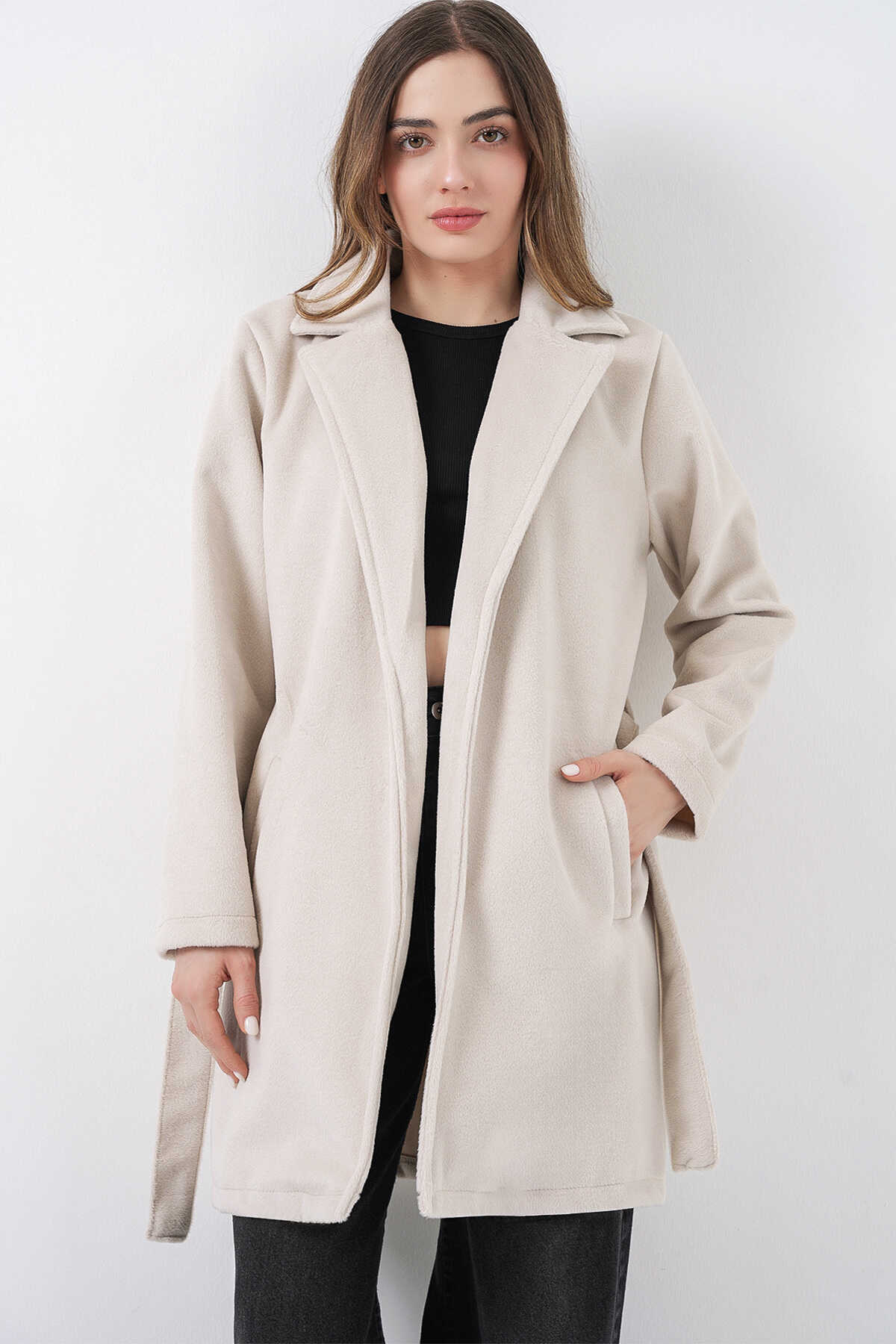 Kadın Kuşaklı Kaban 9171 - Ekru - Kombin