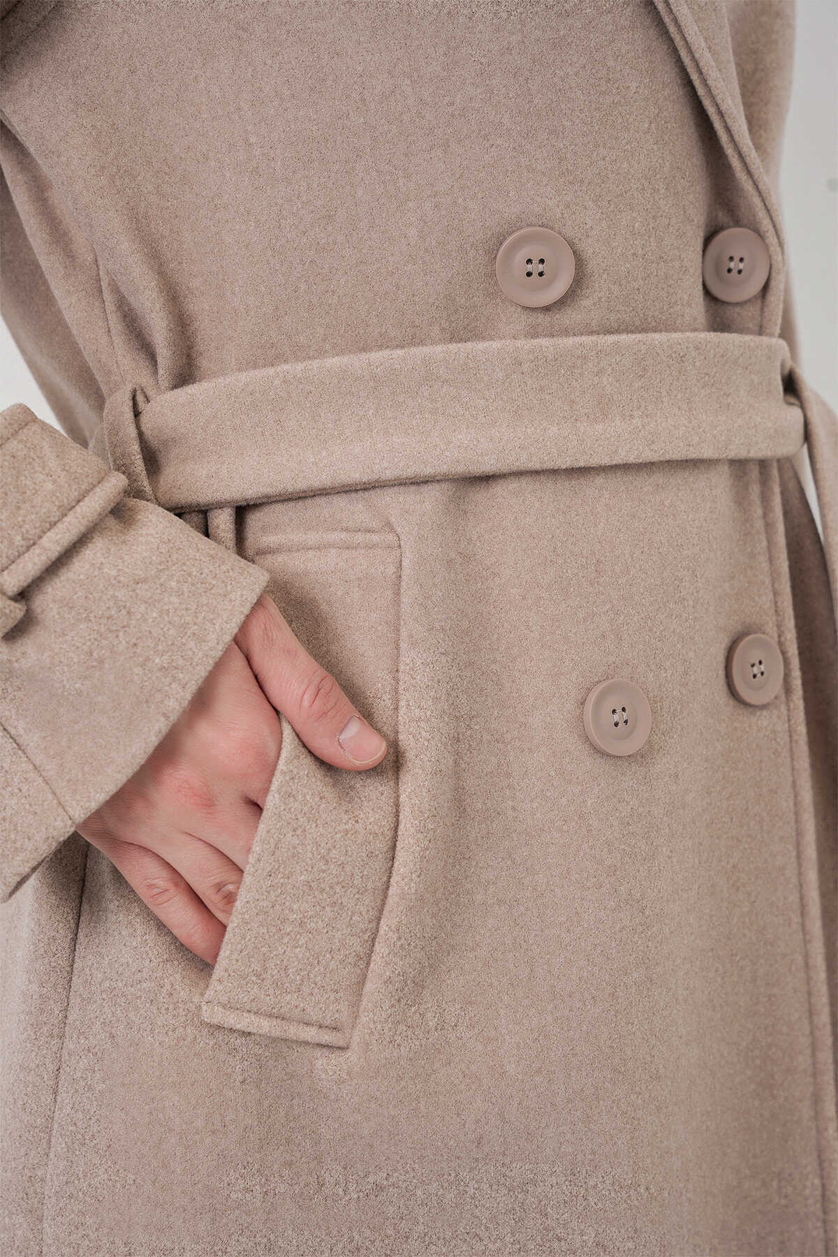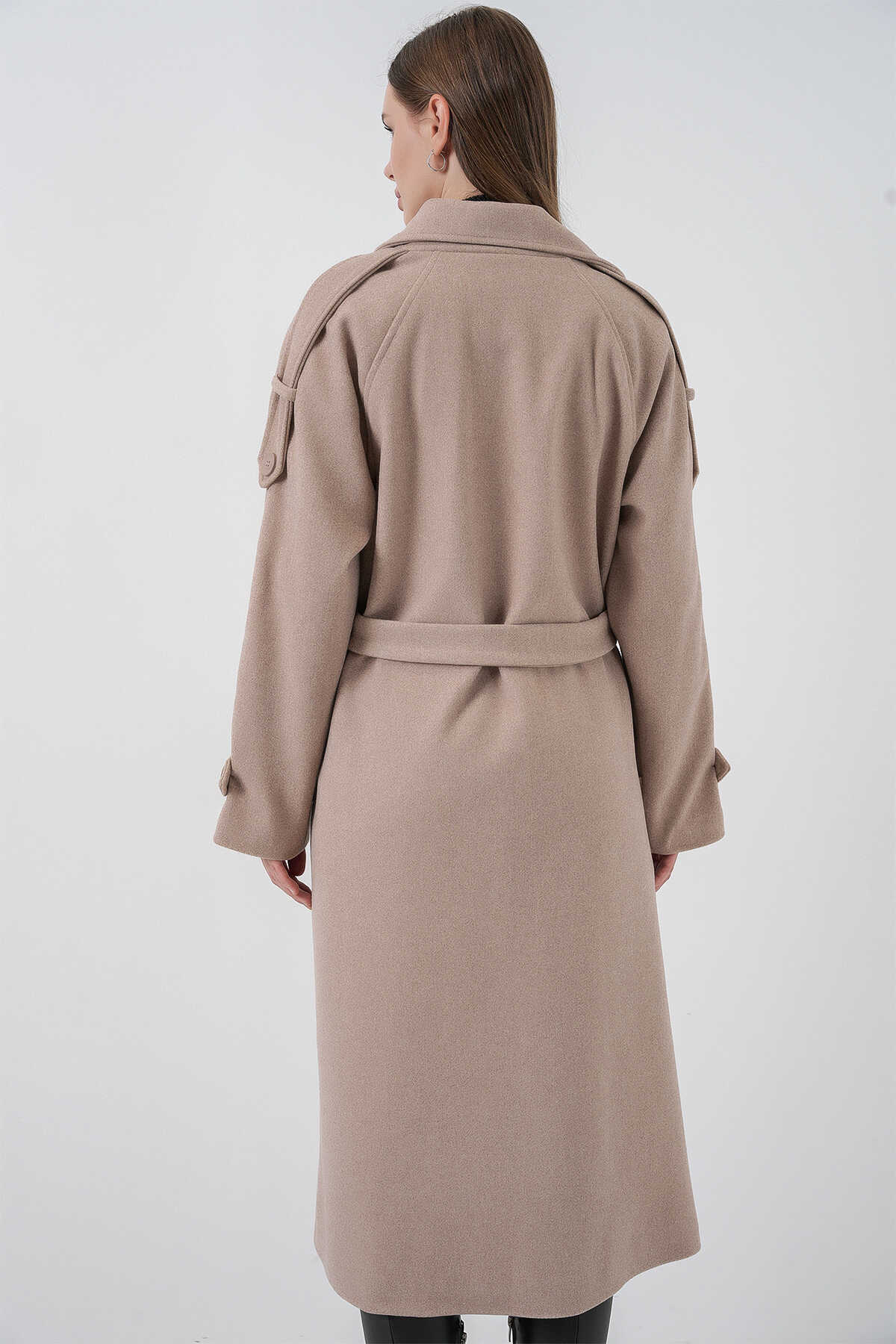 Kadın Kuşaklı Kaşe Kaban 9161 - Bej