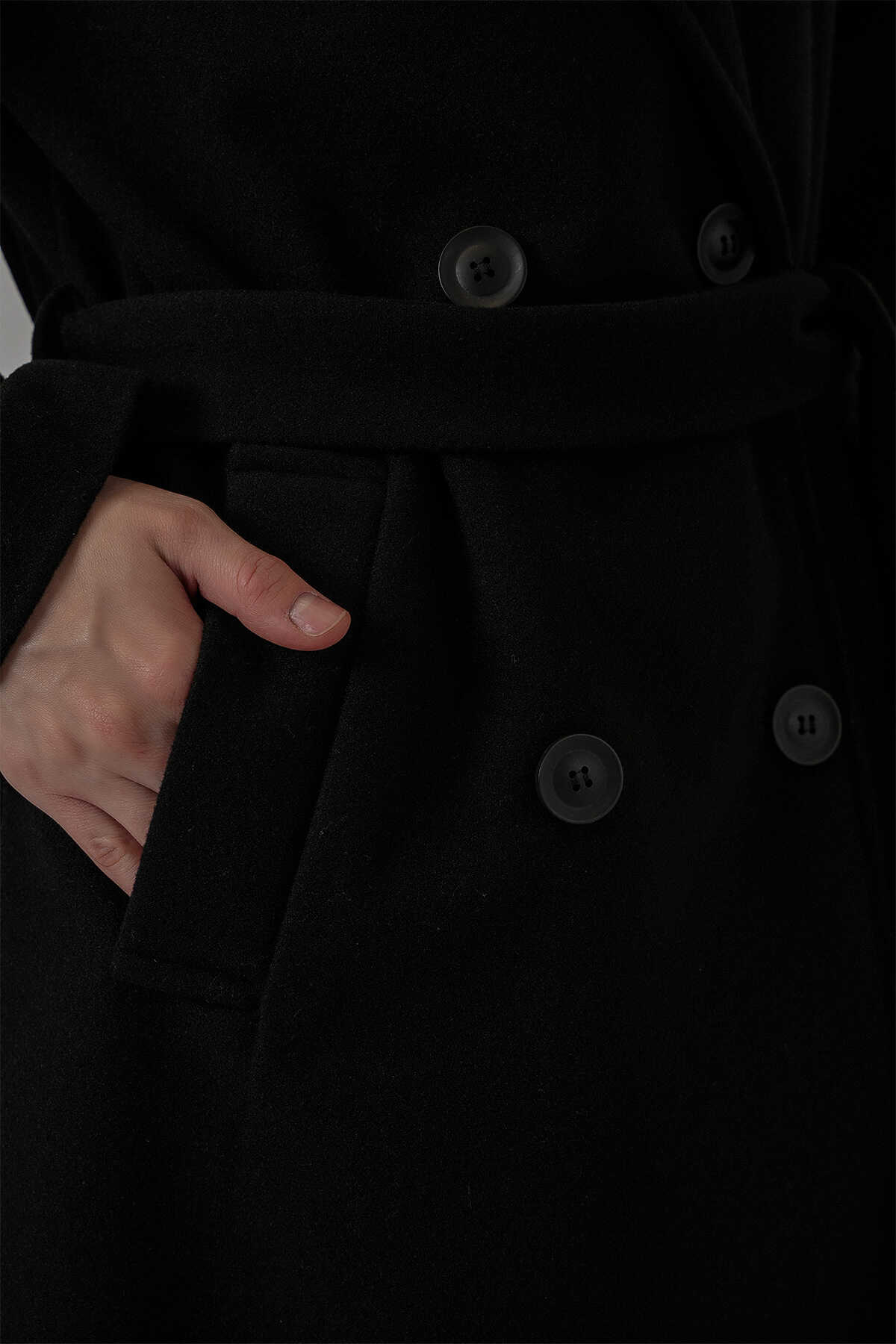 Kadın Kuşaklı Kaşe Kaban 9161 - Siyah