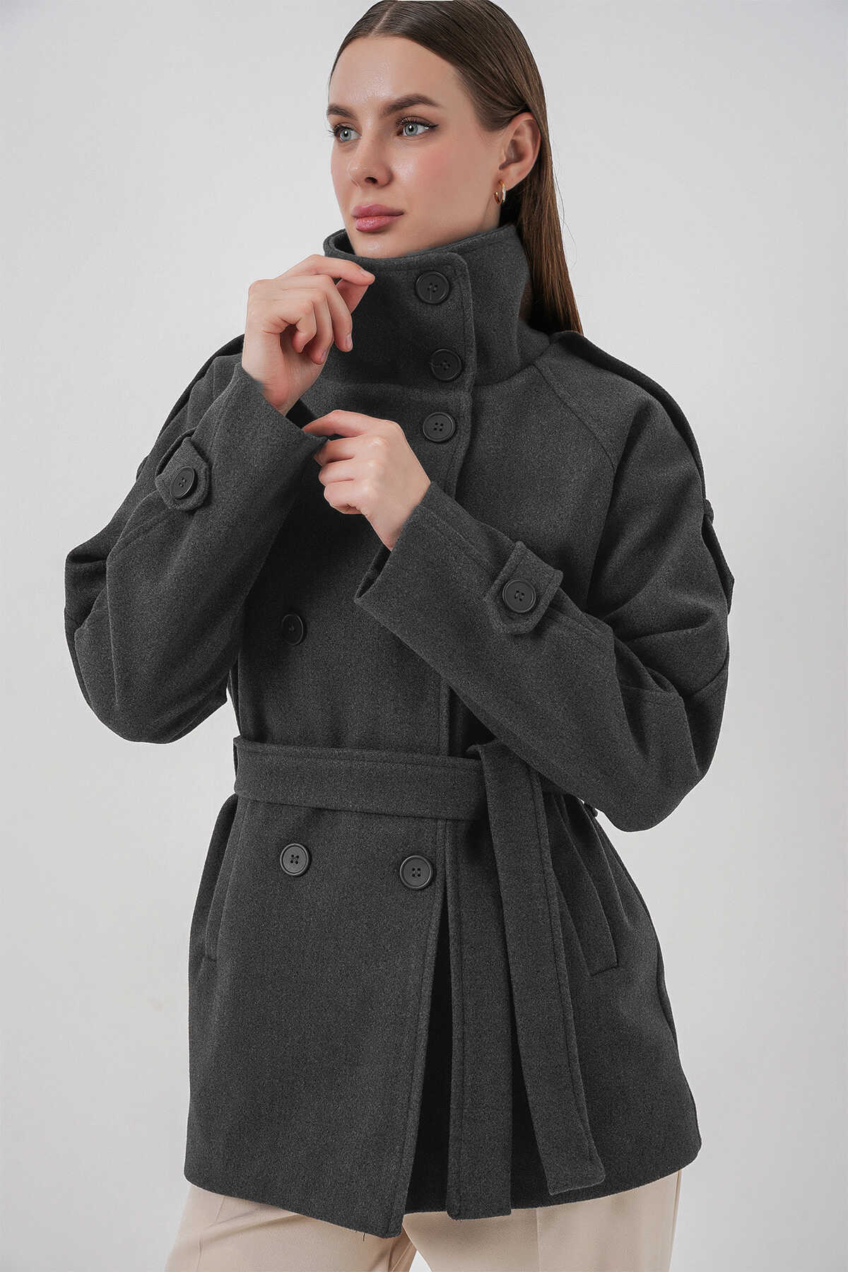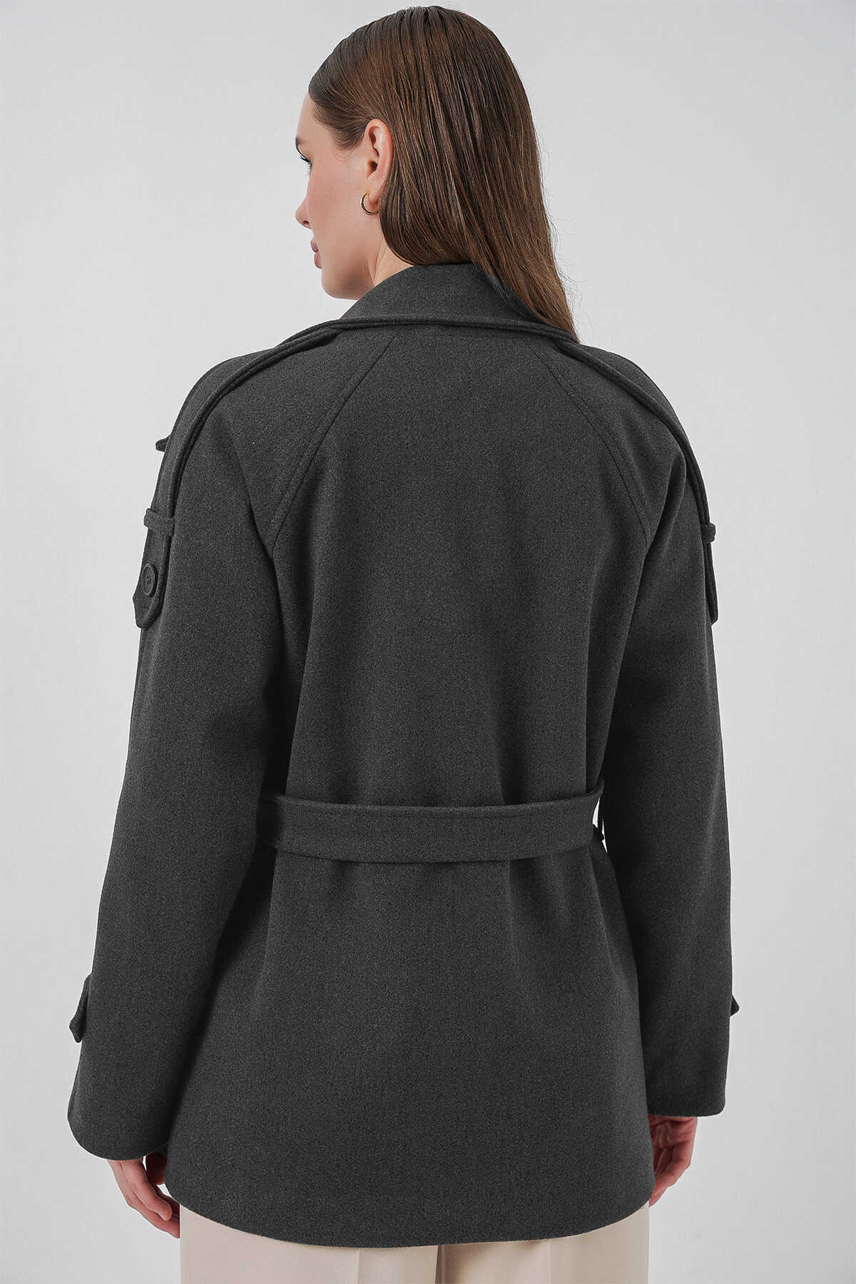 Kadın Kuşaklı Kaşe Kaban 9162 - Antrasit
