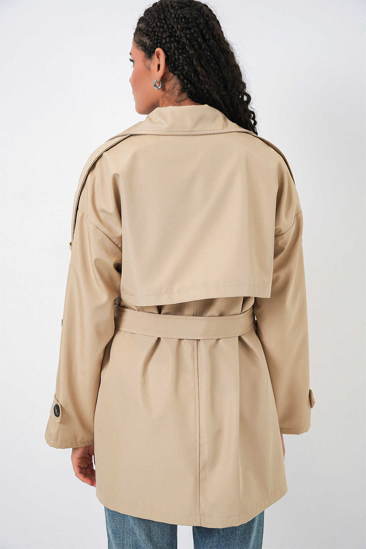 Kadın Kuşaklı Kısa Trençkot 5974 - Bej - Kombin