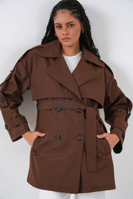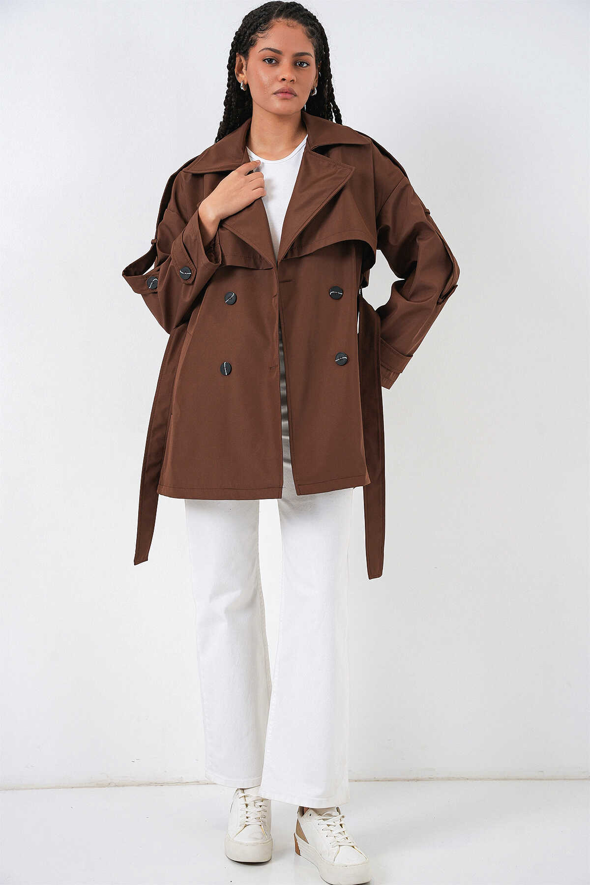 % 100 PolyesterKadin Kusakli Kisa Trençkot 5974