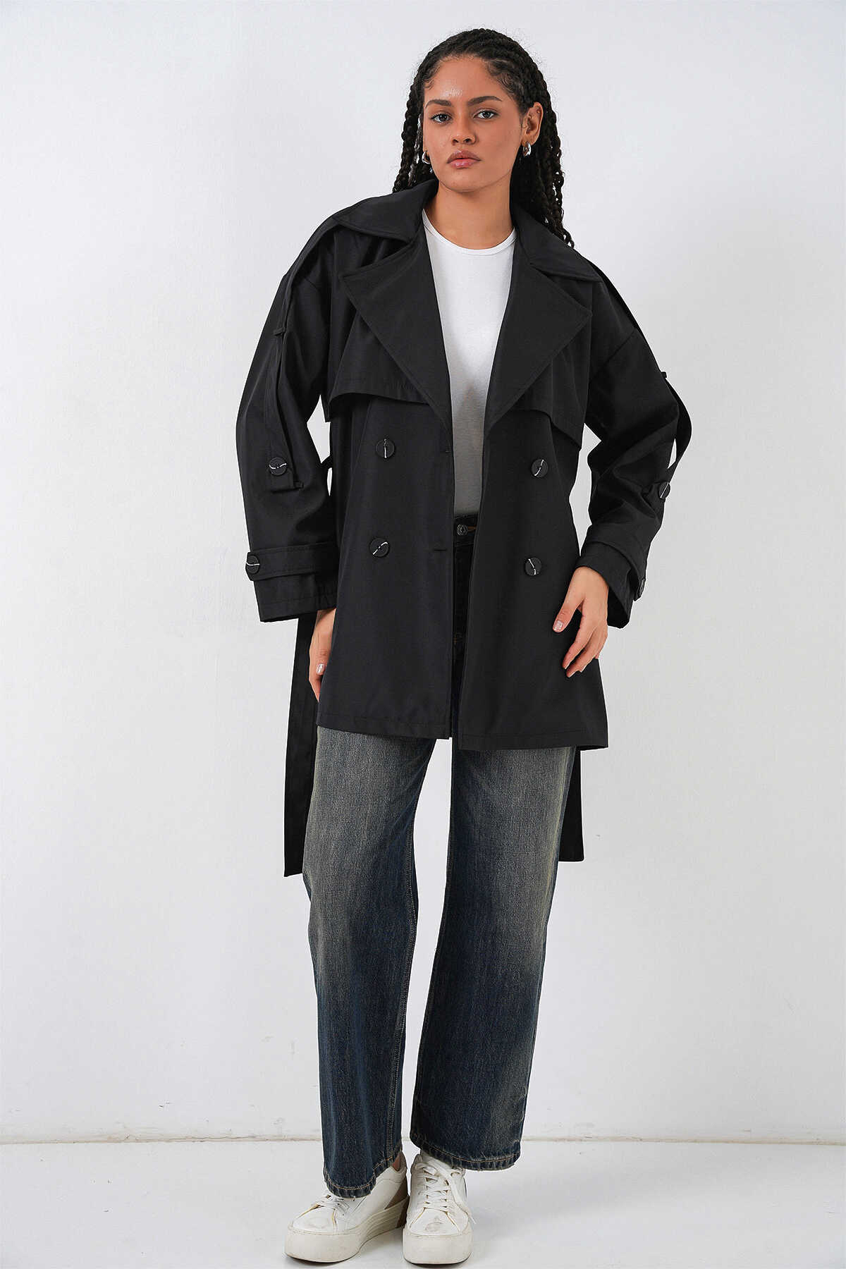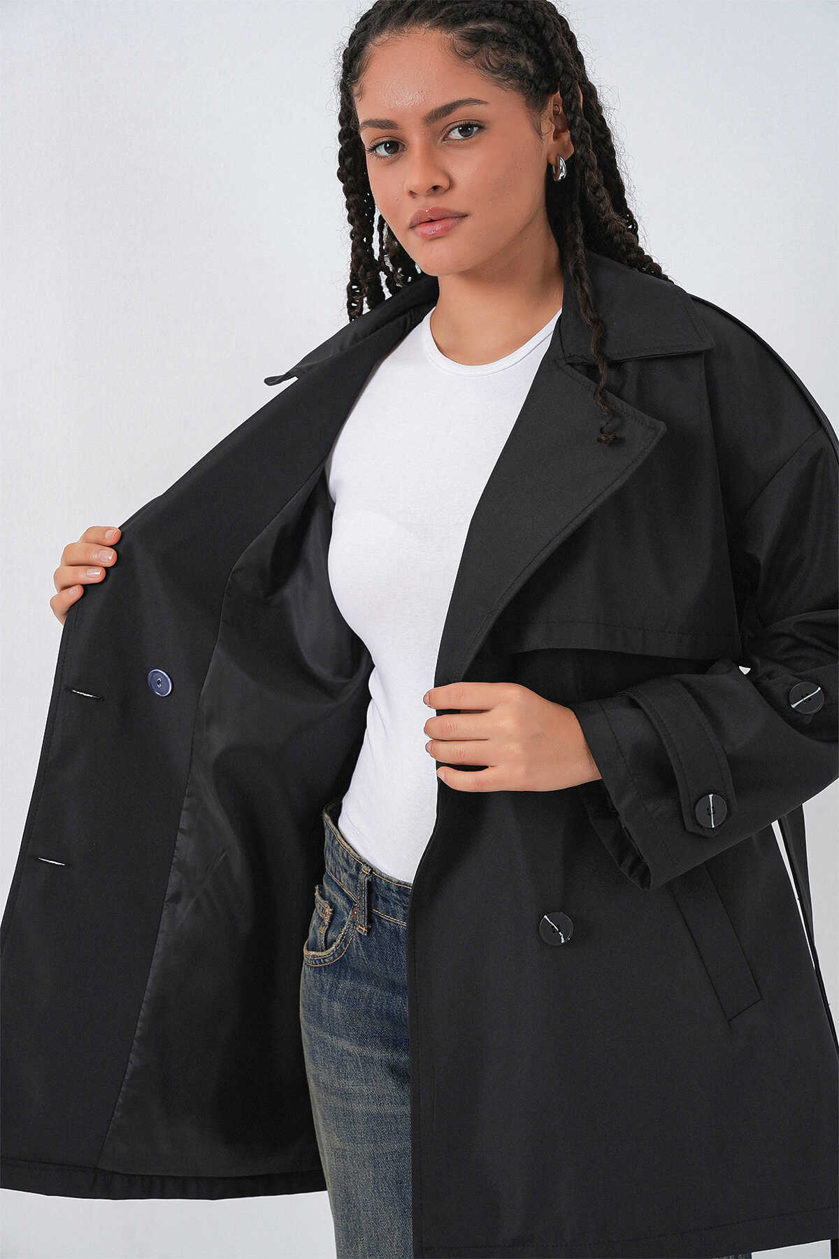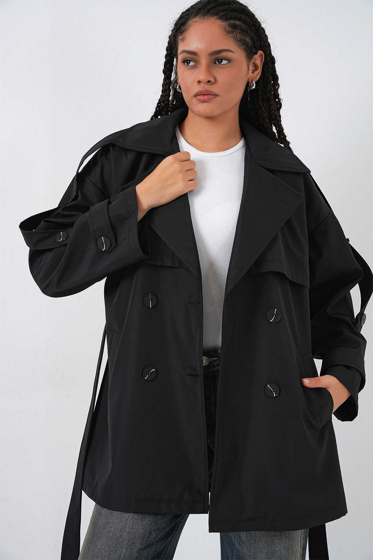 % 100 PolyesterKadin Kusakli Kisa Trençkot 5974