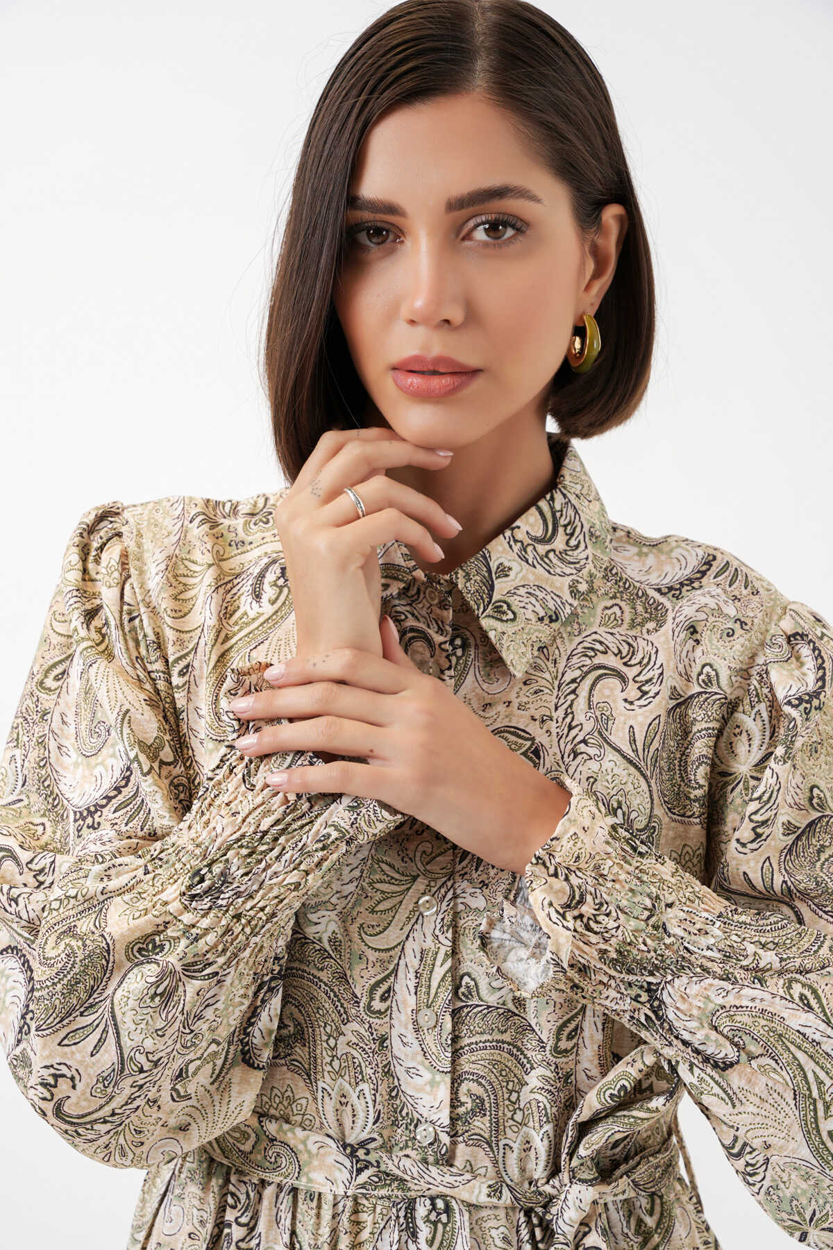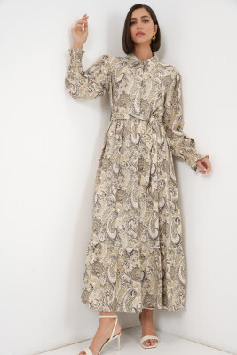Kadın Kuşaklı Tesettür Elbise 2589 - Bej - Kombin
