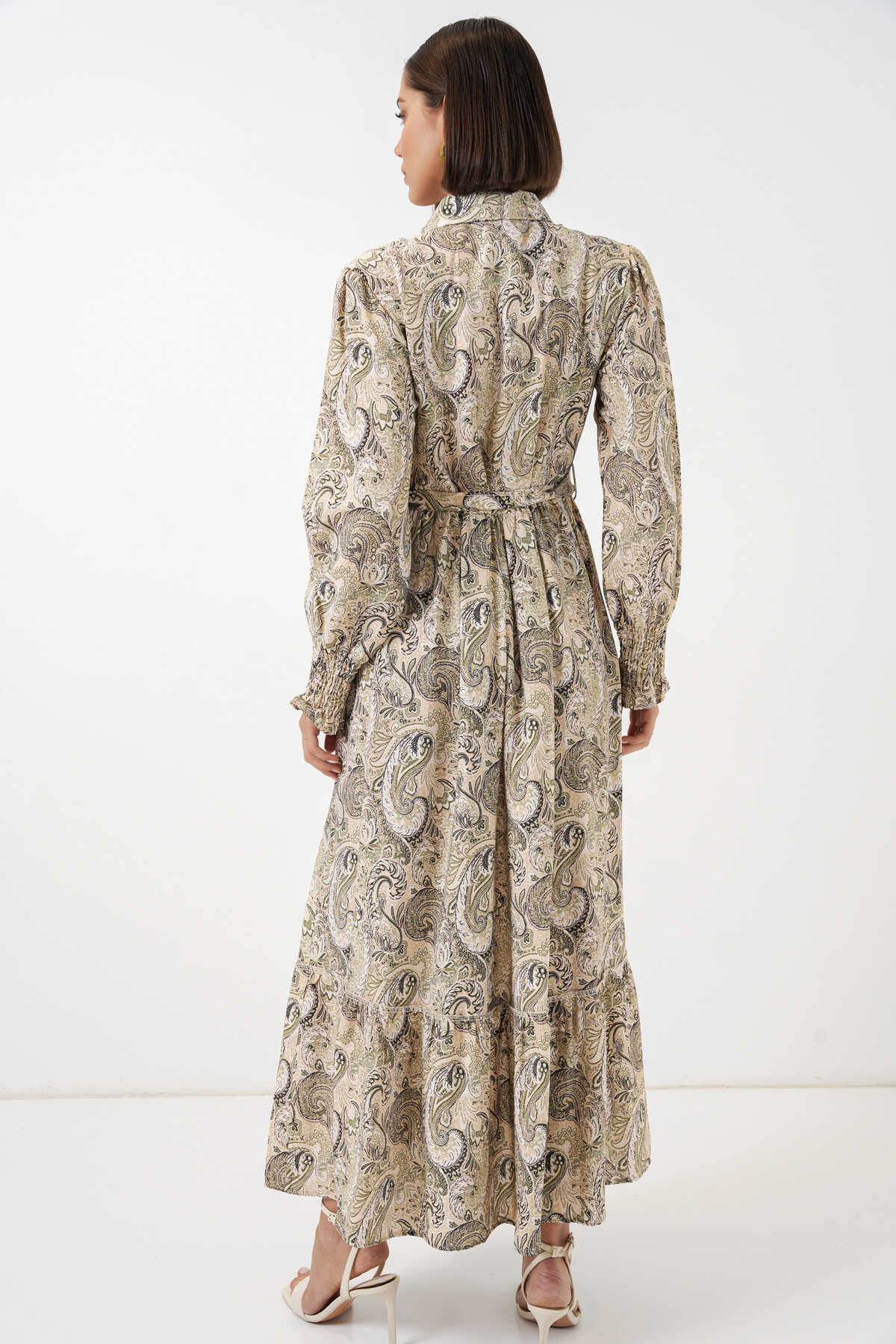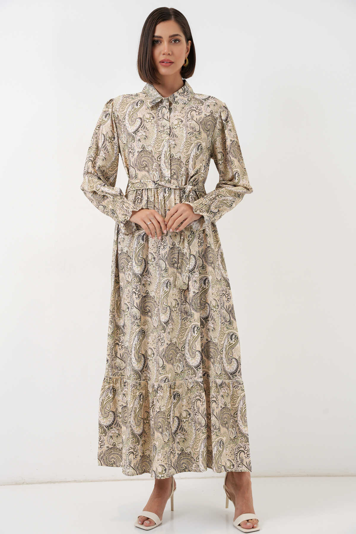 Kadın Kuşaklı Tesettür Elbise 2589 - Bej