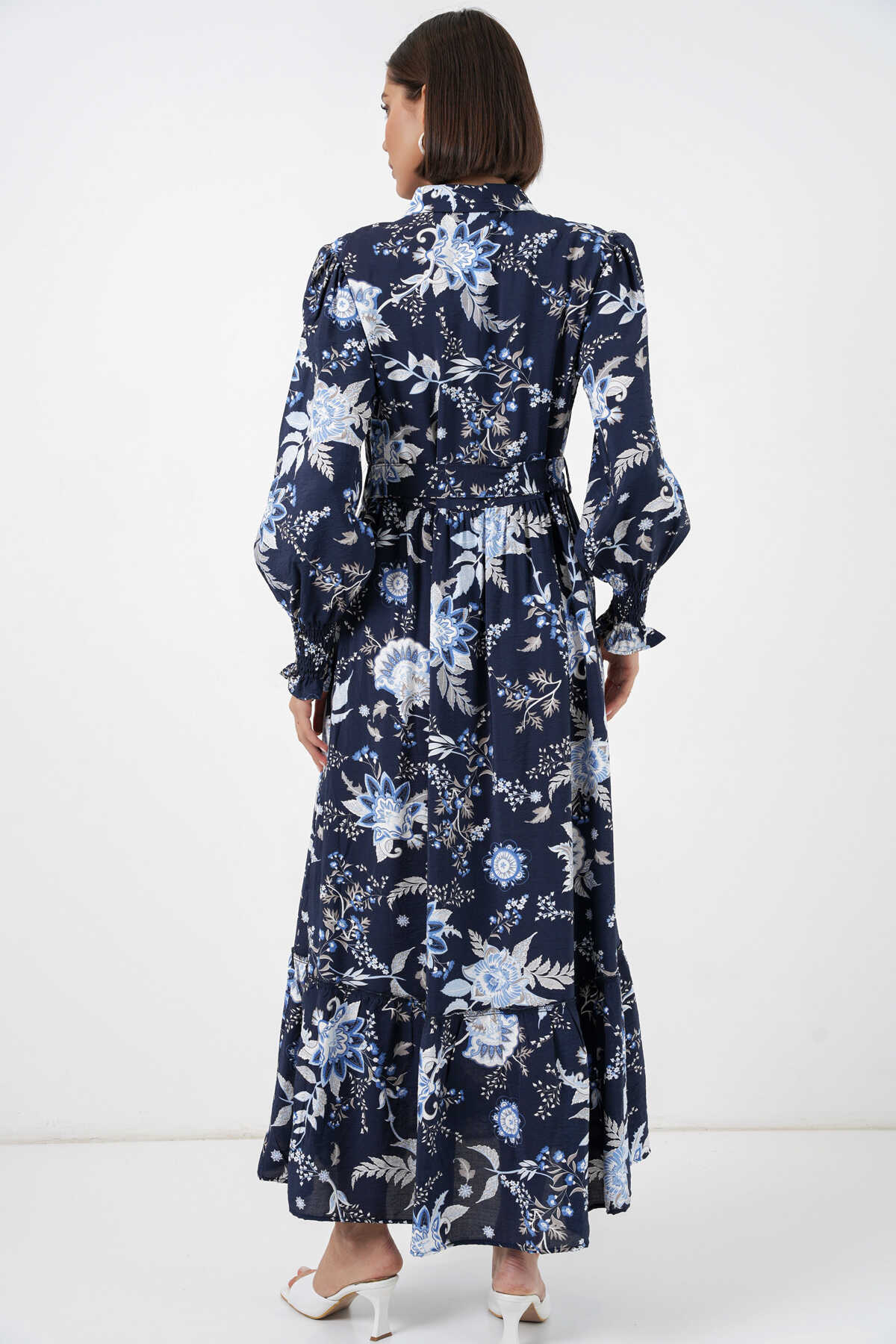 Kadın Kuşaklı Tesettür Elbise 2589 - Lacivert